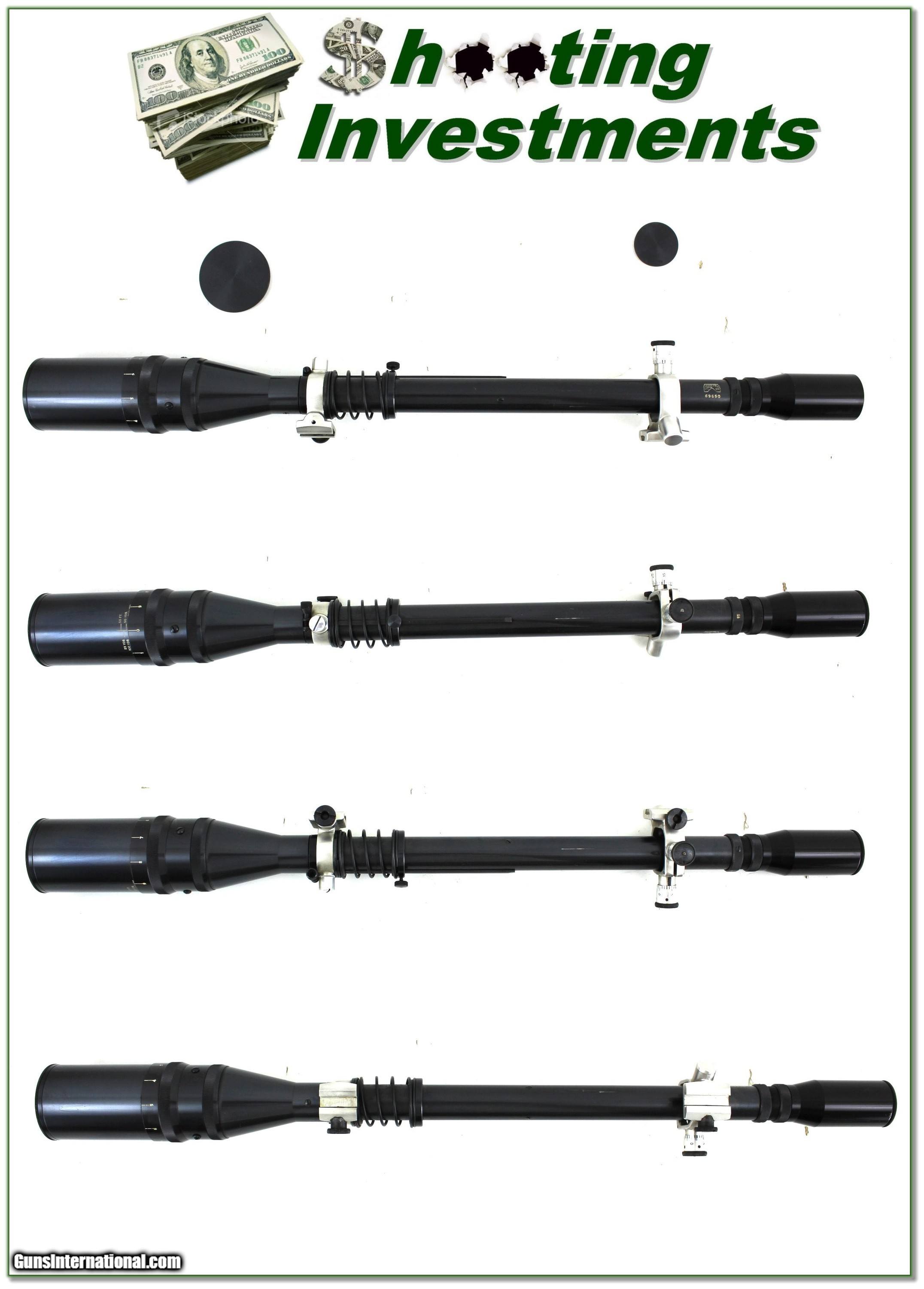 Description: Collectors, this is an excellent condition vintage Unertl 15X rifle scope with larger 50mm Objective. It comes with mounts as seen and include the screw in steel covers. It has crystal clear optics and will make a fine scope for any vintage rifle! Shipping and insurance is $49. Please email me with any questions or larger pictures. (Consign your quality firearms with Shooting Investments for only 12%! Let me know if you have any you would like to sell!) 23-1096s Payment: Payment is by Money Order, Cashier’s Check or Personal Check. I can now also accept Credit Cards (MasterCard, Visa, Discover & American Express) with a 3% convenience fee. Shipping: The shipping charge will be listed in each description. It is $49 for most firearms. Some heavy guns or those insured for over $2000 will be higher. Shipments to Alaska and Hawaii are higher because air shipment is required. Most firearms are shipped on Tuesday and Thursday and usually in 5 days of receipt of payment. We package all shipments carefully and insure them. Optics are shipped Priority Mail and most other non-firearm shipments are shipped First Class. Returns: Our return policy is simple. If for any reason you are not pleased with your purchase, you may return your item for a full refund of purchase price. Ammunition cannot be returned. It is important to us that you are happy. Guns cannot be fired or dissembled before returning them and they must be returned in the same condition as received. Notification of a return must occur within 3 days of receipt at your dealer. Shipping, convenience and dealer fees are not refundable and are the responsibility of the buyer. Lay-a-way: If needed, we offer a 60 day lay-a-way option on most firearms. It is 1/3 now, 1/3 in 30 days and 1/3 in 60 days. Lay-a-way firearm sales are final and cannot be returned. If a lay-a-way is not completed the first payment cannot be refunded. Consigning your firearms with Shooting Investments: We will help you get top dollar for your firearms. While most local guns shops charge 20% or more, our fee is only 12% with a minimum of $75. At your local gun shop it might take months to sell. Selling on-line provides instant access to thousands of interested buyers. You won’t find any other on-line dealer willing to sell your firearms for only 12% or listing every gun on 3 separate s. Selling through an House typically costs the seller 15% and the buyer an addition 15% (so 30%) and you have to wait several months to sell and longer to receive funds. If properly priced, we will sell your firearms within a few weeks. Send us an email or give us a call and we’ll explain how easy it is for you to get top dollar. Trading: Trading for us is really just buying your gun to re-sell. If you have a gun you want to trade, please email a picture and we will let you know what we can give for it. You will always get more if we sell it for you on consignment. SOLD |