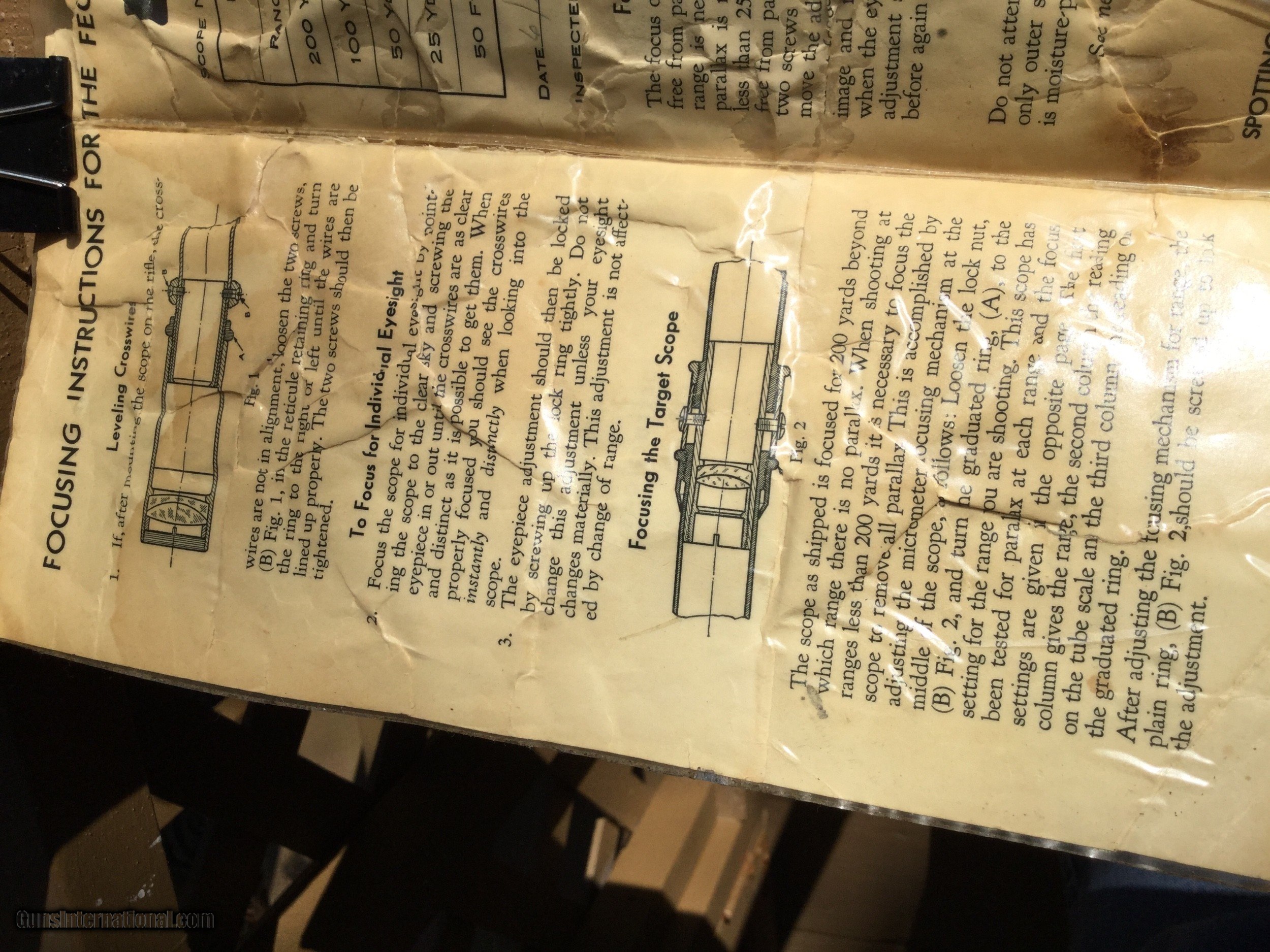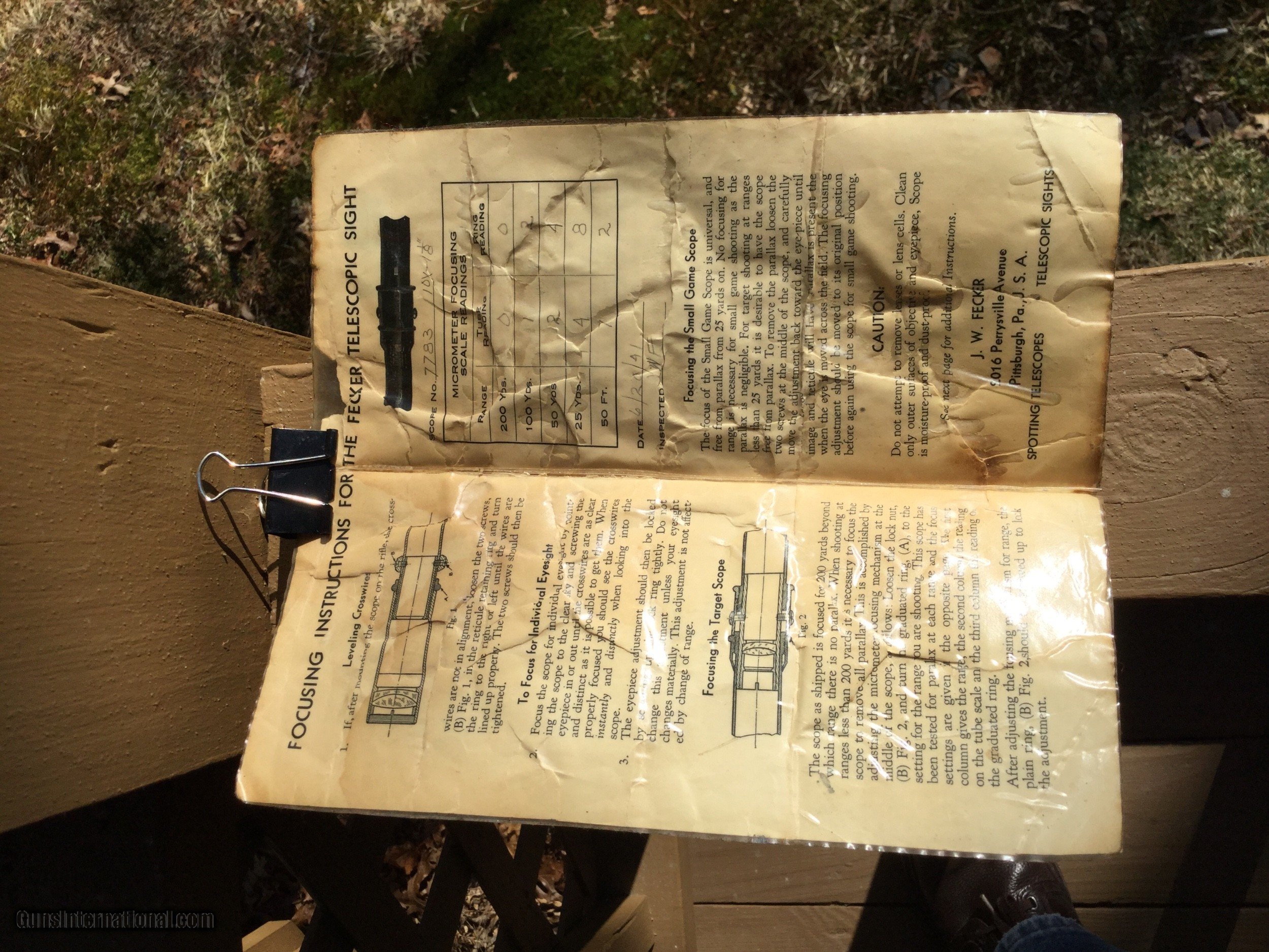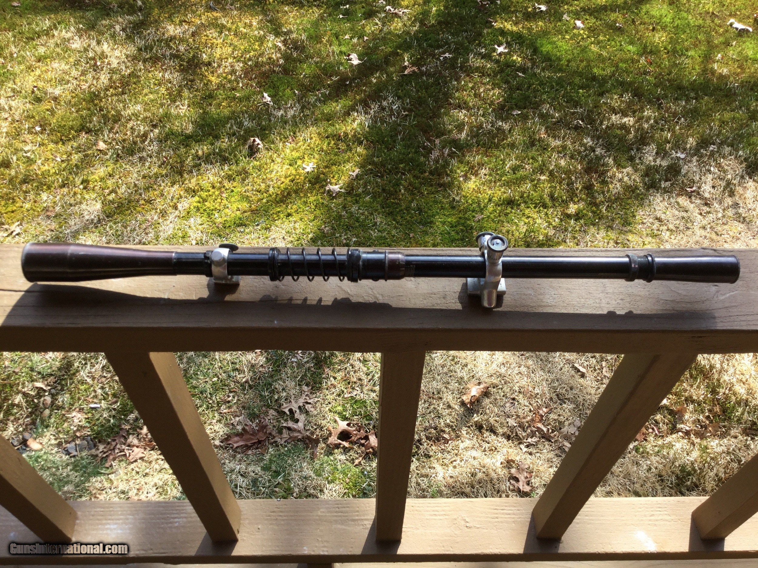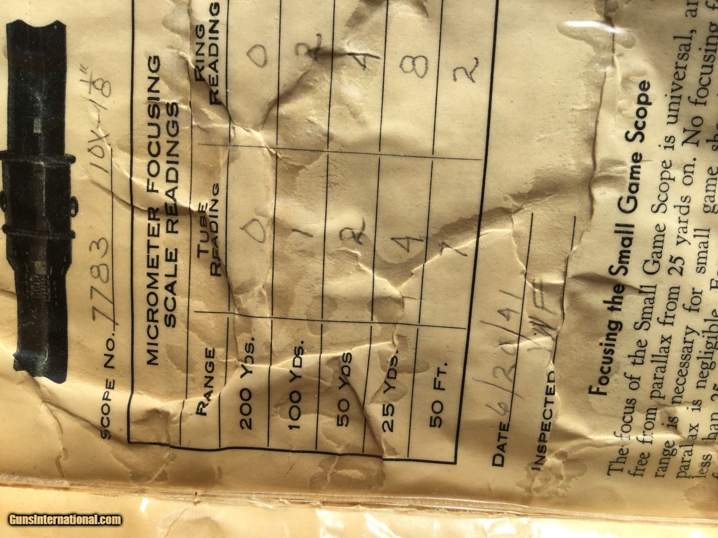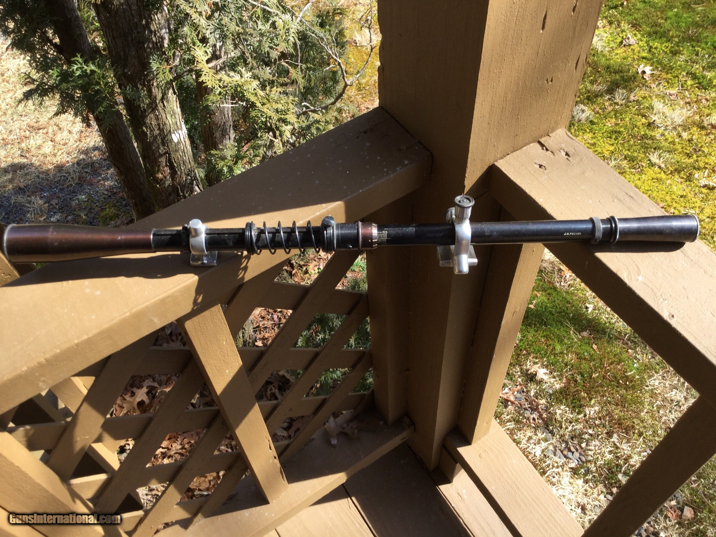 Description: A very good fine crosshairs j w Fecker from 1941 Instructions included initialed by mr fecker. Has added return spring. Mounts and end caps. Add 30. For shipping/ins. ON HOLD!!!!! Awaiting funds. SOLD |