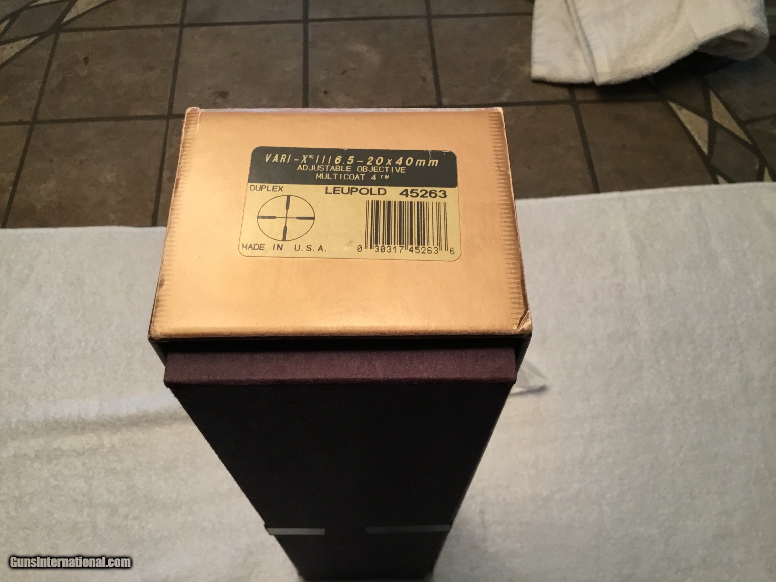 Description: Like new Leupold Vari-X 3 6.5-20X40 MM scope has Leupold target style dials Adjustable Objective Color is High Gloss The Cross-hair is very fine Scope comes with a very good set of rings You can’t go wrong with this scope SOLD |