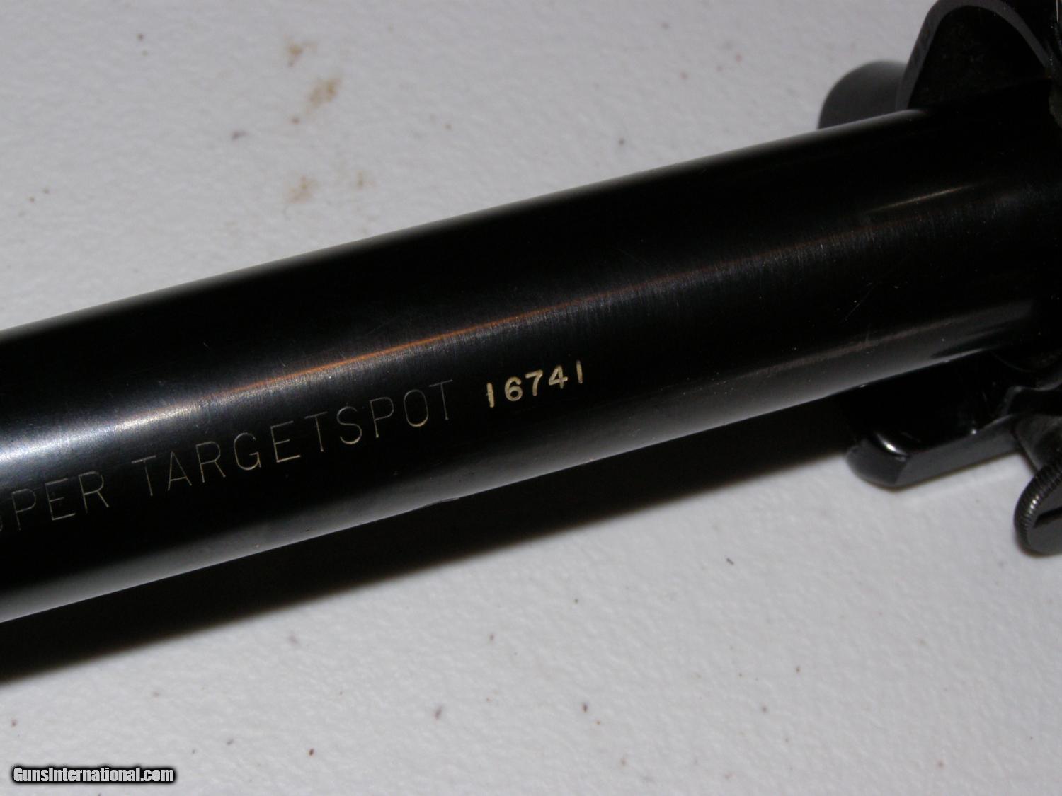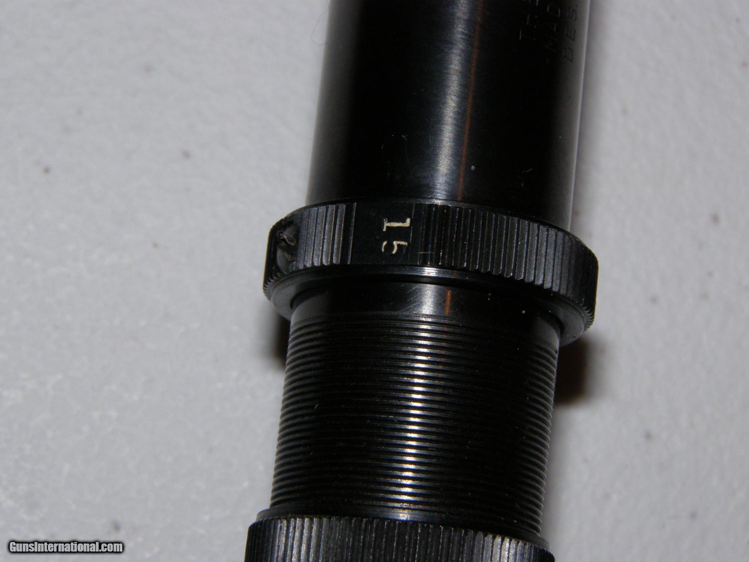 Description: SOLD PENDING FUNDS-A great example of the best of the scopebuilders art, this 15 power scope is complete with mounts and lens caps. The micrometer "clicks" are positive and the markings are clear and easily read. As fine a scope available to the precision shooter today. SOLD |