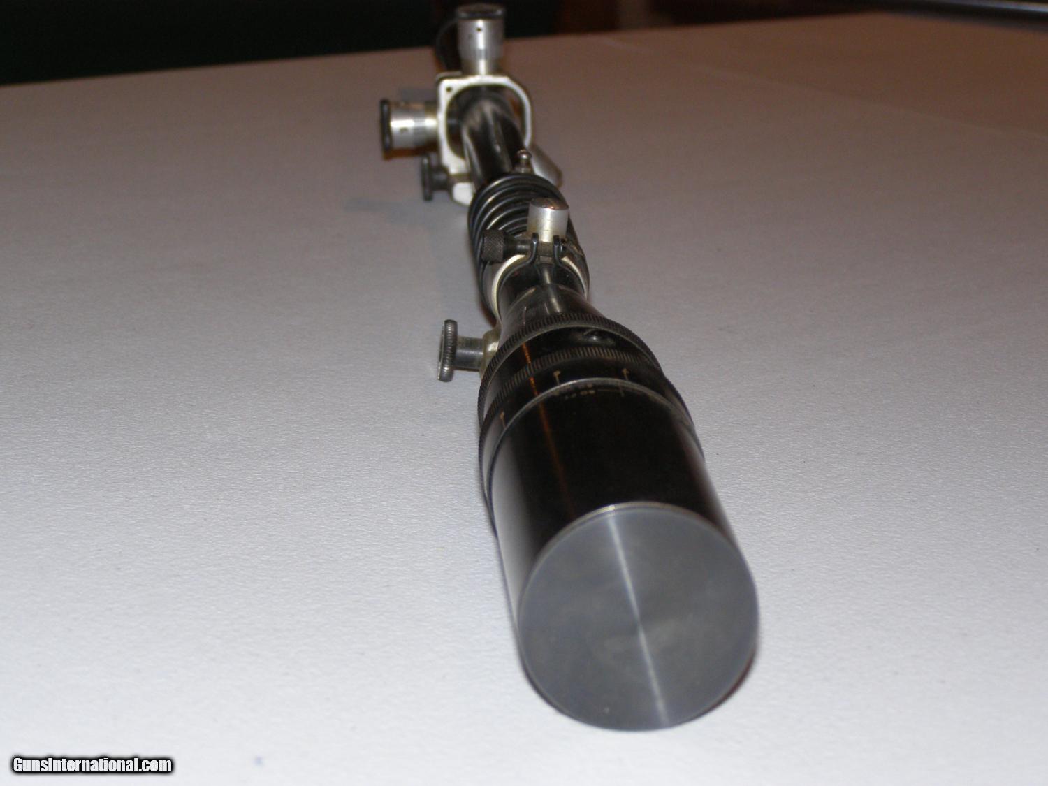 Description: SOLD PENDING FUNDS-12 power Unertl scope, 3/4 inch ocular lens, 1 1/2 inch objective lens. Lens caps for both lenses, with mounts. SOLD |