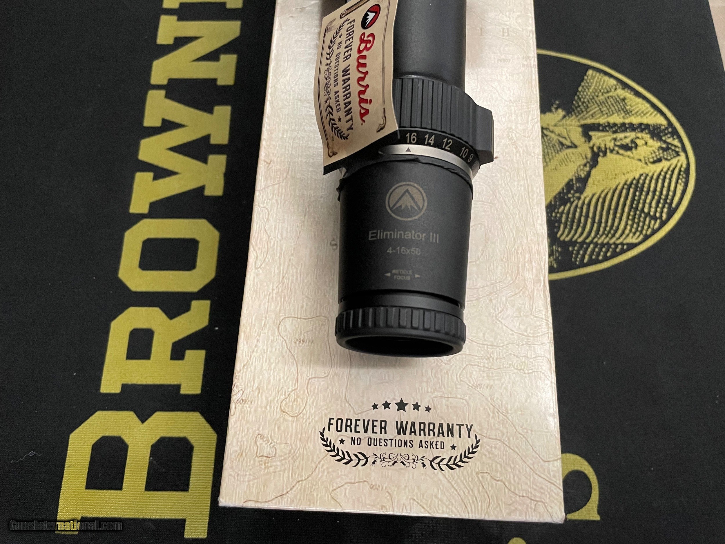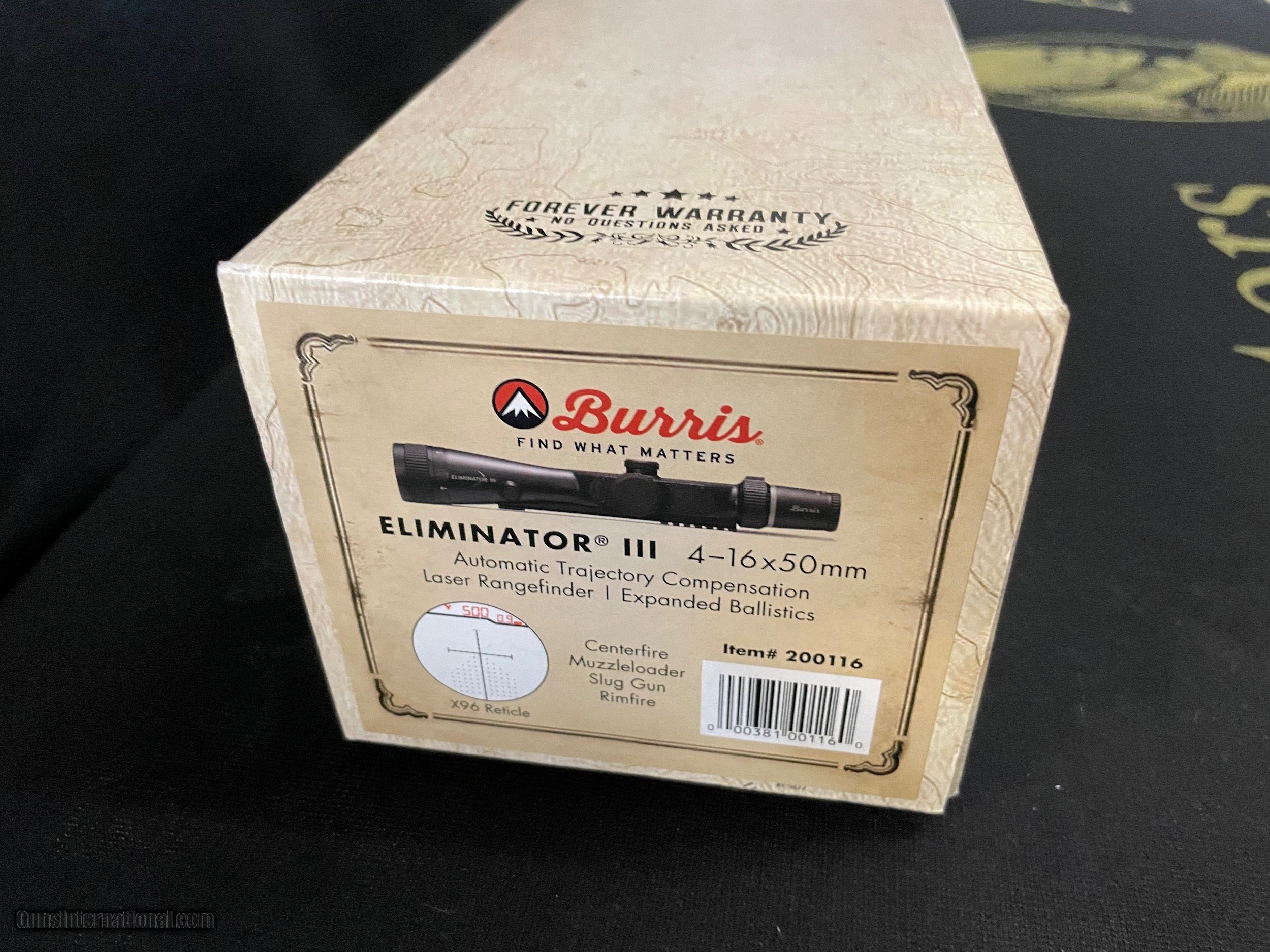 Description: Burris Eliminator III 4-16x50mm scope This scope in new in the box with all the paperwork. For more questions call 479-968-4106 SOLD |