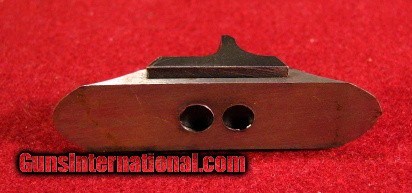 Description: Nicely machined island rear sight with one standing leaf. Base is flat bottomed and 2" long by 1/2" wide. SOLD |