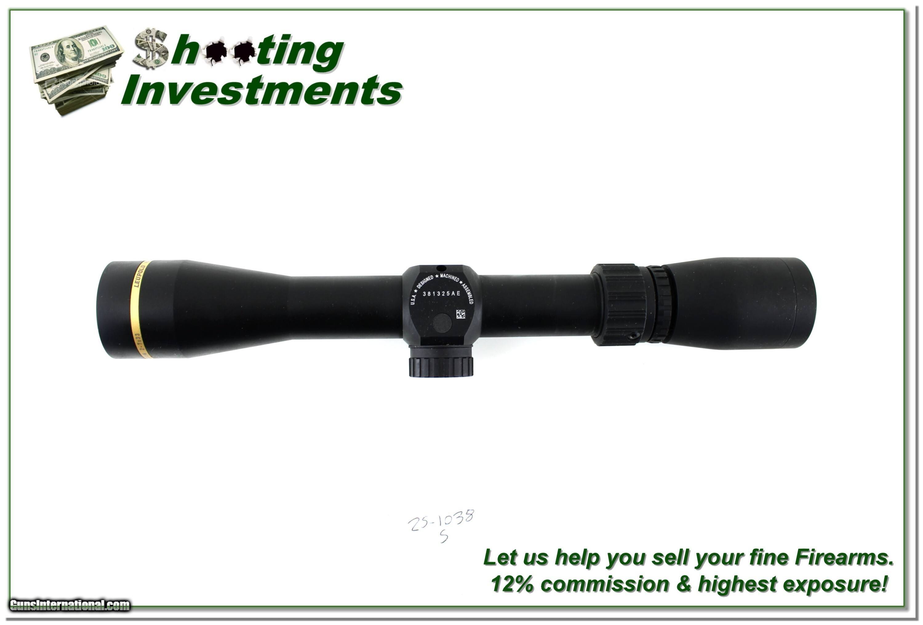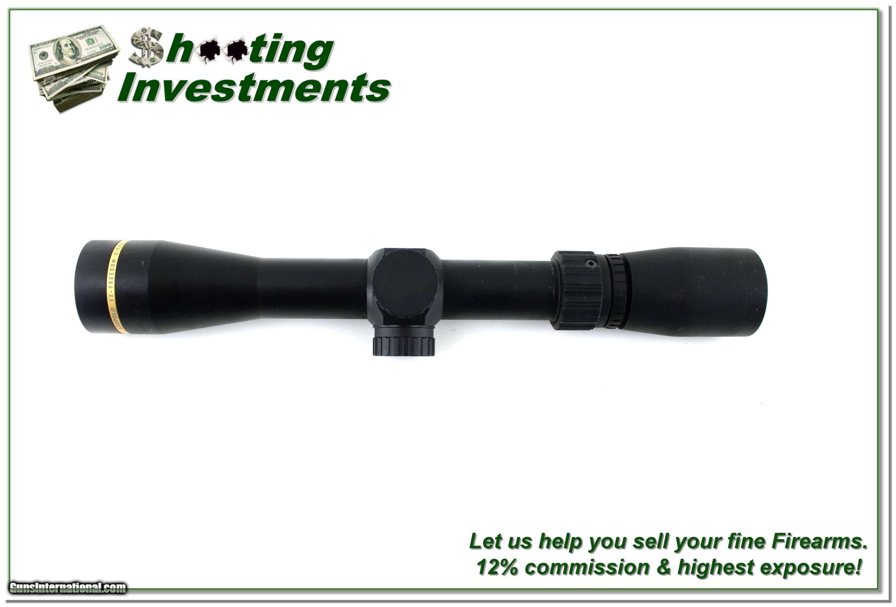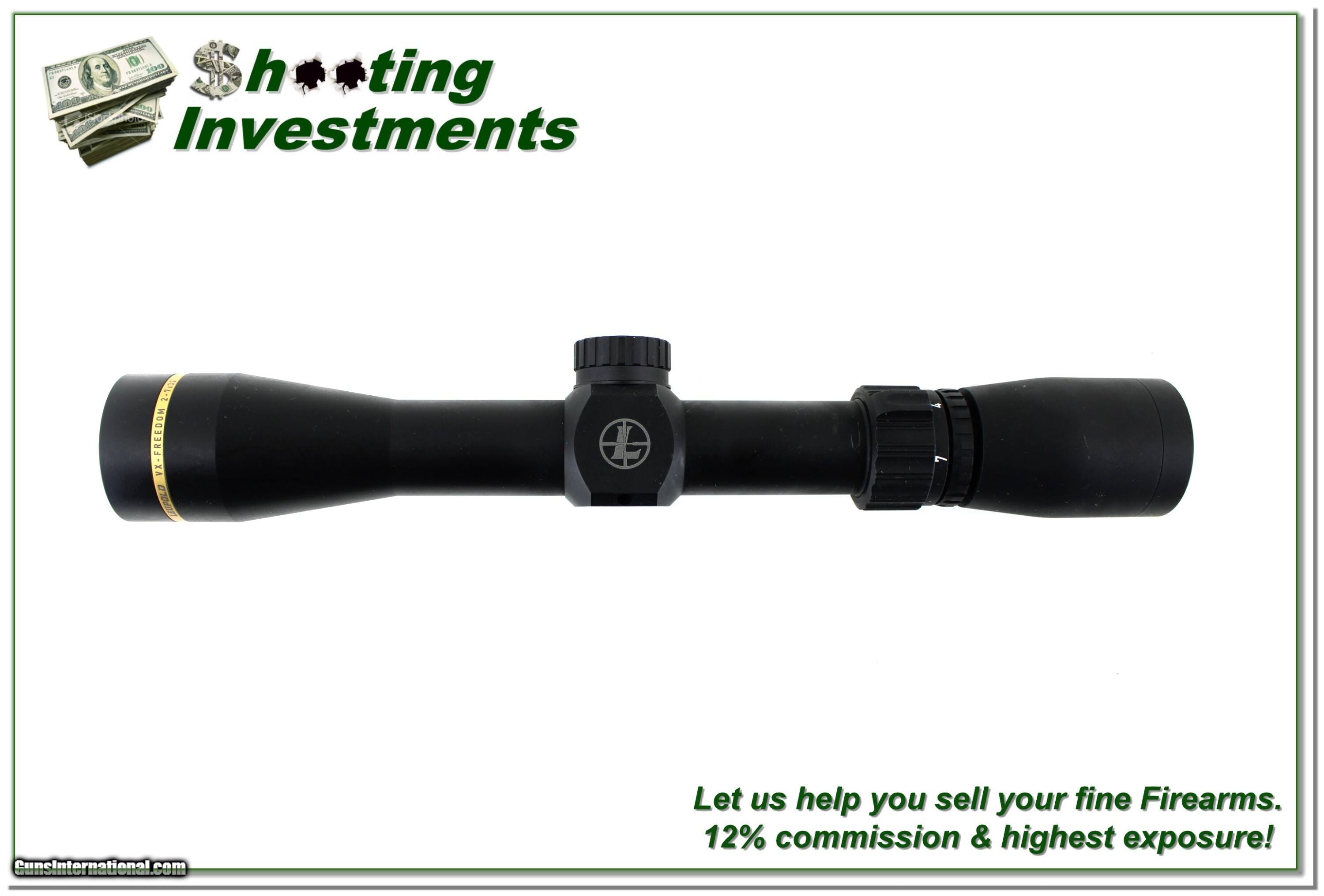 Description: This is a new condition Leupold Freedom 2-7 x 33mm scope. It has a matte finish and crystal clear optics with Duplex crosshairs. Shipping is $14.95. Please email me with any questions or larger pictures. (Consign your quality firearms with Shooting Investments for only 12%! Let me know if you have any you would like to sell!) 25-1038s Payment: Payment is by Money Order, Cashier’s Check or Personal Check. I can now also accept Credit Cards (MasterCard, Visa, Discover & American Express) with a 3% convenience fee. Shipping: The shipping charge will be listed in each description. It is $49 for most firearms. Some heavy guns or those insured for over $2000 will be higher. Shipments to Alaska and Hawaii are higher because air shipment is required. Most firearms are shipped on Tuesday and Thursday and usually in 5 days of receipt of payment. We package all shipments carefully and insure them. Optics are shipped Priority Mail and most other non-firearm shipments are shipped First Class. Returns: Our return policy is simple. If for any reason you are not pleased with your purchase, you may return your item for a full refund of purchase price. Ammunition cannot be returned. It is important to us that you are happy. Guns cannot be fired or dissembled before returning them and they must be returned in the same condition as received. Notification of a return must occur within 3 days of receipt at your dealer. Shipping, convenience and dealer fees are not refundable and are the responsibility of the buyer. Lay-a-way: If needed, we offer a 60 day lay-a-way option on most firearms. It is 1/3 now, 1/3 in 30 days and 1/3 in 60 days. Lay-a-way firearm sales are final and cannot be returned. If a lay-a-way is not completed the first payment cannot be refunded. Consigning your firearms with Shooting Investments: We will help you get top dollar for your firearms. While most local guns shops charge 20% or more, our fee is only 12% with a minimum of $100. At your local gun shop it might take months to sell. Selling on-line provides instant access to thousands of interested buyers. You won’t find any other on-line dealer willing to sell your firearms for only 12% or listing every gun on 3 separate s. Selling through an House typically costs the seller 15% and the buyer an addition 15% (so 30%) and you have to wait several months to sell and longer to receive funds. If properly priced, we will sell your firearms within a few weeks. Send us an email or give us a call and we’ll explain how easy it is for you to get top dollar. Trading: Trading for us is really just buying your gun to re-sell. If you have a gun you want to trade, please email a picture and we will let you know what we can give for it. You will always get more if we sell it for you on consignment. Price: $219.00 Contact Seller |