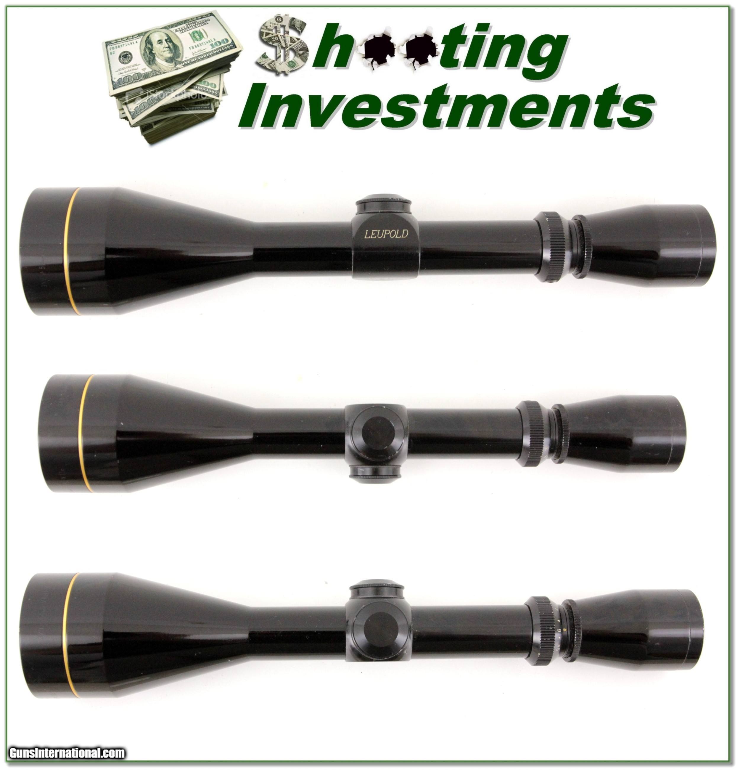 Description: This is a Leupold in 3-9 power with 50mm Objective. It has crystal clear optics with heavy duplex crosshairs. It is in excellent condition with just a few tiny marks and no ring marks. This 50mm scope is excellent for early morning and late afternoon low light conditions. And remember Leupold is warranted forever! Shipping is $11.95. Please email me with any questions or larger pictures. (Consign your quality firearms with Shooting Investments for only 12%! Let me know if you have any you would like to sell!) 19-0975s Payment: Payment is by Money Order, Cashiers Check or Personal Check. I can now also accept Credit Cards (MasterCard, Visa, Discover & American Express) with a 3% convenience fee. PayPal can be used for some items but never for firearms. Shipping: The shipping charge will be listed in each description. It is $39 for most firearms. Some heavy guns or those insured for over $2000 will be higher. Shipments to Alaska and Hawaii are higher because air shipment is required. Most firearms are shipped on Tuesday and Thursday and usually in 5 days of receipt of payment. We package all shipments carefully and insure them. Optics are shipped Priority Mail and most other non-firearm shipments are shipped First Class. Returns: Our return policy is simple. If for any reason you are not pleased with your purchase, you may return your item for a full refund of purchase price. Ammunition cannot be returned. It is important to us that you are happy. Guns cannot be fired or dissembled before returning them and they must be returned in the same condition as received. Notification of a return must occur with-in 3 days of receipt at your dealer. Shipping, convenience and dealer fees are not refundable and are the responsibility of the buyer. Lay-a-way: If needed, we offer a 60 day lay-a-way option on most firearms. It is 1/3 now, 1/3 in 30 days and 1/3 in 60 days. Lay-a-way firearm sales are final and if not completed the first payment cannot be returned. Consigning your firearms with Shooting Investments: We will help you get top dollar for your firearms. While most local guns shops charge 20% or more, our fee is only 12% with a minimum of $75. At your local gun shop it might take months to sell. Selling on-line provides instant access to thousands of interested buyers. You won’t find any other on-line dealer willing to sell your firearms for only 12% or listing every gun on 3 separate s. Selling through an House typically costs the seller 15% and the buyer an addition 15% (so 30%) and you have to wait several months to sell and longer to receive funds. If properly priced, we will sell your firearms in a few weeks. Send us an email or give us a call and we’ll explain how easy it is for you to get top dollar. Trading: Trading for use is really just buying your gun to re-sell. If you have a gun you want to trade, please email a picture and we will let you know what we can give or it. You will always get more if we sell it for you on consignment. Help for California Buyers: We are happy to ship to California. It is the buyer’s responsibility to make sure any item you buy is legal in your state. We are also happy to help with your purchase of a firearm from someone other than us. If you see a gun you would like to buy but the seller can’t or won’t ship to California they can ship to use and we’ll then ship it to your California dealer. The cost for this service is only $30 + shipping. Let us know if we can help! SOLD |