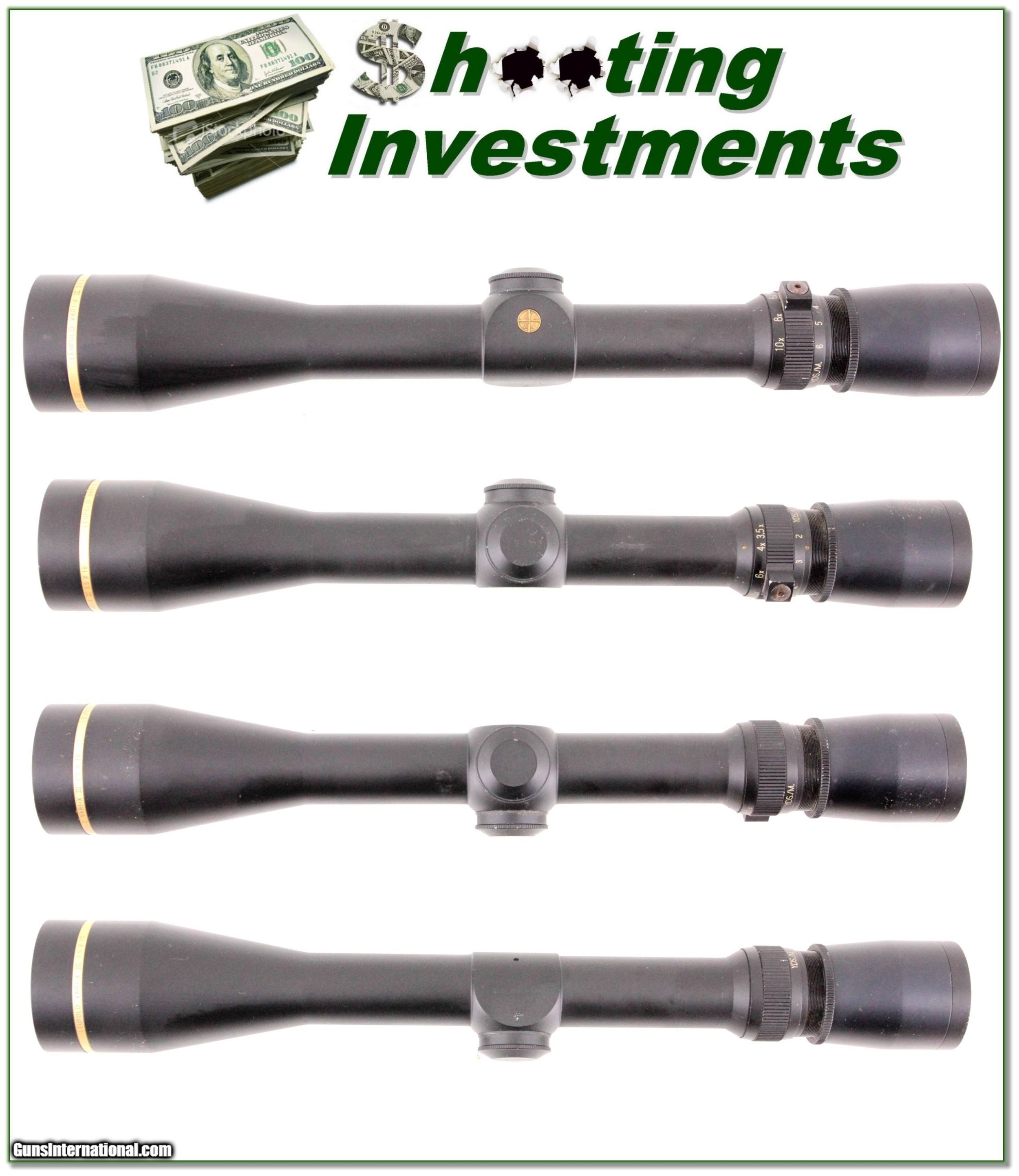 Description: This scope is in as new condition. It is a top of the line Leupold in 3.5-10 X 40mm. It has duplex crosshairs and crystal-clear optics. It has a matt finish with no marks I see. Shipping is $11.95. Please email me with any questions or larger pictures. (Consign your quality firearms with Shooting Investments for only 12%! Let me know if you have any you would like to sell!) 19-0774s Payment: Payment is by Money Order, Cashiers Check or Personal Check. I can now also accept Credit Cards (MasterCard, Visa, Discover & American Express) with a 3% convenience fee. PayPal can be used for some items but never for firearms. Shipping: The shipping charge will be listed in each description. It is $39 for most firearms. Some heavy guns or those insured for over $2000 will be higher. Shipments to Alaska and Hawaii are higher because air shipment is required. Most firearms are shipped on Tuesday and Thursday and usually in 5 days of receipt of payment. We package all shipments carefully and insure them. Optics are shipped Priority Mail and most other non-firearm shipments are shipped First Class. Returns: Our return policy is simple. If for any reason you are not pleased with your purchase, you may return your item for a full refund of purchase price. Ammunition cannot be returned. It is important to us that you are happy. Guns cannot be fired or dissembled before returning them and they must be returned in the same condition as received. Notification of a return must occur with-in 3 days of receipt at your dealer. Shipping, convenience and dealer fees are not refundable and are the responsibility of the buyer. Lay-a-way: If needed, we offer a 60 day lay-a-way option on most firearms. It is 1/3 now, 1/3 in 30 days and 1/3 in 60 days. Lay-a-way firearm sales are final and if not completed the first payment cannot be returned. Consigning your firearms with Shooting Investments: We will help you get top dollar for your firearms. While most local guns shops charge 20% or more, our fee is only 12% with a minimum of $75. At your local gun shop it might take months to sell. Selling on-line provides instant access to thousands of interested buyers. You won’t find any other on-line dealer willing to sell your firearms for only 12% or listing every gun on 3 separate s. Selling through an House typically costs the seller 15% and the buyer an addition 15% (so 30%) and you have to wait several months to sell and longer to receive funds. If properly priced, we will sell your firearms in a few weeks. Send us an email or give us a call and we’ll explain how easy it is for you to get top dollar. Trading: Trading for use is really just buying your gun to re-sell. If you have a gun you want to trade, please email a picture and we will let you know what we can give or it. You will always get more if we sell it for you on consignment. Help for California Buyers: We are happy to ship to California. It is the buyer’s responsibility to make sure any item you buy is legal in your state. We are also happy to help with your purchase of a firearm from someone other than us. If you see a gun you would like to buy but the seller can’t or won’t ship to California they can ship to use and we’ll then ship it to your California dealer. The cost for this service is only $30 + shipping. Let us know if we can help! SOLD |