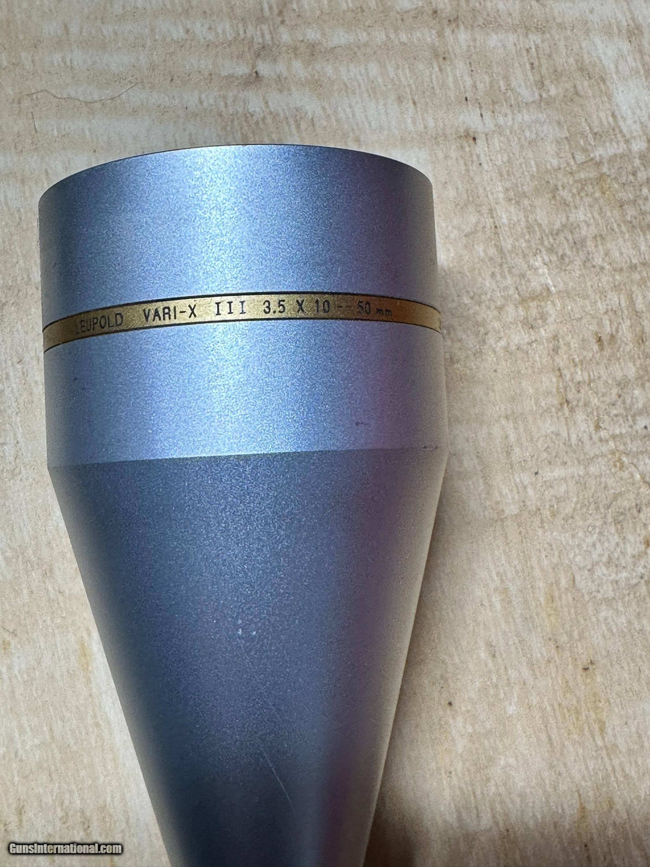 Description: Leupold Vari-X III 3.5-10x 50mm Silver in good condition. There are some cosmetic flaws but overall in good shape. SOLD |