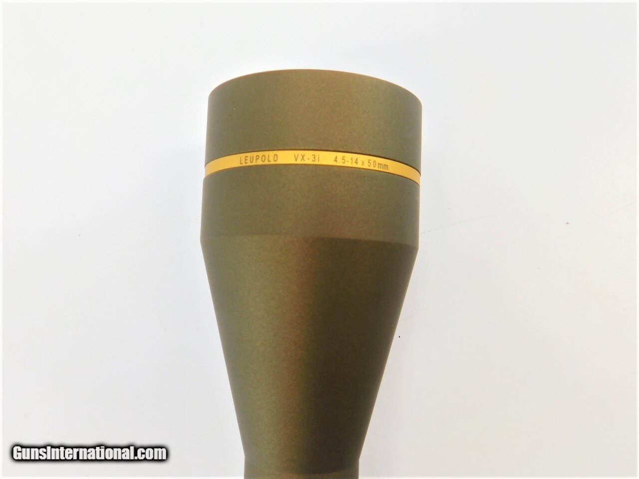 Description: Manufacturer: Leupold Model: VX-3i 4.5-14X50mm SF SKU: 170709 BB Finish: Burnt Bronze Cerakote Magnification: 4.5-14x Objective: 50mm Tube Diameter: 30mm Reticle: Duplex Length: 12.20" Weight: 16.5 oz This scope features a custom Cerakote finish that has been applied by US CERAKOTE, our local trained and certified Cerakote technicians. Cerakote is a ceramic and polymer based proprietary formulation that offers industry leading durability, hardness, scratch resistance, corrosion resistance, flexibility, heat and chemical resistance. All items are factory new in box unless otherwise stated. Based on the information available to us, the above specifications describe this item to the best of our knowledge. For further information, please contact or visit the manufacturer's . SOLD |