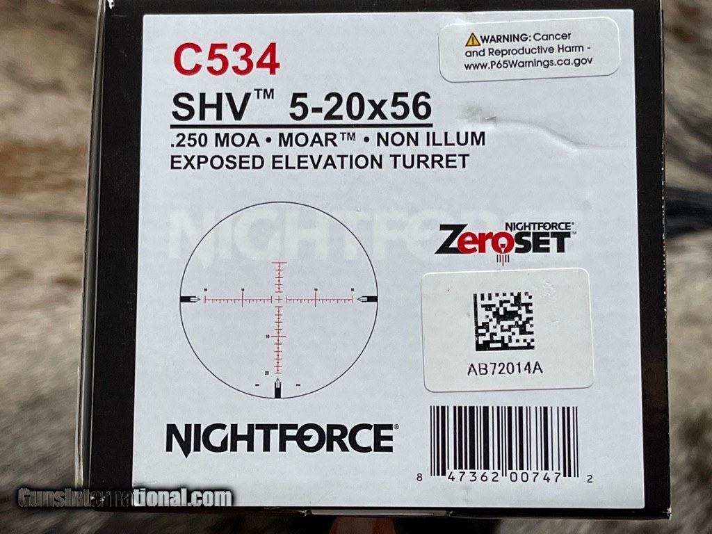NEW NIGHTFORCE SHV 5-20X56 MOAR NON-ILLUMINATED .25MOA C534 SCOPE ZEROSET