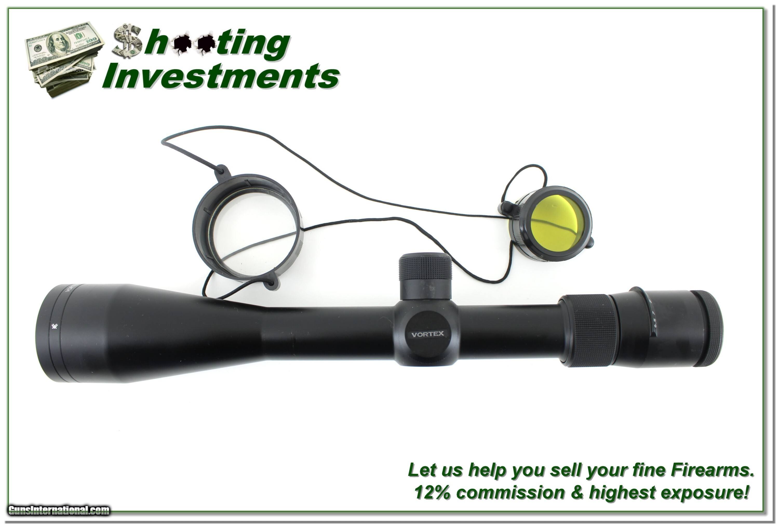 Description: This is an excellent near new Vortex Viber in 6.5-20 power with 50mm Objective. It has a 30mm Tube, side AO and covers as seen. The crystal-clear optics has a Mil-Dor crosshair. It is matte finish with no marks I see. Shipping is $14.95 and please email me with any questions or larger pictures. (Consign your quality firearms with Shooting Investments for only 12%! Let me know if you have any you would like to sell!) 26-0079s Payment: Payment is by Money Order, Cashier’s Check or Personal Check. I can now also accept Credit Cards (MasterCard, Visa, Discover & American Express) with a 3% convenience fee. Shipping: The shipping charge will be listed in each description. It is $49 for most firearms. Some heavy guns or those insured for over $2000 will be higher. Shipments to Alaska and Hawaii are higher because air shipment is required. Most firearms are shipped on Tuesday and Thursday and usually in 5 days of receipt of payment. We package all shipments carefully and insure them. Optics are shipped Priority Mail and most other non-firearm shipments are shipped First Class. Returns: Our return policy is simple. If for any reason you are not pleased with your purchase, you may return your item for a full refund of purchase price. Ammunition cannot be returned. It is important to us that you are happy. Guns cannot be fired or dissembled before returning them and they must be returned in the same condition as received. Notification of a return must occur within 3 days of receipt at your dealer. Shipping, convenience and dealer fees are not refundable and are the responsibility of the buyer. Lay-a-way: If needed, we offer a 60 day lay-a-way option on most firearms. It is 1/3 now, 1/3 in 30 days and 1/3 in 60 days. Lay-a-way firearm sales are final and cannot be returned. If a lay-a-way is not completed the first payment cannot be refunded. Consigning your firearms with Shooting Investments: We will help you get top dollar for your firearms. While most local guns shops charge 20% or more, our fee is only 12% with a minimum of $100. At your local gun shop it might take months to sell. Selling on-line provides instant access to thousands of interested buyers. You won’t find any other on-line dealer willing to sell your firearms for only 12% or listing every gun on 3 separate s. Selling through an House typically costs the seller 15% and the buyer an addition 15% (so 30%) and you have to wait several months to sell and longer to receive funds. If properly priced, we will sell your firearms within a few weeks. Send us an email or give us a call and we’ll explain how easy it is for you to get top dollar. Trading: Trading for us is really just buying your gun to re-sell. If you have a gun you want to trade, please email a picture and we will let you know what we can give for it. You will always get more if we sell it for you on consignment. Price: $299.00 Contact Seller |