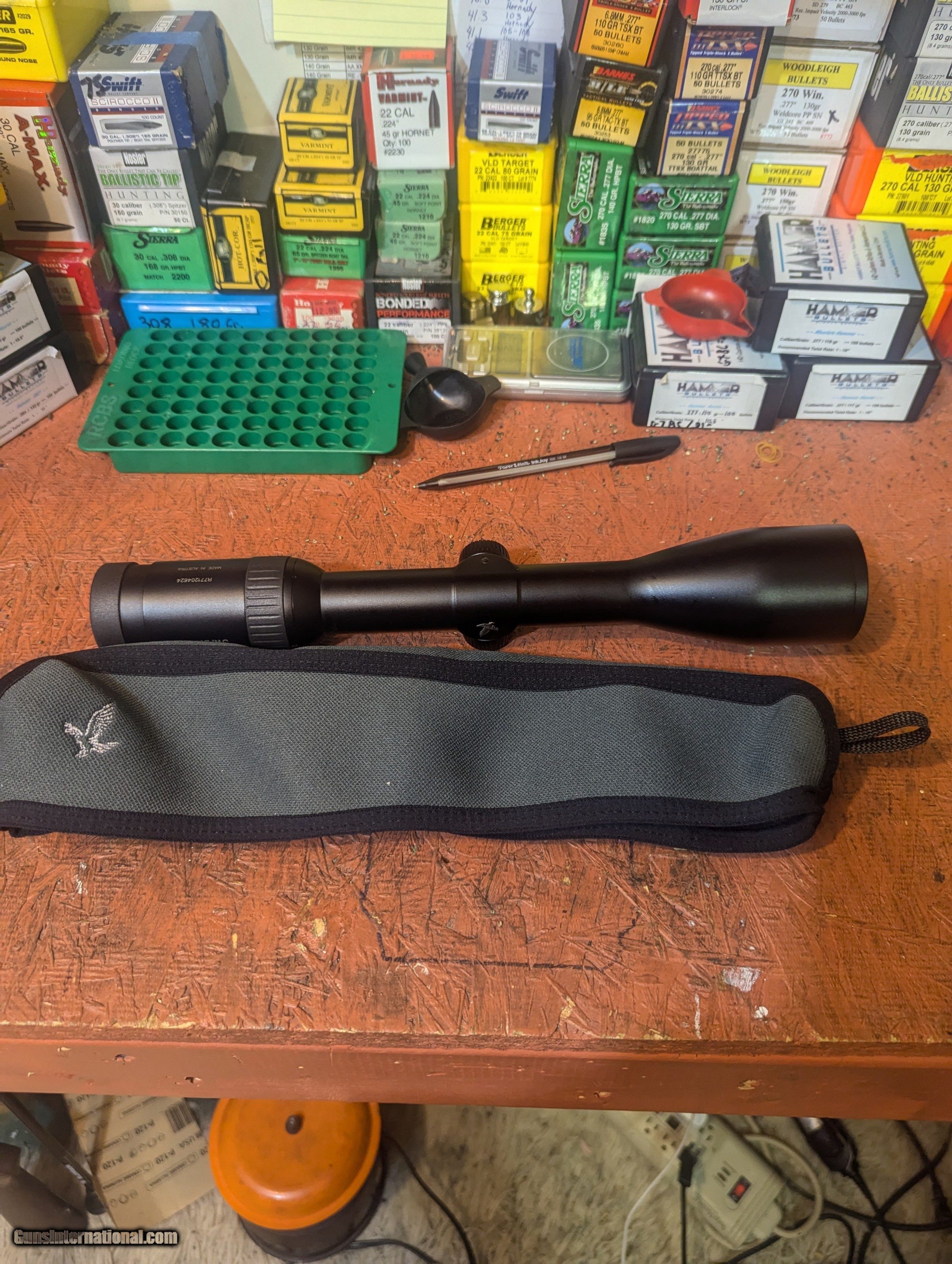 Description: Swarovski Z6 2.5-12X50 very good condition, very small ring Marks no dents , lenses perfect condition. No box comes with with factory lens caps and Swarovski scope coat. $1450 Free shipping. SOLD |