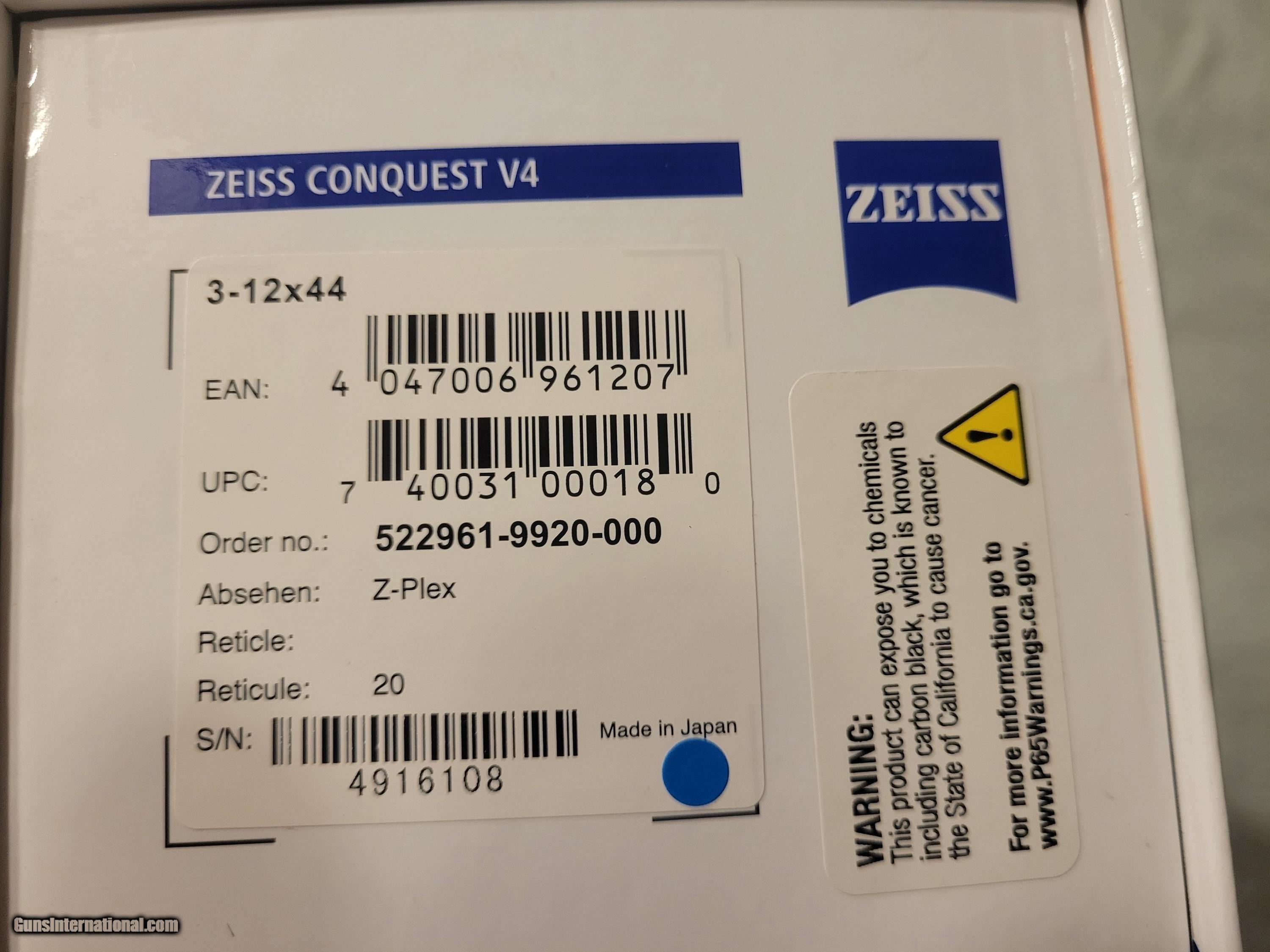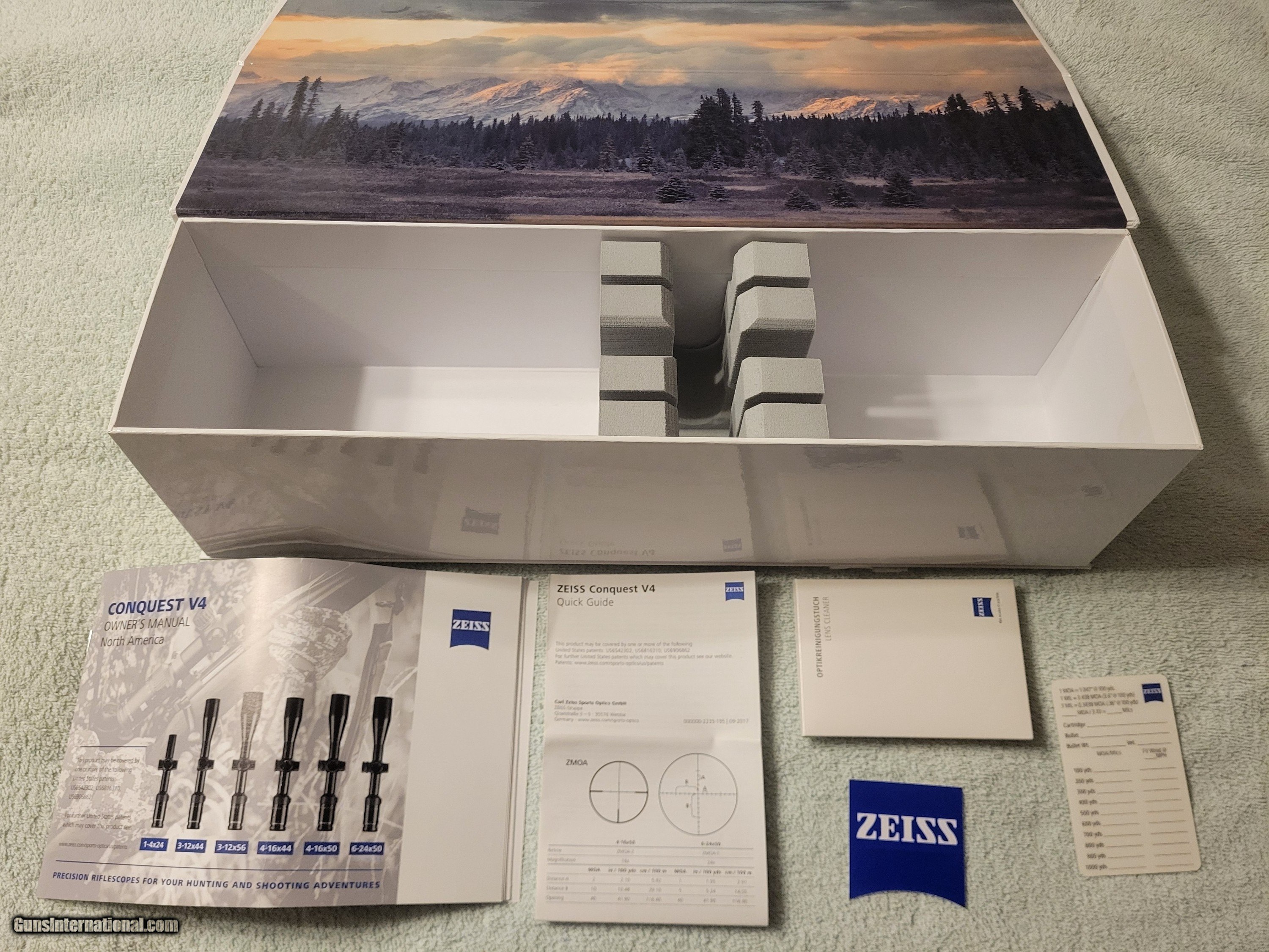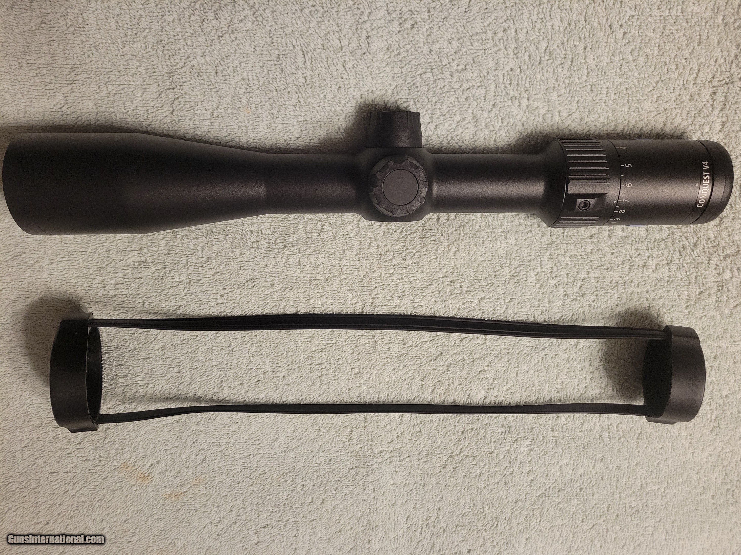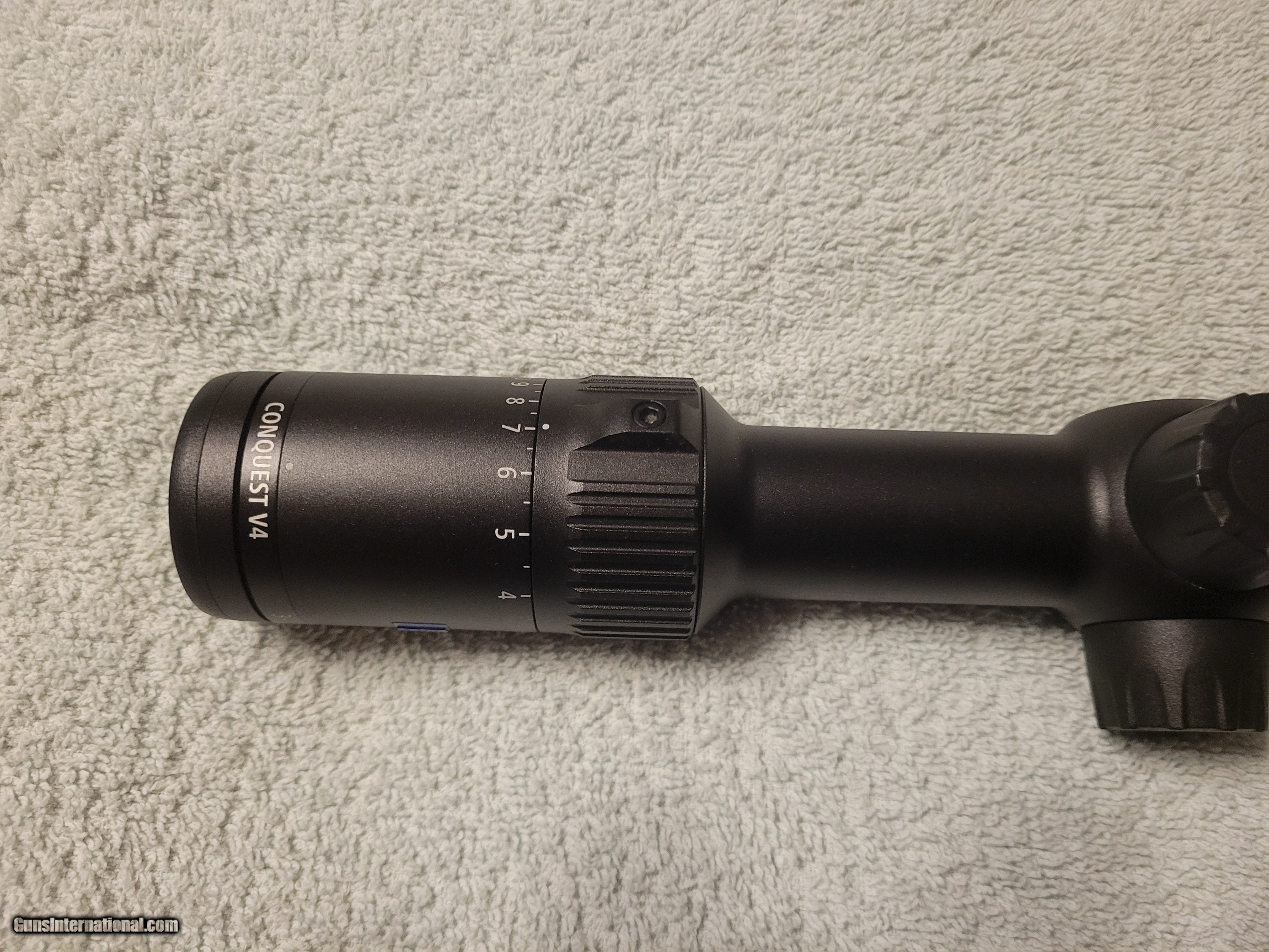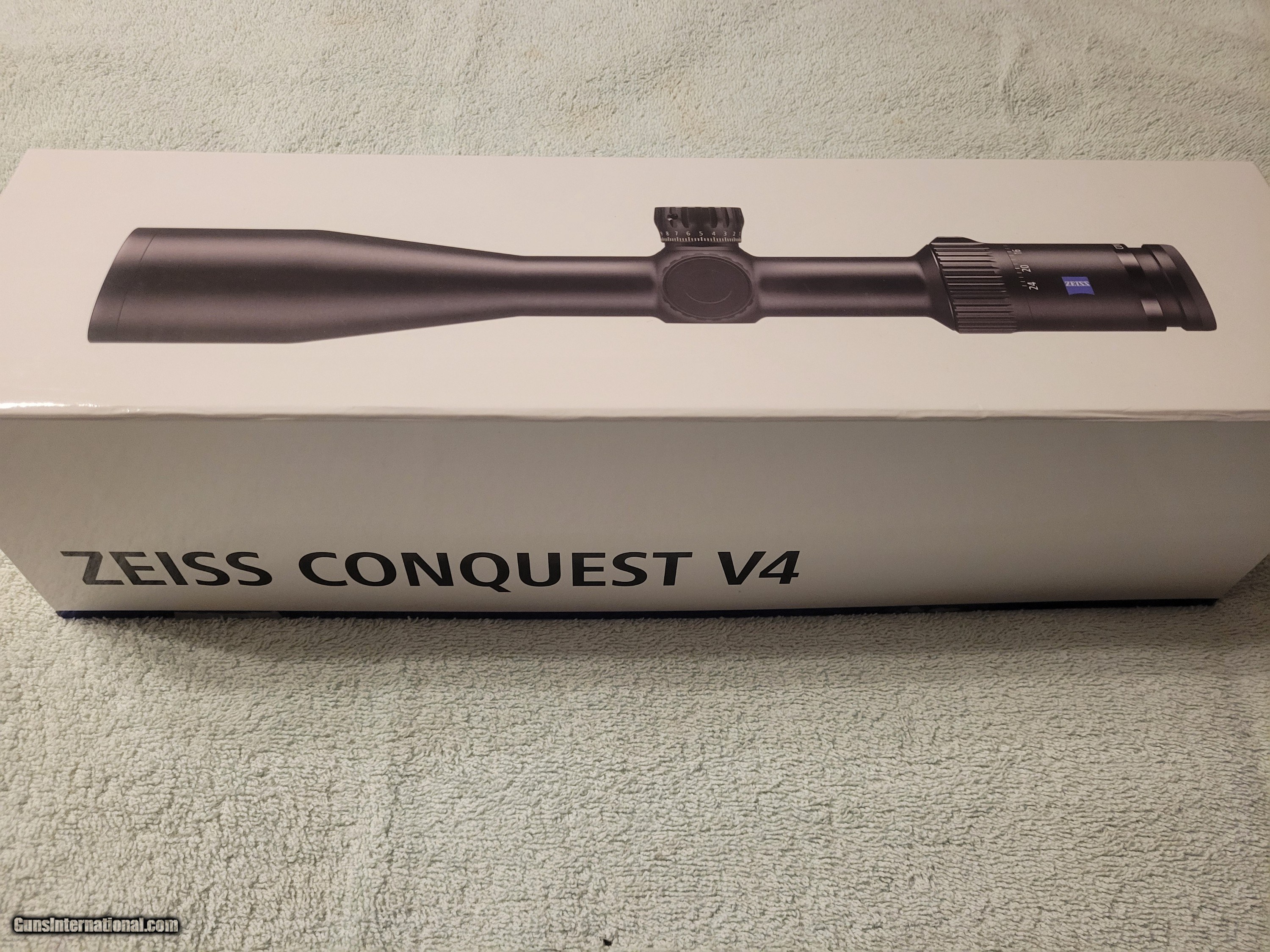 Description: Excellent condition, slightly used Zeiss Conquest V4 3-12x44 with capped turrets and plex reticle. Buyer pays shipping SOLD |