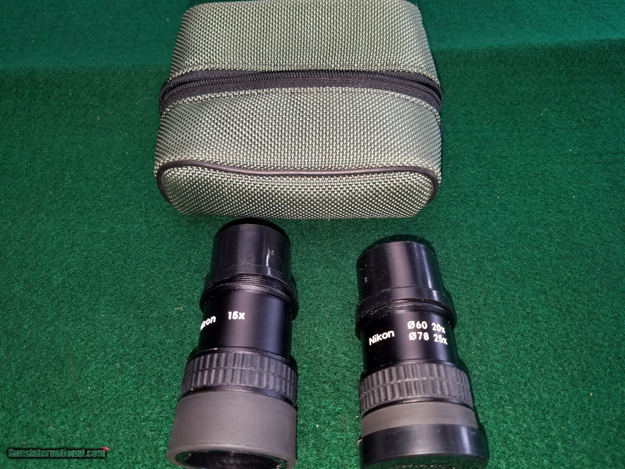 Description: Nikon Fieldscope ED Spotting Scope with 15x 20x and a 30x WF eyepiece. The glass is in pristine condition, its focuses smoothly and has a clear and sharp view. This spotting scope has been used only at the range and is In excellent condition with no marks or scratches. SOLD |
