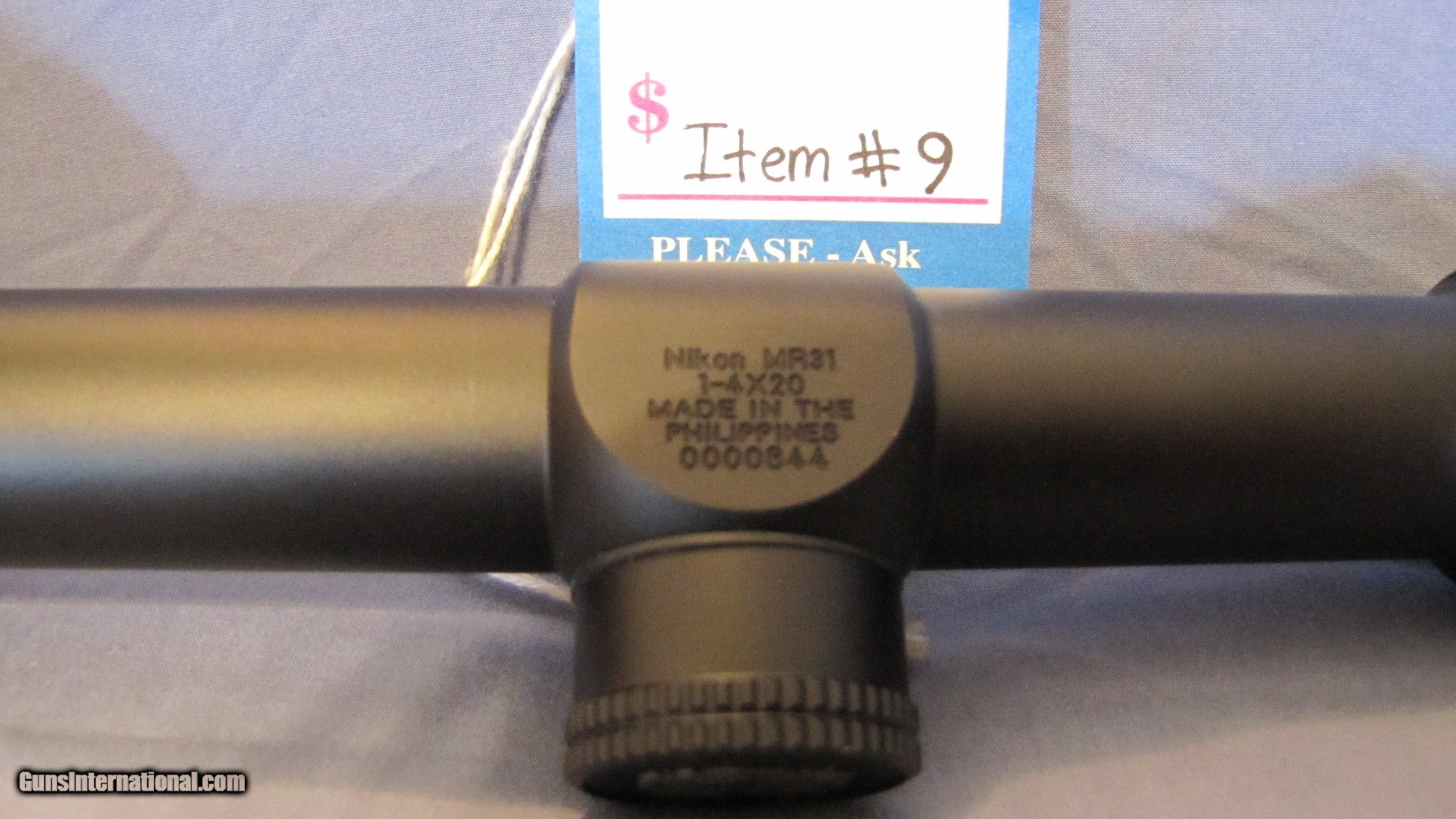Description: This is a Nikon Monarch MR31 1-4X20 scope. It has been used but is in excellent condition! FREE SHIPPING! We are required to charge 8.25% for Texas residents. There is a 3.5% fee if paying by credit card. SOLD |