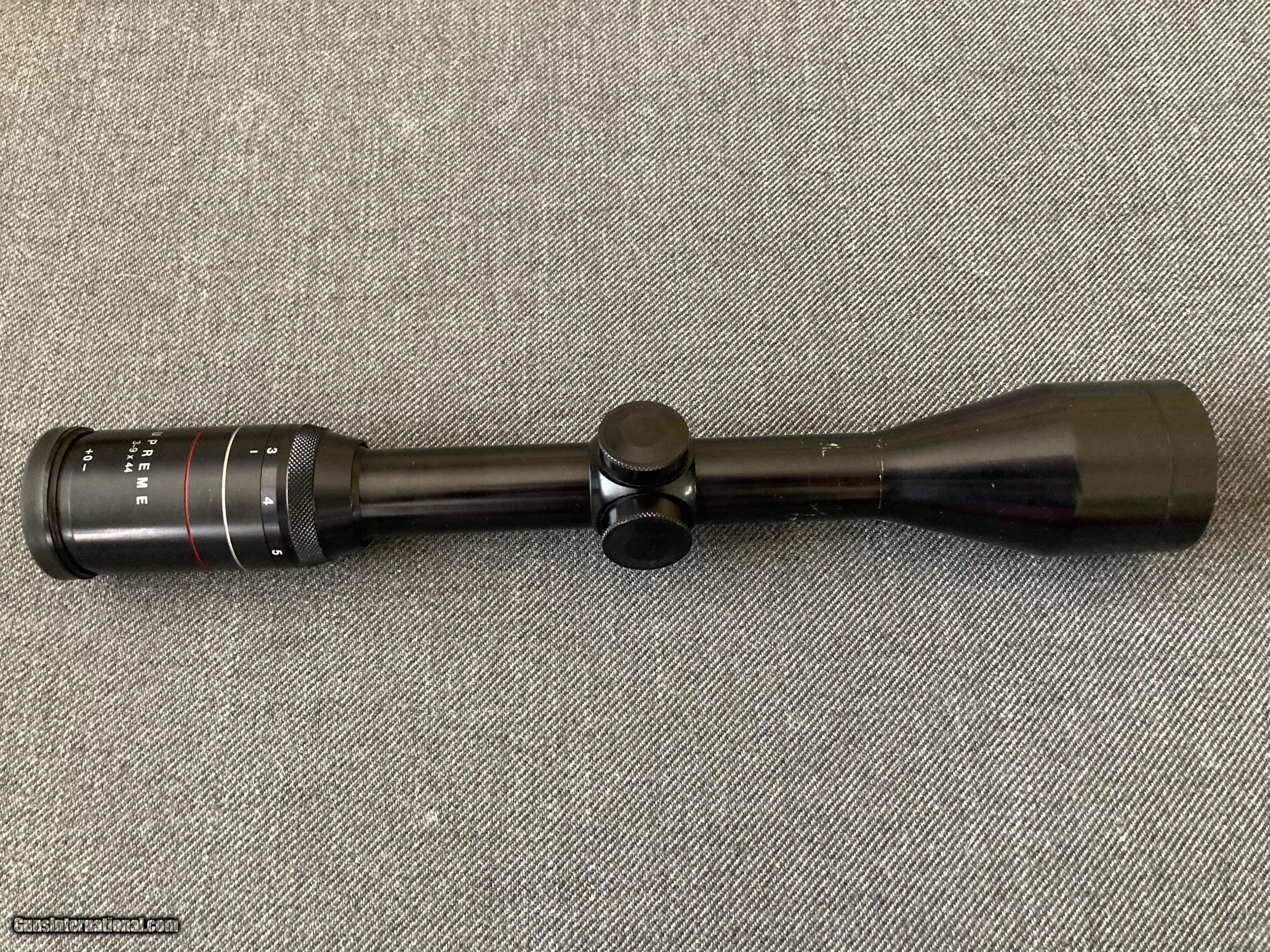 Description: Weatherby Supreme 3-9x44, Made in Japan, light ring marks, very clear, excellent overall. ($15.00 shipping) SOLD |