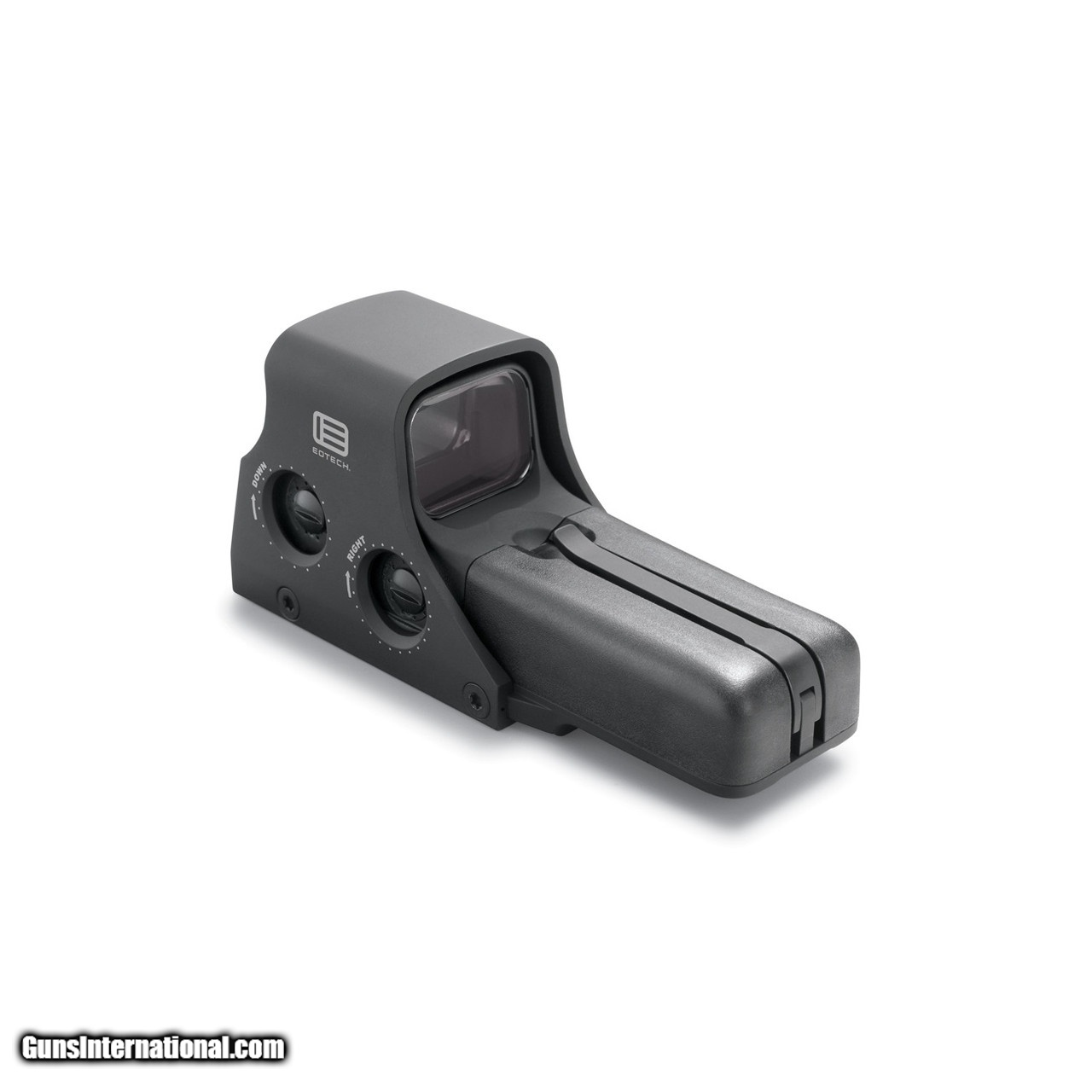 Description: Manufacturer: EOTECH Model: EOTECH HWS 512 SKU: 512.A65 Model 512 is our most popular holographic weapon sight. It’s ideal when you need the best in speed and versatility, without night vision compatibility. Night Vision Compatibility: None Length/Width/Height: 5.6" x 2" x 2.5" Weight: 11.5 oz (325 g) Water Resistant: Submersible to 10 ft. (3 m) depth Mount: 1" Weaver or MIL-STD-1913 rail Power Source: Two 1.5 V AA batteries Supports lithium, alkaline, or rechargeable Battery Life: Lithium: 1,000 continuous hours at nominal setting 12 at room temp. Alkaline: 600 continuous hours at nominal setting 12 at room temp. All items are factory new in box unless otherwise stated. Based on the information available to us, the above specifications describe this item to the best of our knowledge. For further information, please contact or visit the manufacturer's . SOLD |