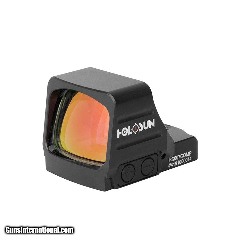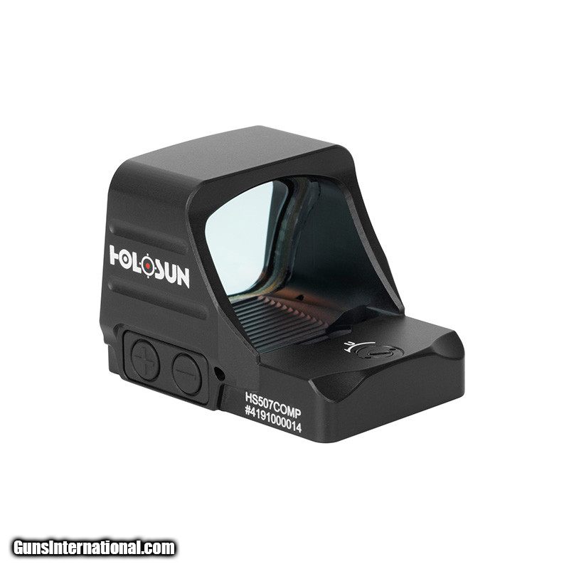 Description: Manufacturer: Holosun Model: 507Comp-RD Handgun Sight SKU: HS507COMP Magnification: 1x Reticle: Competition Multi-Reticle System includes a precision 2MOA dot, an 8MOA circle, 20MOA circle, and 32MOA circle Objective Lens: 1.1” x 0.87” Shake Awake Technology Power Source: Battery CR1632 Battery Brightness Setting: 8 DL & 2 NV Housing Material: 7075 T6 Aluminum Dimensions: 1.8" x 1.3" x 1.3" Weight: 1.7 oz All items are factory new in box unless otherwise stated. Based on the information available to us, the above specifications describe this item to the best of our knowledge. For further information, please contact or visit the manufacturer's . SOLD |