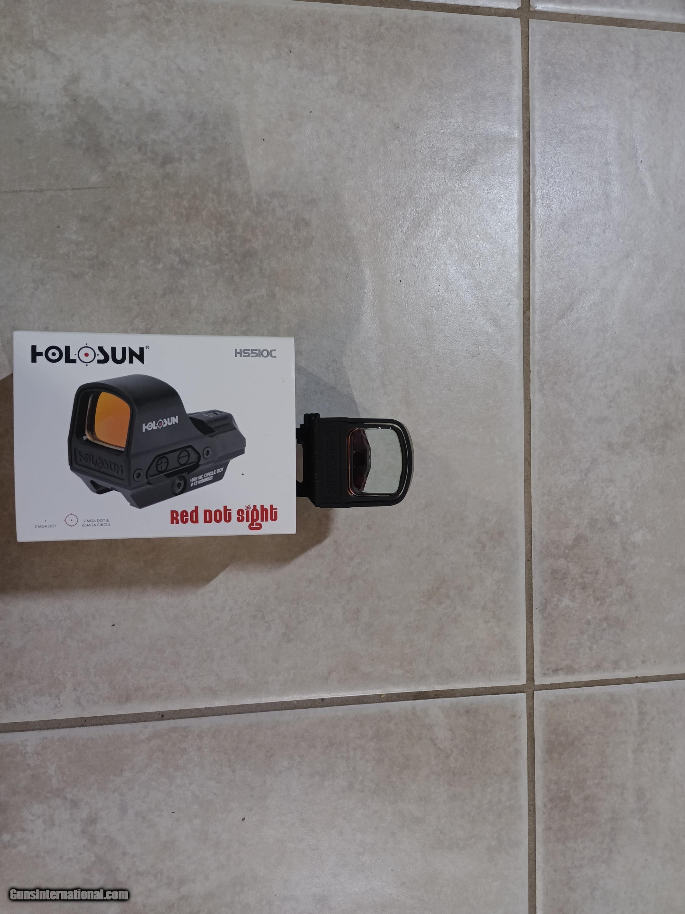 Description: The HS510C is a versatile open reflex optic designed for long gun applications. HS510C is at home on carbines, PCCs, and shotguns due its durable design. HS510C features and aluminum housing with titanium hood for added shock resilience and includes a QD absolute co-witness mount (1.41” dot height). HS510C is packed with Holosun innovation including Solar Failsafe, Shake Awake, MRS (Multi-Reticle System), Red Super LED with up to 50k hour battery life, with 10 daylight and 2 night vision compatible intensity settings. A lower 1/3 co-witness spacer is available separately from Holosun dealers that increases the dot height to 1.63”. SOLD |