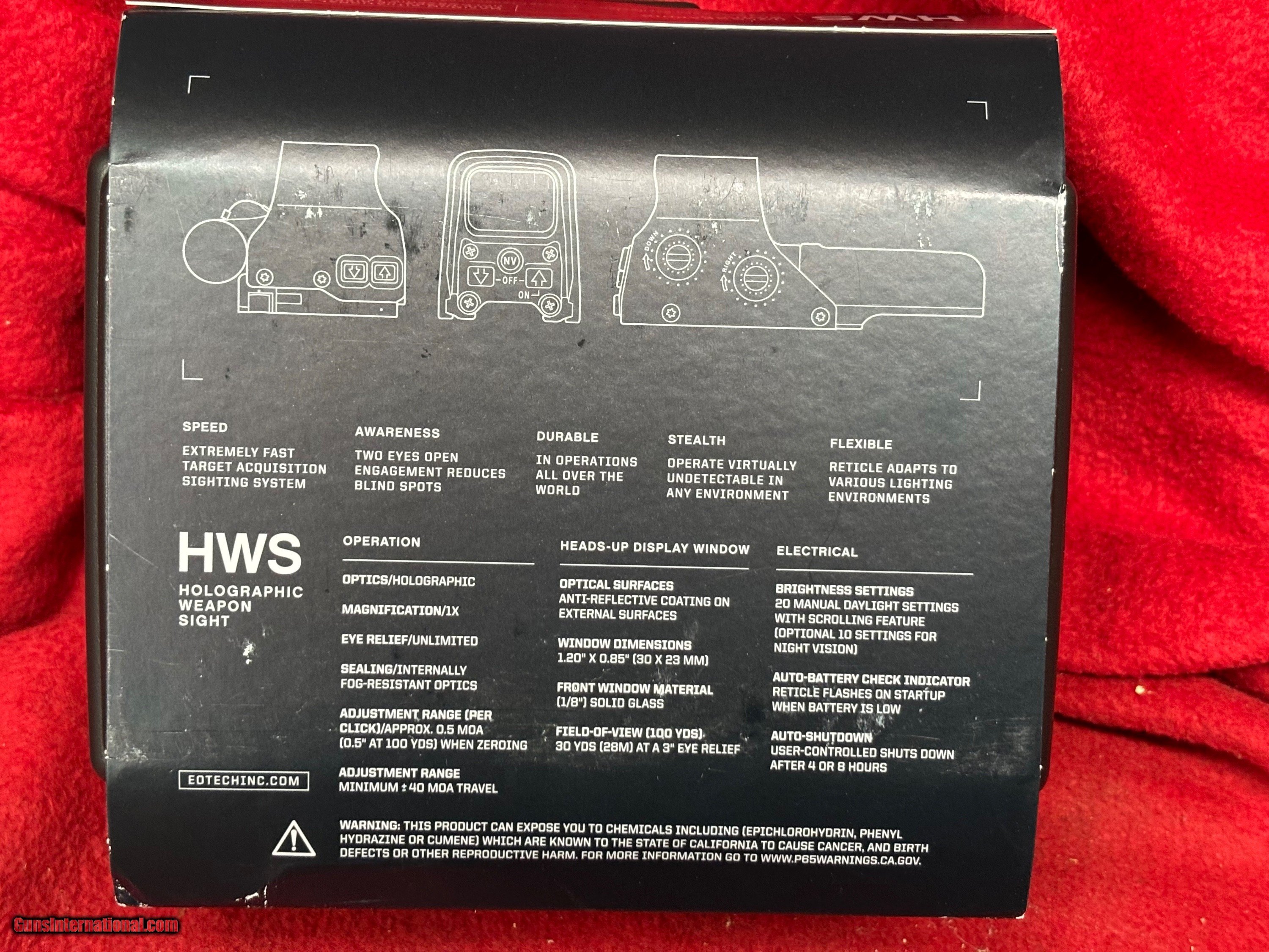 Description: NEW EOTECH XPS2-0 Holographic Sight - Black - Red Reticle Brand new in the box. Sight has a black case with red reticle. 1x Magnification.... two eyes open operation .......fast target acquisition......maximum situational awareness.... true heads up display $399.00..............marked down to get off shelf.... have to many. $21.00 to ship If you are WEST of the Mississippi shipping will be $10.00 extra Thank you for looking at our items. If it is listed on the site, we still have it in the shop. If you wish to buy, hit buy it now and call the shop to pay. We are open Monday thru Friday 10:00am-3:00pm EST ...........Ask for Bree....... (803) 874-1060. Please CALL the shop first if you are in California. You need to verify you can have this weapon, since we DO NOT accept returns from California. THERE IS A 3.5% CARD FEE. NO INTERNATIONAL SALES. SOLD |