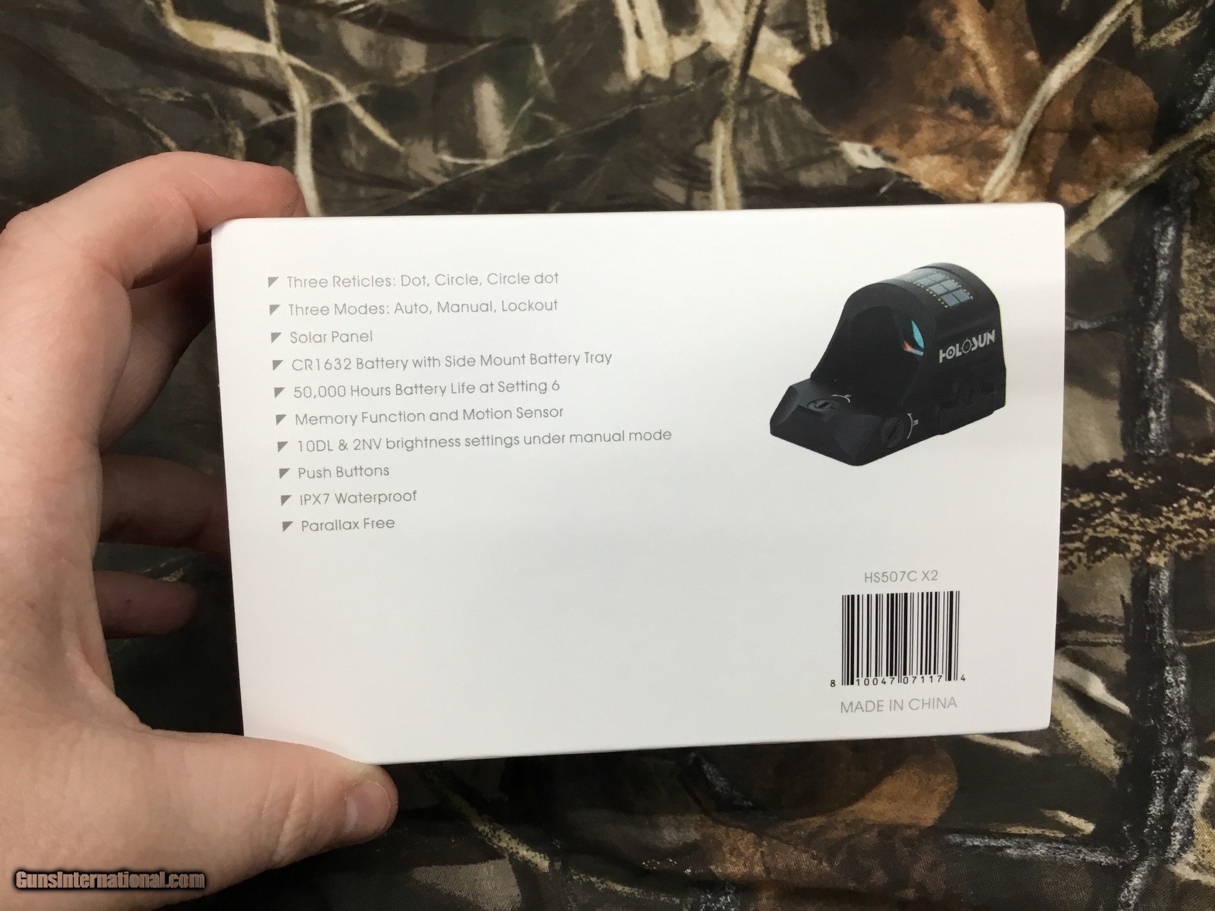 Description: NEW Holosun HS507C-X2 Red Dot Sight Open Reflex Optical Sight. Optic is NIB FEATURES - 3 reticles: dot, circle, circle dot - 3 modes: auto, manual, lockout - memory function and motion sensor - parallax free $249.00 Free Shipping Thank you for looking at our items. If it is listed on the site, we still have it in the shop. If you wish to buy, hit buy it now and call the shop to pay. Ask for Bree....... (803) 874-1060. If you are WEST of the Mississippi add $10 more to shipping cost. NO sales to California NO INTERNATIONAL SALES. SOLD |