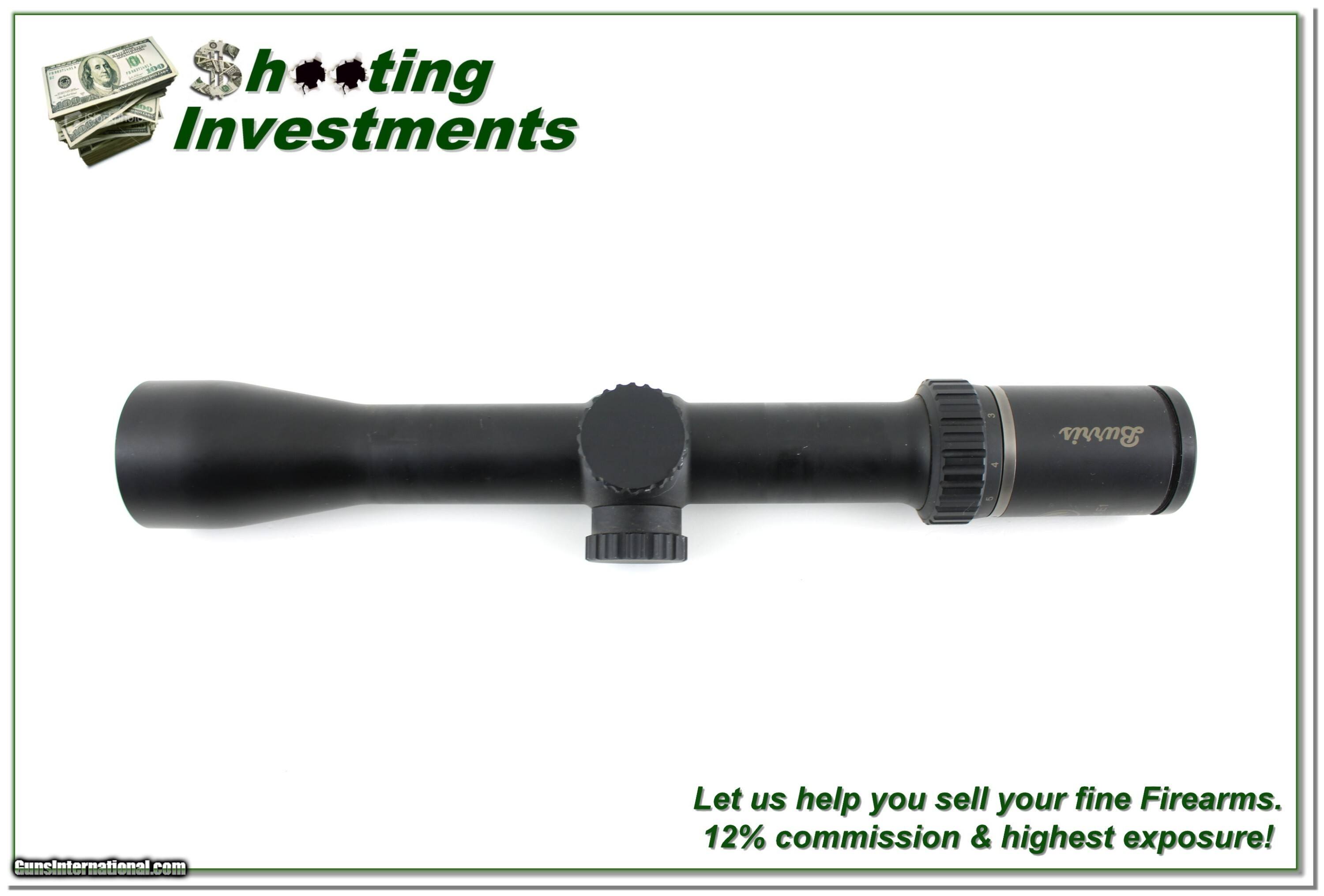 Description: This is an excellent condition compact Burris Fullfield E1 2-7x 35mm scope. It has crystal clear optics and the Ballistic Plex E1 Reticle. It has a matt finish and a retail price of $239! Save $100 with this one. Shipping is $14.95. Please email me with any questions or larger pictures. (Consign your quality firearms with Shooting Investments for only 12%! Let me know if you have any you would like to sell!) 21-0395s