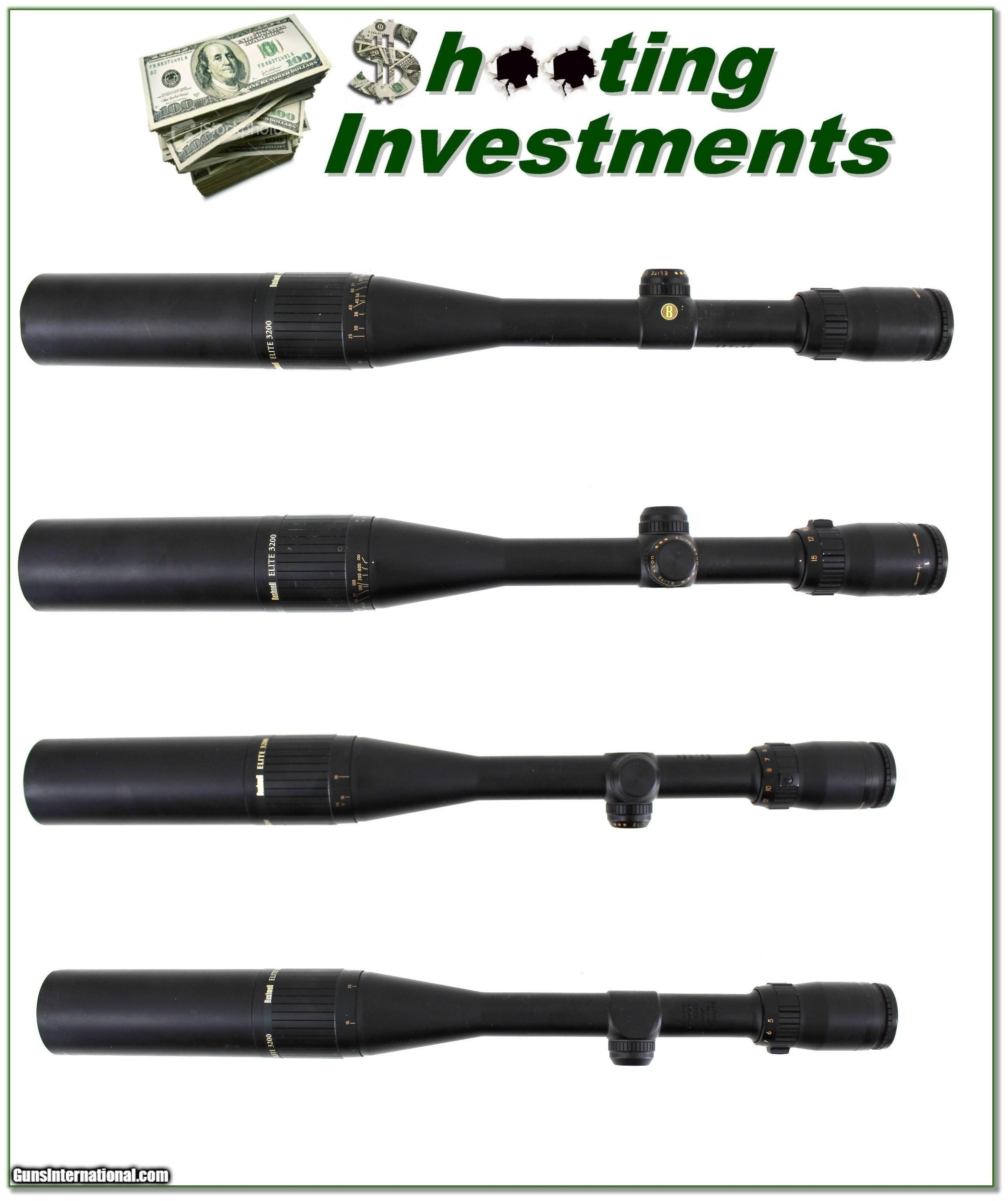Description: This is hard to find and top-quality Bushnell Elite 3200 rifle scope. It is 5-15 Power with AO and has crystal clear optics with Duplex crosshairs. These Japan made Bushnells are very nice scopes! This one is excellent with no marks I see. Shipping is $14.95. Please email me with any questions or larger pictures. (Consign your quality firearms with Shooting Investments for only 12%! Let me know if you have any you would like to sell!) 23-0295s Payment: Payment is by Money Order, Cashier’s Check or Personal Check. I can now also accept Credit Cards (MasterCard, Visa, Discover & American Express) with a 3% convenience fee. Shipping: The shipping charge will be listed in each description. It is $49 for most firearms. Some heavy guns or those insured for over $2000 will be higher. Shipments to Alaska and Hawaii are higher because air shipment is required. Most firearms are shipped on Tuesday and Thursday and usually in 5 days of receipt of payment. We package all shipments carefully and insure them. Optics are shipped Priority Mail and most other non-firearm shipments are shipped First Class. Returns: Our return policy is simple. If for any reason you are not pleased with your purchase, you may return your item for a full refund of purchase price. Ammunition cannot be returned. It is important to us that you are happy. Guns cannot be fired or dissembled before returning them and they must be returned in the same condition as received. Notification of a return must occur within 3 days of receipt at your dealer. Shipping, convenience and dealer fees are not refundable and are the responsibility of the buyer. Lay-a-way: If needed, we offer a 60 day lay-a-way option on most firearms. It is 1/3 now, 1/3 in 30 days and 1/3 in 60 days. Lay-a-way firearm sales are final and cannot be returned. If a lay-a-way is not completed the first payment cannot be refunded. Consigning your firearms with Shooting Investments: We will help you get top dollar for your firearms. While most local guns shops charge 20% or more, our fee is only 12% with a minimum of $75. At your local gun shop it might take months to sell. Selling on-line provides instant access to thousands of interested buyers. You won’t find any other on-line dealer willing to sell your firearms for only 12% or listing every gun on 3 separate s. Selling through an House typically costs the seller 15% and the buyer an addition 15% (so 30%) and you have to wait several months to sell and longer to receive funds. If properly priced, we will sell your firearms within a few weeks. Send us an email or give us a call and we’ll explain how easy it is for you to get top dollar. Trading: Trading for us is really just buying your gun to re-sell. If you have a gun you want to trade, please email a picture and we will let you know what we can give for it. You will always get more if we sell it for you on consignment. SOLD |