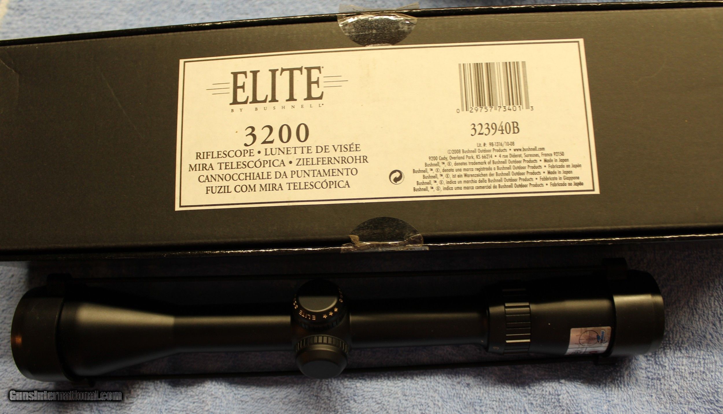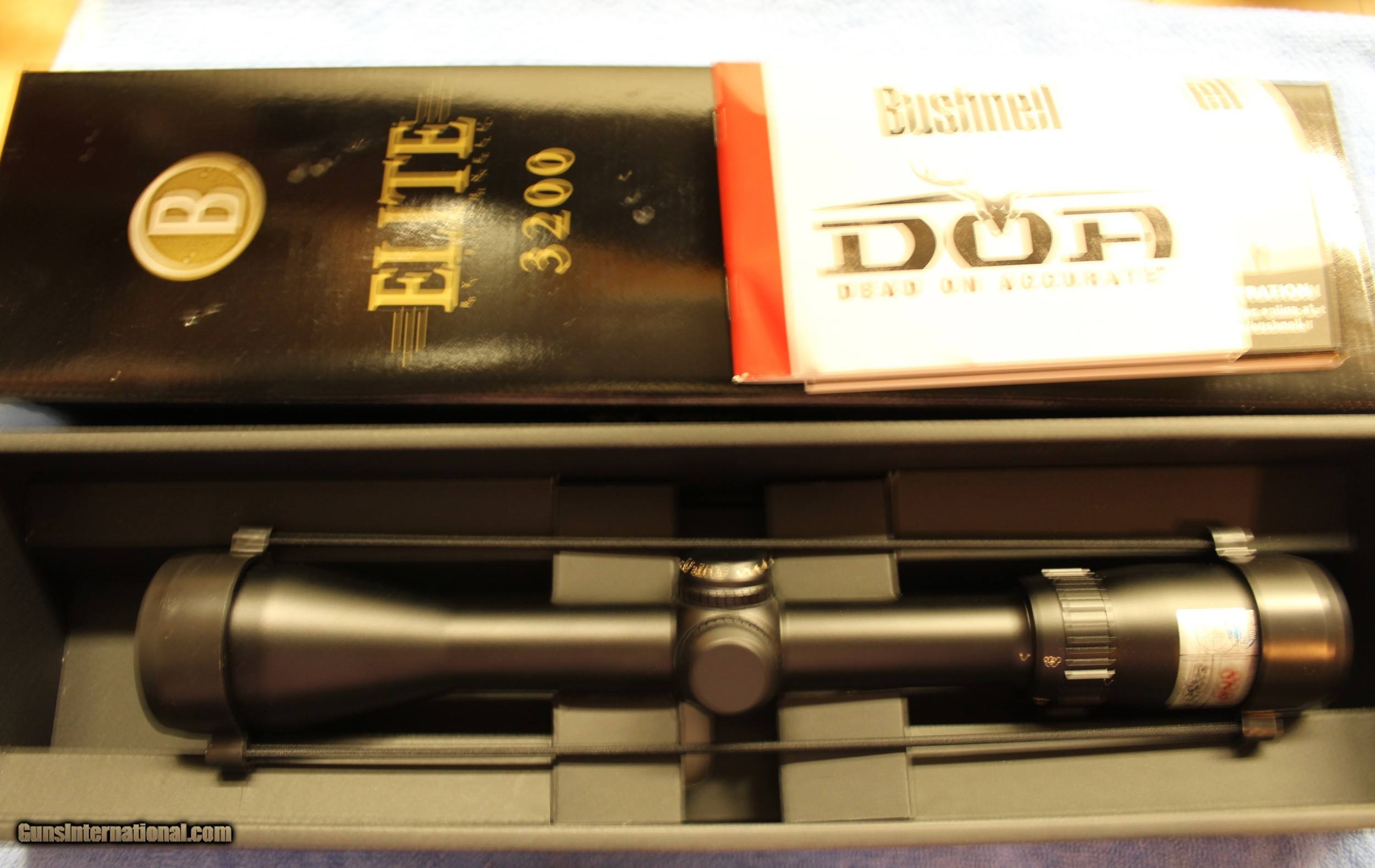 Description: Bushnell 3200 Elite 3x9x40 scope with Rainguard technology and has Bushnell's Dead on Accurate 600 reticle. Scope is factory new in box with papers and end caps. Shipping & Insurance $15.00 SOLD |