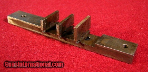 Description: Three leaf rear express sight. All leaves fold and all different heights. Well machined and in the white. NOS estate find. SOLD |
