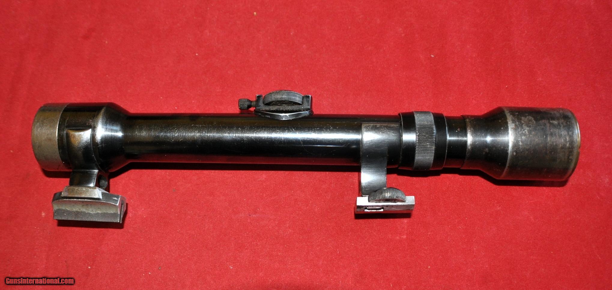Description: Vintage 1930th-1945 MSW/WETZLAR 4X81 magnification with mounts,bases, saddle and leather quiver. This all set will be excellent to install on drilling, double rifle or over/under that was made in Germany or other Europian countries prior WWII.Also you can install this scope on Gewehr 98 or K98 Mauser. Condition: tube bluing(80-85%)lenses-without scratches, clear and sharp view,elevation adjustment working good. Reticle: German Duplex/Crosshair with a dot in the center. Magnification 4 X Length 278.00 mm(11 inches) Main tube diameter 26.5 mm Luminosity 81 Weight 15.6 ounces or 442 gram You can find more mounts,scopes,etc on ebay by my nickname firefishco. All packages will be insured. Please look on my other items(scopes and mounts) and GOOD LUCK! SOLD |