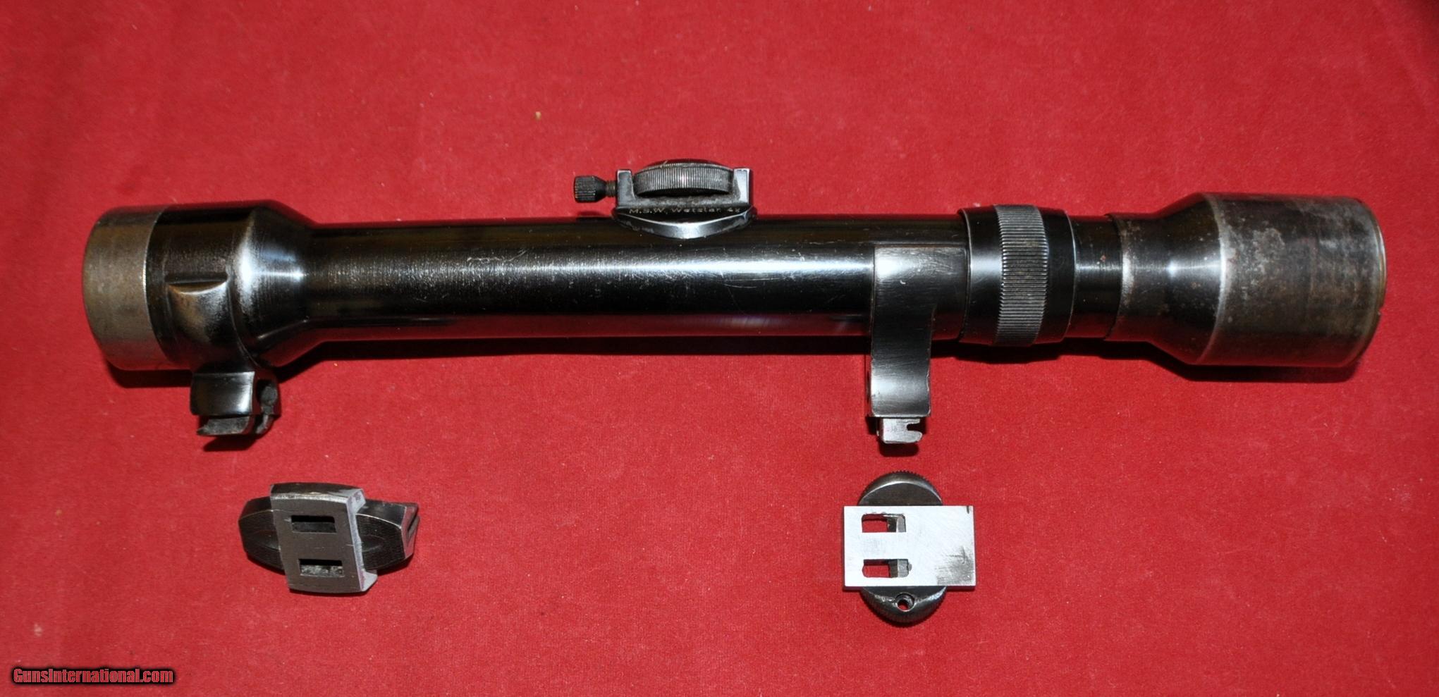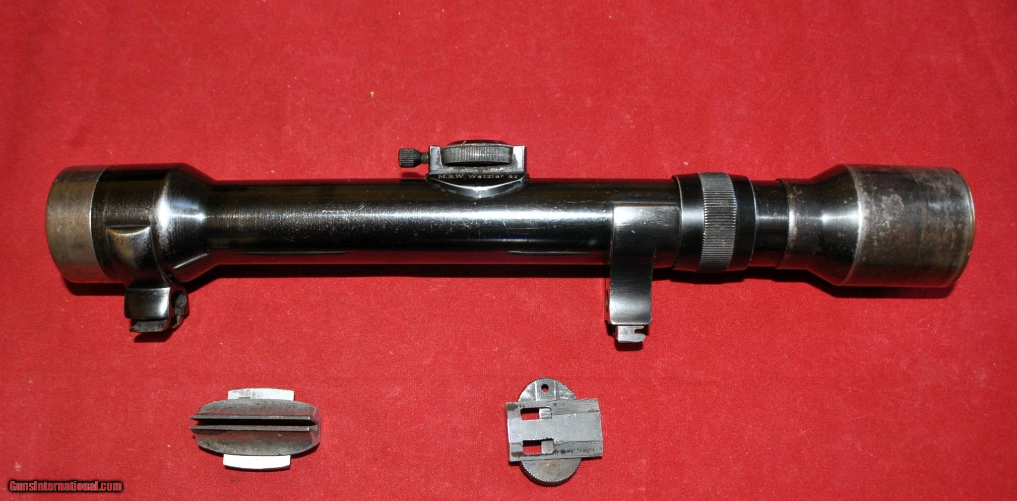 German MSW/Wetzlar 4X81 rifle scope w/mounts,bases,front saddle&leather quiver