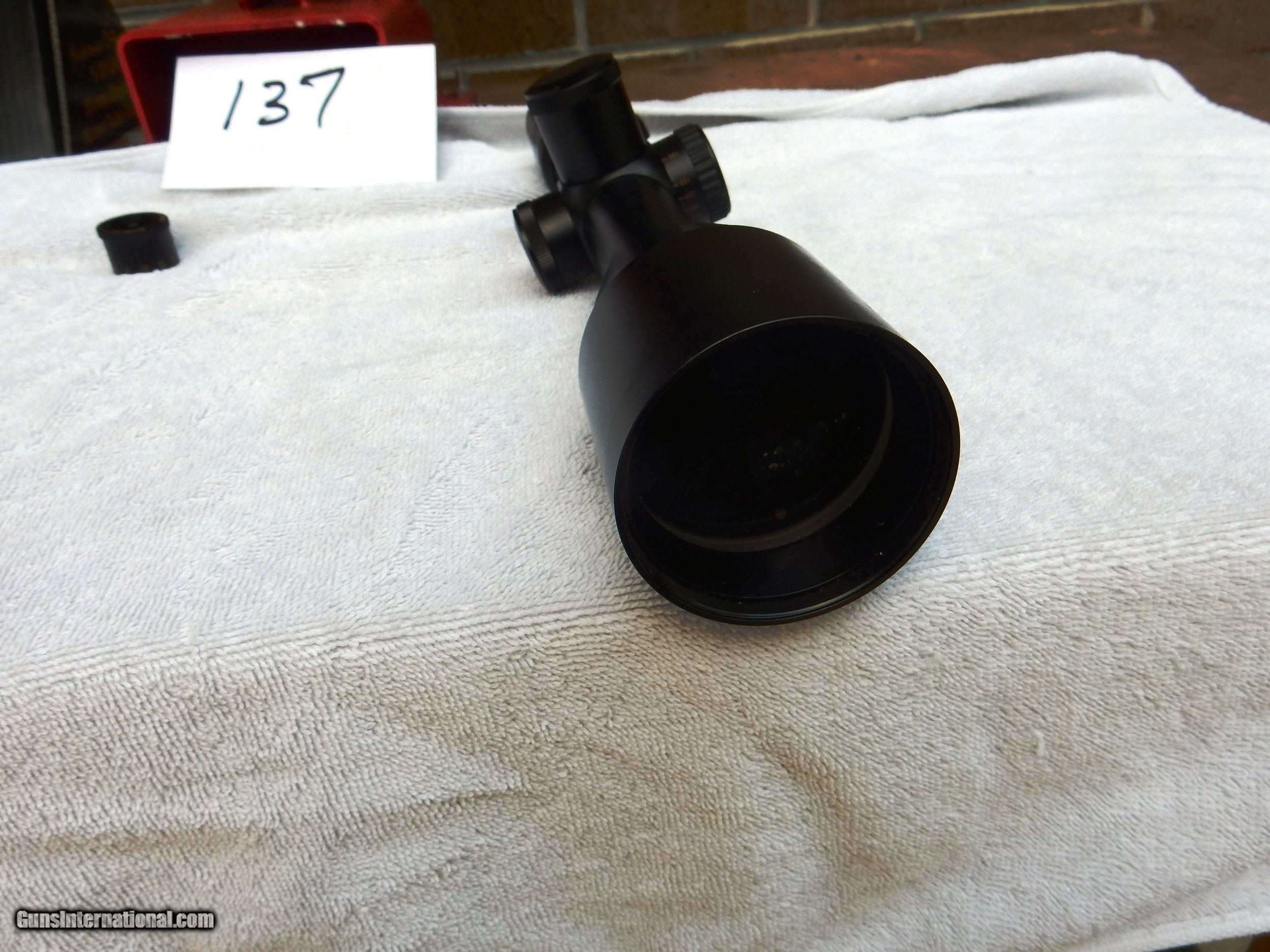 Description: Huskeman Long Range Scope. 5x20x50 mm.It has two turrets. 1 for 300 win and 1 for 6.5 x284. It has ring marks. SOLD |