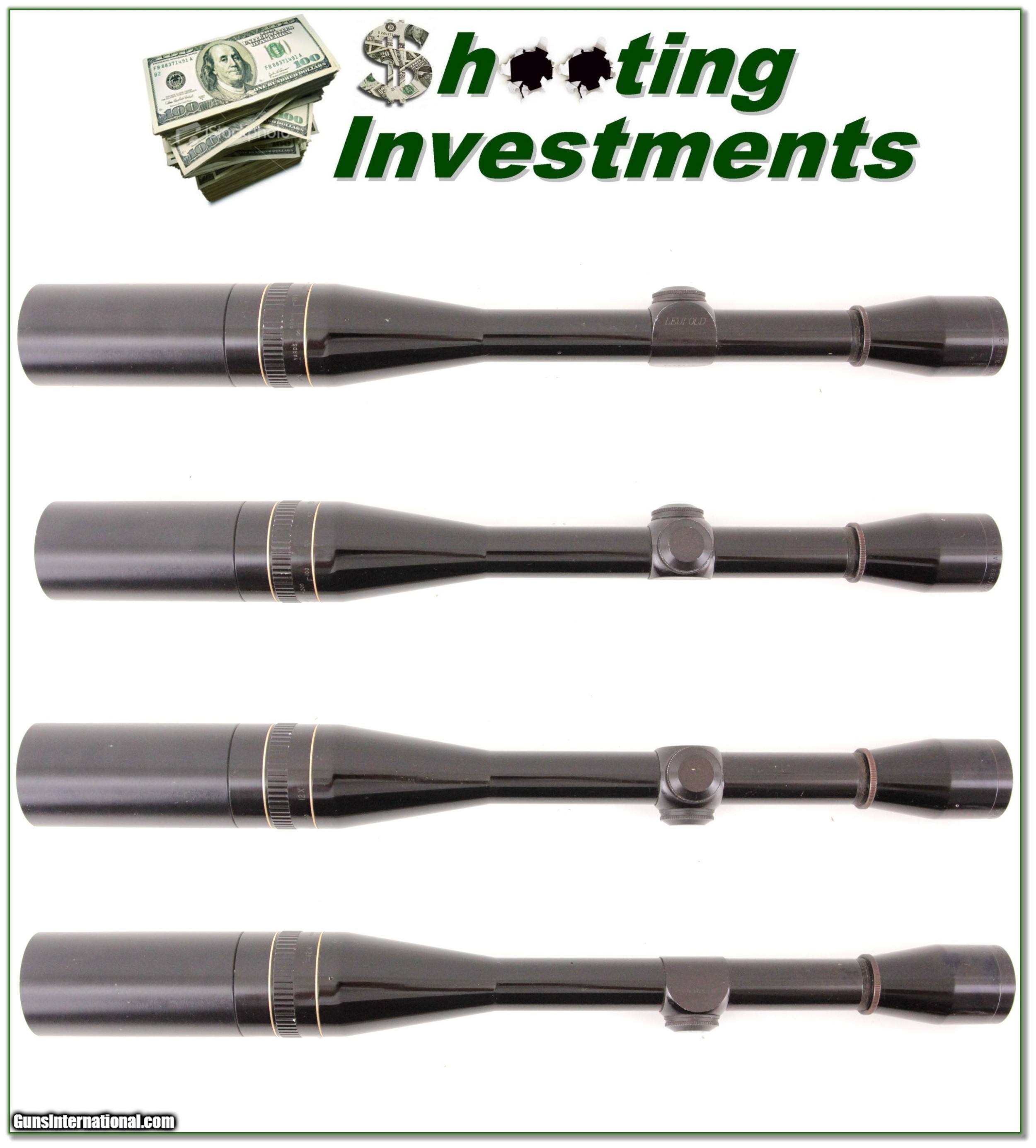 Description: This is a hard to find Leupold 12X fixed power scope with extended Sunshield and Adjustable Objective. The optics are crystal clear with fine duplex crosshair. It has only a few small marks. This will make a very nice scope for any target or varmint rifle. These are getting harder to find and come with Leupolds forever warrantee! Shipping is $11.95 and please email me with any questions or larger pictures. (Consign your quality firearms with Shooting Investments for only 12%! Let me know if you have any you would like to sell!) 19-0705s Payment: Payment is by Money Order, Cashiers Check or Personal Check. I can now also accept Credit Cards (MasterCard, Visa, Discover & American Express) with a 3% convenience fee. PayPal can be used for some items but never for firearms. Shipping: The shipping charge will be listed in each description. It is $39 for most firearms. Some heavy guns or those insured for over $2000 will be higher. Shipments to Alaska and Hawaii are higher because air shipment is required. Most firearms are shipped on Tuesday and Thursday and usually in 5 days of receipt of payment. We package all shipments carefully and insure them. Optics are shipped Priority Mail and most other non-firearm shipments are shipped First Class. Returns: Our return policy is simple. If for any reason you are not pleased with your purchase, you may return your item for a full refund of purchase price. Ammunition cannot be returned. It is important to us that you are happy. Guns cannot be fired or dissembled before returning them and they must be returned in the same condition as received. Notification of a return must occur with-in 3 days of receipt at your dealer. Shipping, convenience and dealer fees are not refundable and are the responsibility of the buyer. Lay-a-way: If needed, we offer a 60 day lay-a-way option on most firearms. It is 1/3 now, 1/3 in 30 days and 1/3 in 60 days. Lay-a-way firearm sales are final and if not completed the first payment cannot be returned. Consigning your firearms with Shooting Investments: We will help you get top dollar for your firearms. While most local guns shops charge 20% or more, our fee is only 12% with a minimum of $75. At your local gun shop it might take months to sell. Selling on-line provides instant access to thousands of interested buyers. You won’t find any other on-line dealer willing to sell your firearms for only 12% or listing every gun on 3 separate s. Selling through an House typically costs the seller 15% and the buyer an addition 15% (so 30%) and you have to wait several months to sell and longer to receive funds. If properly priced, we will sell your firearms in a few weeks. Send us an email or give us a call and we’ll explain how easy it is for you to get top dollar. Trading: Trading for use is really just buying your gun to re-sell. If you have a gun you want to trade, please email a picture and we will let you know what we can give or it. You will always get more if we sell it for you on consignment. Help for California Buyers: We are happy to ship to California. It is the buyer’s responsibility to make sure any item you buy is legal in your state. We are also happy to help with your purchase of a firearm from someone other than us. If you see a gun you would like to buy but the seller can’t or won’t ship to California they can ship to use and we’ll then ship it to your California dealer. The cost for this service is only $30 + shipping. Let us know if we can help! SOLD |
