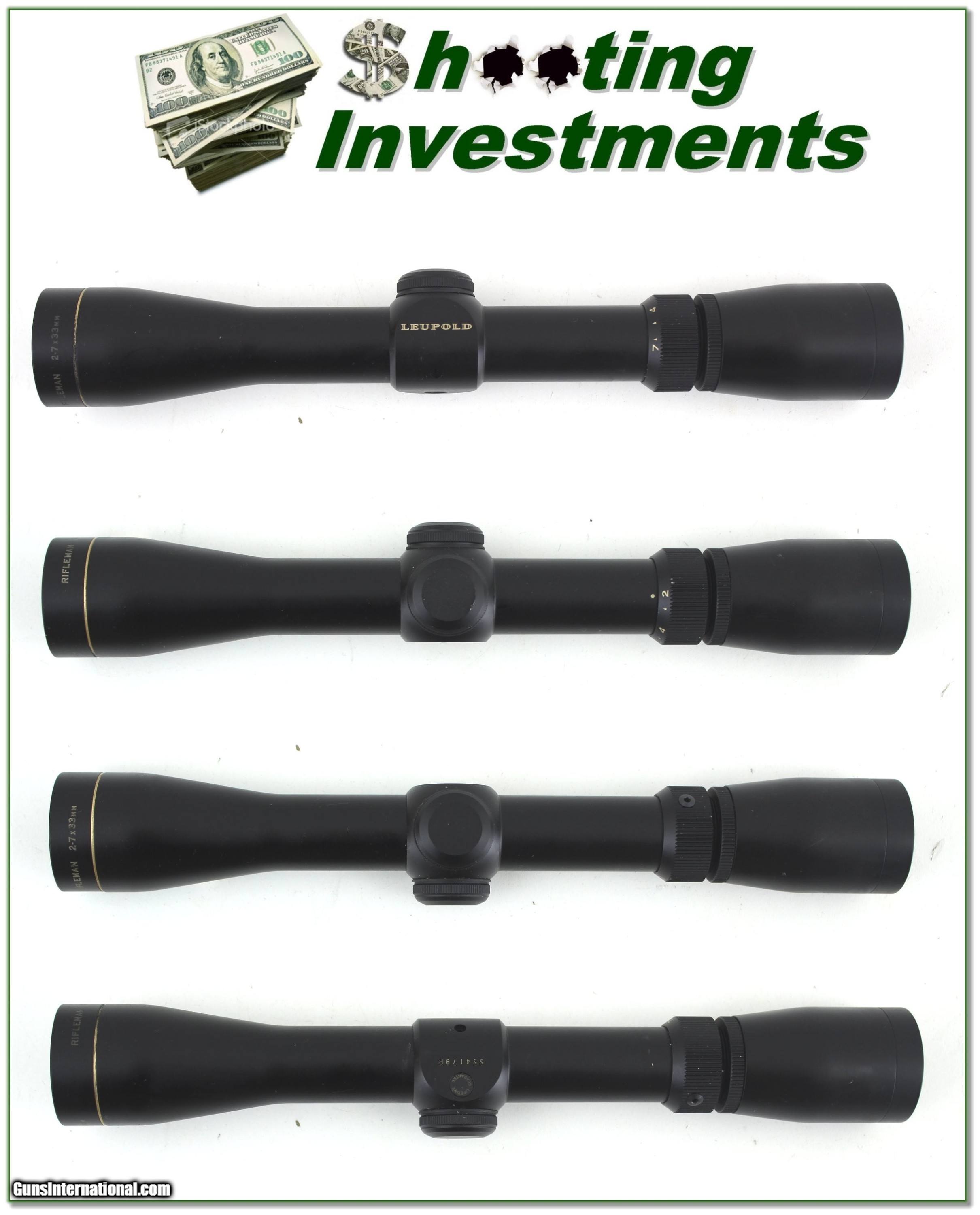 Description: This is a like new Leupold 2-7 x 33mm scope. I find no marks. It has crystal clear optics with Duplex crosshairs. It will make a fine scope for any rifle. Shipping is $14.95. Please email me with any questions or larger pictures. (Consign your quality firearms with Shooting Investments for only 12%! Let me know if you have any you would like to sell!) 21-0416s Payment: Payment is by Money Order, Cashier’s Check or Personal Check. I can now also accept Credit Cards (MasterCard, Visa, Discover & American Express) with a 3% convenience fee. Shipping: The shipping charge will be listed in each description. It is $39 for most firearms. Some heavy guns or those insured for over $2000 will be higher. Shipments to Alaska and Hawaii are higher because air shipment is required. Most firearms are shipped on Tuesday and Thursday and usually in 5 days of receipt of payment. We package all shipments carefully and insure them. Optics are shipped Priority Mail and most other non-firearm shipments are shipped First Class. Returns: Our return policy is simple. If for any reason you are not pleased with your purchase, you may return your item for a full refund of purchase price. Ammunition cannot be returned. It is important to us that you are happy. Guns cannot be fired or dissembled before returning them and they must be returned in the same condition as received. Notification of a return must occur within 3 days of receipt at your dealer. Shipping, convenience and dealer fees are not refundable and are the responsibility of the buyer. Lay-a-way: If needed, we offer a 60 day lay-a-way option on most firearms. It is 1/3 now, 1/3 in 30 days and 1/3 in 60 days. Lay-a-way firearm sales are final and cannot be returned. If a lay-a-way is not completed the first payment cannot be refunded. Consigning your firearms with Shooting Investments: We will help you get top dollar for your firearms. While most local guns shops charge 20% or more, our fee is only 12% with a minimum of $75. At your local gun shop it might take months to sell. Selling on-line provides instant access to thousands of interested buyers. You won’t find any other on-line dealer willing to sell your firearms for only 12% or listing every gun on 3 separate s. Selling through an House typically costs the seller 15% and the buyer an addition 15% (so 30%) and you have to wait several months to sell and longer to receive funds. If properly priced, we will sell your firearms within a few weeks. Send us an email or give us a call and we’ll explain how easy it is for you to get top dollar. Trading: Trading for us is really just buying your gun to re-sell. If you have a gun you want to trade, please email a picture and we will let you know what we can give for it. You will always get more if we sell it for you on consignment. Help for California Buyers: We are happy to ship to California. It is the buyer’s responsibility to make sure any item you buy is legal in your state. We are also happy to help with your purchase of a firearm from someone other than us. If you see a gun you would like to buy but the seller can’t or won’t ship to California they can ship to use and we’ll then ship it to your California dealer. The cost for this service is only $30 + shipping. Let us know if we can help! SOLD |