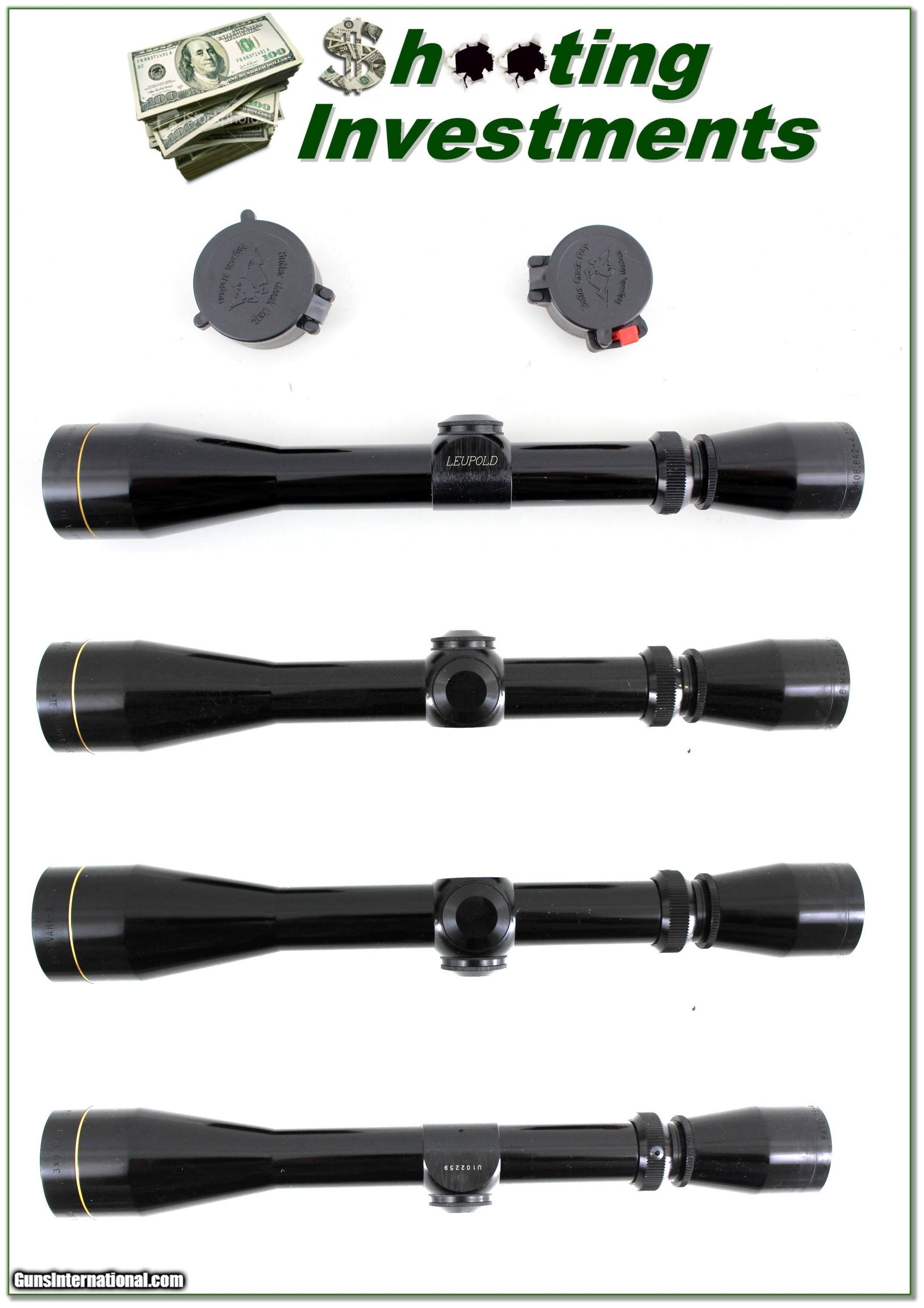 Description: This is a no longer made GLOSS Leupold Vari-X IIc in 3-9 power. It has crystal clear optics with duplex crosshairs. It is in excellent condition with no marks of note. It comes with flip open covers as seen. Shipping is $14.95. Please email me with any questions or larger pictures. (Consign your quality firearms with Shooting Investments for only 12%! Let me know if you have any you would like to sell!) 24-0100s Payment: Payment is by Money Order, Cashier’s Check or Personal Check. I can now also accept Credit Cards (MasterCard, Visa, Discover & American Express) with a 3% convenience fee. Shipping: The shipping charge will be listed in each description. It is $49 for most firearms. Some heavy guns or those insured for over $2000 will be higher. Shipments to Alaska and Hawaii are higher because air shipment is required. Most firearms are shipped on Tuesday and Thursday and usually in 5 days of receipt of payment. We package all shipments carefully and insure them. Optics are shipped Priority Mail and most other non-firearm shipments are shipped First Class. Returns: Our return policy is simple. If for any reason you are not pleased with your purchase, you may return your item for a full refund of purchase price. Ammunition cannot be returned. It is important to us that you are happy. Guns cannot be fired or dissembled before returning them and they must be returned in the same condition as received. Notification of a return must occur within 3 days of receipt at your dealer. Shipping, convenience and dealer fees are not refundable and are the responsibility of the buyer. Lay-a-way: If needed, we offer a 60 day lay-a-way option on most firearms. It is 1/3 now, 1/3 in 30 days and 1/3 in 60 days. Lay-a-way firearm sales are final and cannot be returned. If a lay-a-way is not completed the first payment cannot be refunded. Consigning your firearms with Shooting Investments: We will help you get top dollar for your firearms. While most local guns shops charge 20% or more, our fee is only 12% with a minimum of $75. At your local gun shop it might take months to sell. Selling on-line provides instant access to thousands of interested buyers. You won’t find any other on-line dealer willing to sell your firearms for only 12% or listing every gun on 3 separate s. Selling through an House typically costs the seller 15% and the buyer an addition 15% (so 30%) and you have to wait several months to sell and longer to receive funds. If properly priced, we will sell your firearms within a few weeks. Send us an email or give us a call and we’ll explain how easy it is for you to get top dollar. Trading: Trading for us is really just buying your gun to re-sell. If you have a gun you want to trade, please email a picture and we will let you know what we can give for it. You will always get more if we sell it for you on consignment. SOLD |