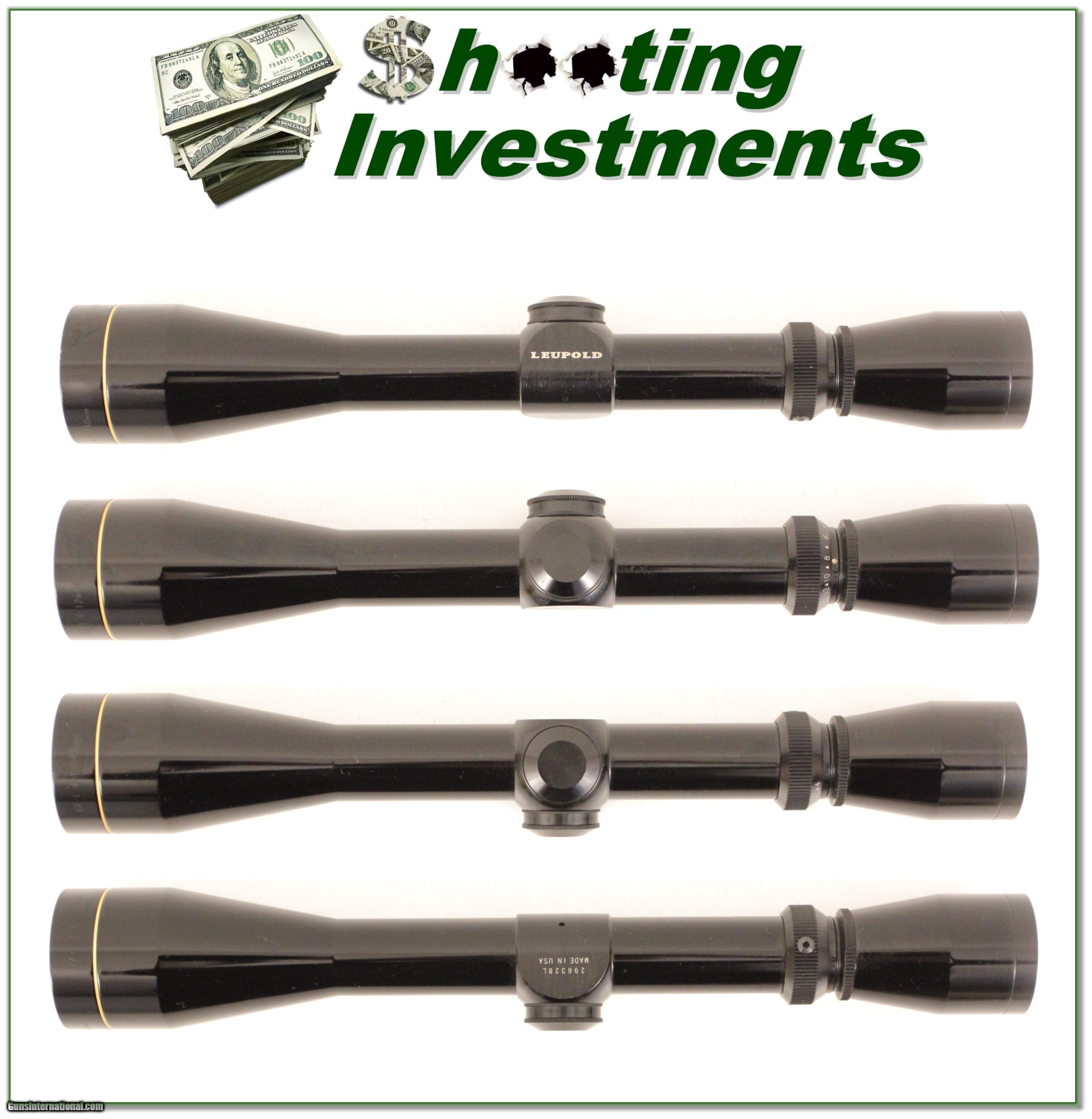 Description: This is a like new Leupold 4-12 x 40mm scope. It is the harder to find gloss finish and has duplex crosshairs with crystal clear optics. It will make a nice scope for any gun. Shipping $9.95 and please email me with any questions or larger pictures. (I now consign quality firearms only 10%! Let me know if you have any you would like to sell!) [16-1387s] Payment: Payment is by Money Order, Cashiers Check or Personal Check. I can now also accept MasterCard and Visa with a 3% convenience fee. PayPal can be used for some items but never firearms. Please let us know if you would like to pay via PayPal. Shipping: The shipping charge will be listed in each description. It is $35 for most guns. Some heavy guns or those insured for over $2000 will be higher. Shipments to Alaska and Hawaii are higher because air shipment is required. Most firearms are shipped within 5 days of receipt of payment. We prefer shipping at the beginning of the week to avoid firearms in transit over weekends. We package all shipments carefully and insure them for the full purchase price, rounded up to the next $100. In the unlikely event that damage occurs, it is important that you save all packaging material for the claims process. Optics are shipped Priority Mail and most other non-firearm shipments are shipped First Class. Returns: Our return policy is simple. If for any reason you are not pleased with your purchase, you may return your item for a refund. The only exception is ammunition, it cannot be returned. It is important to us that you are happy. Guns cannot be fired or dissembled before returning them and must be returned in the same condition as received. Notification of a return must occur with-in 3 days of receipt at your dealer. Shipping, convenience and dealer fees are not refundable and are the responsibility of the buyer. Lay-a-way: If needed, we offer a 60 day lay-a-way option on most firearms. It is 1/3 now, 1/3 in 30 days and 1/3 in 60 days. Lay-a-way firearm sales are final. Consigning your firearms with Shooting Investments: We will help you get top dollar for your firearms. While most local guns shops charge 20% or more, our fee is only 10% with a minimum of $50. At your local gun shop it might take months to sell. Selling on-line provides instant access to thousands of interested buyers. You won’t find any other on-line dealer willing to sell your firearms for only 10% or listing every gun on 4 separate s. Selling through an House typically costs the seller 15% and the buyer an addition 15% (so 30%) and you have to wait several months to sell and longer to receive funds. If properly priced, we will sell your firearms in a week or two. Send us an email or give us a call and we’ll explain how easy it is for you to get top dollar. Trading: We collect guns and usually just trade for guns we want to add to our collections. We often sell guns for others wanting to purchase one of ours. We find this the most fair to both of us. Our Commission is only 10% and we hold the gun you want until yours sells. Please contact us if you want to sell one of yours to buy one of ours. Help for California Buyers: We are happy to ship to California. It is the buyer’s responsibility to make sure any item you buy is legal in your state. We are also happy to help with your purchase of a firearm from someone other than us. If you see a gun you would like to buy but the seller can’t or won’t ship to California we can help. You buy the gun and have it shipped to us. We’ll then ship it to your California dealer. The cost for this service is only $30 + shipping. Let me know if we can help! SOLD |