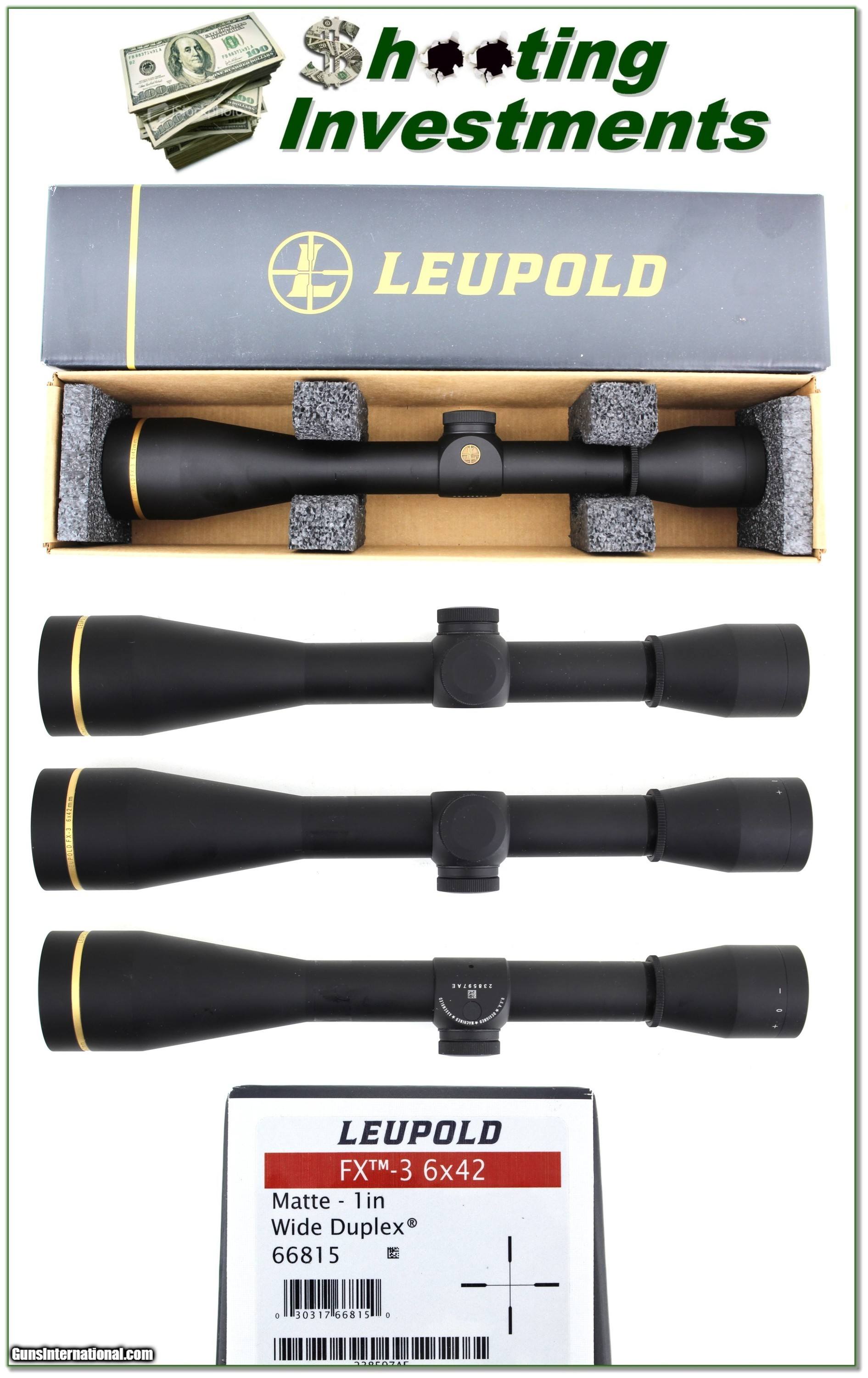 Description: This is a high-end fixed power Leupold FX-3 6x42mm. It is in new condition and comes in original box as seen. The new on-line price for this scope is $399 so how can you go wrong here considering Leupold’s Lifetime Warrantee! Shipping is $14.95 and please email me with any questions or larger pictures. (Consign your quality firearms with Shooting Investments for only 12%! Let me know if you have any you would like to sell!) 19-s018 Payment: Payment is by Money Order, Cashiers Check or Personal Check. I can now also accept Credit Cards (MasterCard, Visa, Discover & American Express) with a 3% convenience fee. PayPal can be used for some items but never for firearms. Shipping: The shipping charge will be listed in each description. It is $39 for most firearms. Some heavy guns or those insured for over $2000 will be higher. Shipments to Alaska and Hawaii are higher because air shipment is required. Most firearms are shipped on Tuesday and Thursday and usually in 5 days of receipt of payment. We package all shipments carefully and insure them. Optics are shipped Priority Mail and most other non-firearm shipments are shipped First Class. Returns: Our return policy is simple. If for any reason you are not pleased with your purchase, you may return your item for a full refund of purchase price. Ammunition cannot be returned. It is important to us that you are happy. Guns cannot be fired or dissembled before returning them and they must be returned in the same condition as received. Notification of a return must occur with-in 3 days of receipt at your dealer. Shipping, convenience and dealer fees are not refundable and are the responsibility of the buyer. Lay-a-way: If needed, we offer a 60 day lay-a-way option on most firearms. It is 1/3 now, 1/3 in 30 days and 1/3 in 60 days. Lay-a-way firearm sales are final and if not completed the first payment cannot be returned. Consigning your firearms with Shooting Investments: We will help you get top dollar for your firearms. While most local guns shops charge 20% or more, our fee is only 12% with a minimum of $75. At your local gun shop it might take months to sell. Selling on-line provides instant access to thousands of interested buyers. You won’t find any other on-line dealer willing to sell your firearms for only 12% or listing every gun on 3 separate s. Selling through an House typically costs the seller 15% and the buyer an addition 15% (so 30%) and you have to wait several months to sell and longer to receive funds. If properly priced, we will sell your firearms in a few weeks. Send us an email or give us a call and we’ll explain how easy it is for you to get top dollar. Trading: Trading for use is really just buying your gun to re-sell. If you have a gun you want to trade, please email a picture and we will let you know what we can give or it. You will always get more if we sell it for you on consignment. Help for California Buyers: We are happy to ship to California. It is the buyer’s responsibility to make sure any item you buy is legal in your state. We are also happy to help with your purchase of a firearm from someone other than us. If you see a gun you would like to buy but the seller can’t or won’t ship to California they can ship to use and we’ll then ship it to your California dealer. The cost for this service is only $30 + shipping. Let us know if we can help! SOLD |