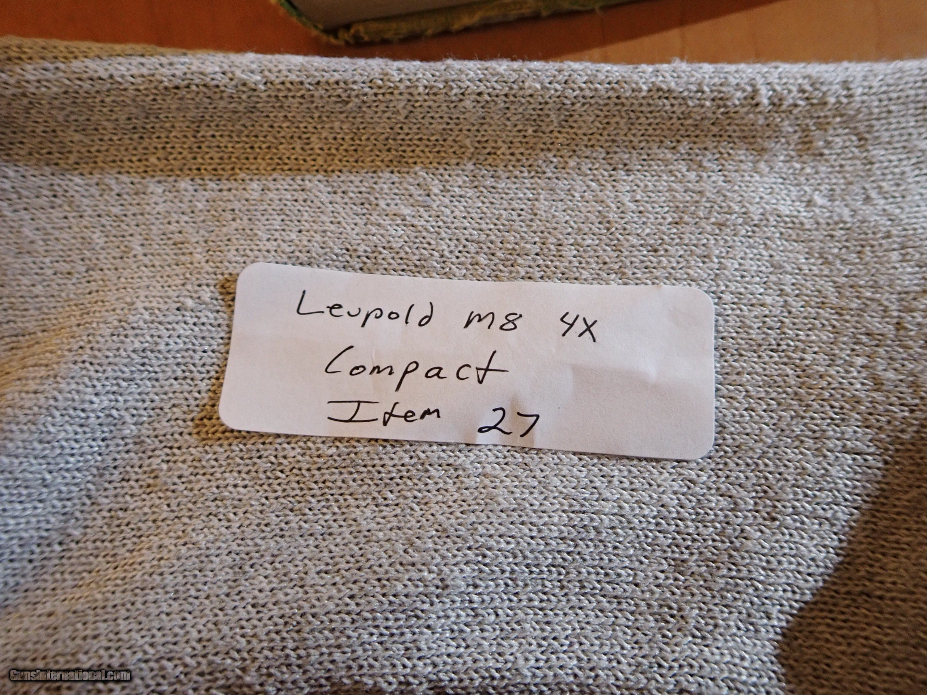Description: Here is a Leupold M8 4x Compact Scope. Thanks for looking! $18 shipping, Alaska and Hawaii will be a little more for shipping. Please call with any questions. Please click the BUY NOW button to purchase this item. We are required to charge 8.25% for Texas residents. There is a 3.5% fee if paying by credit card. SOLD |