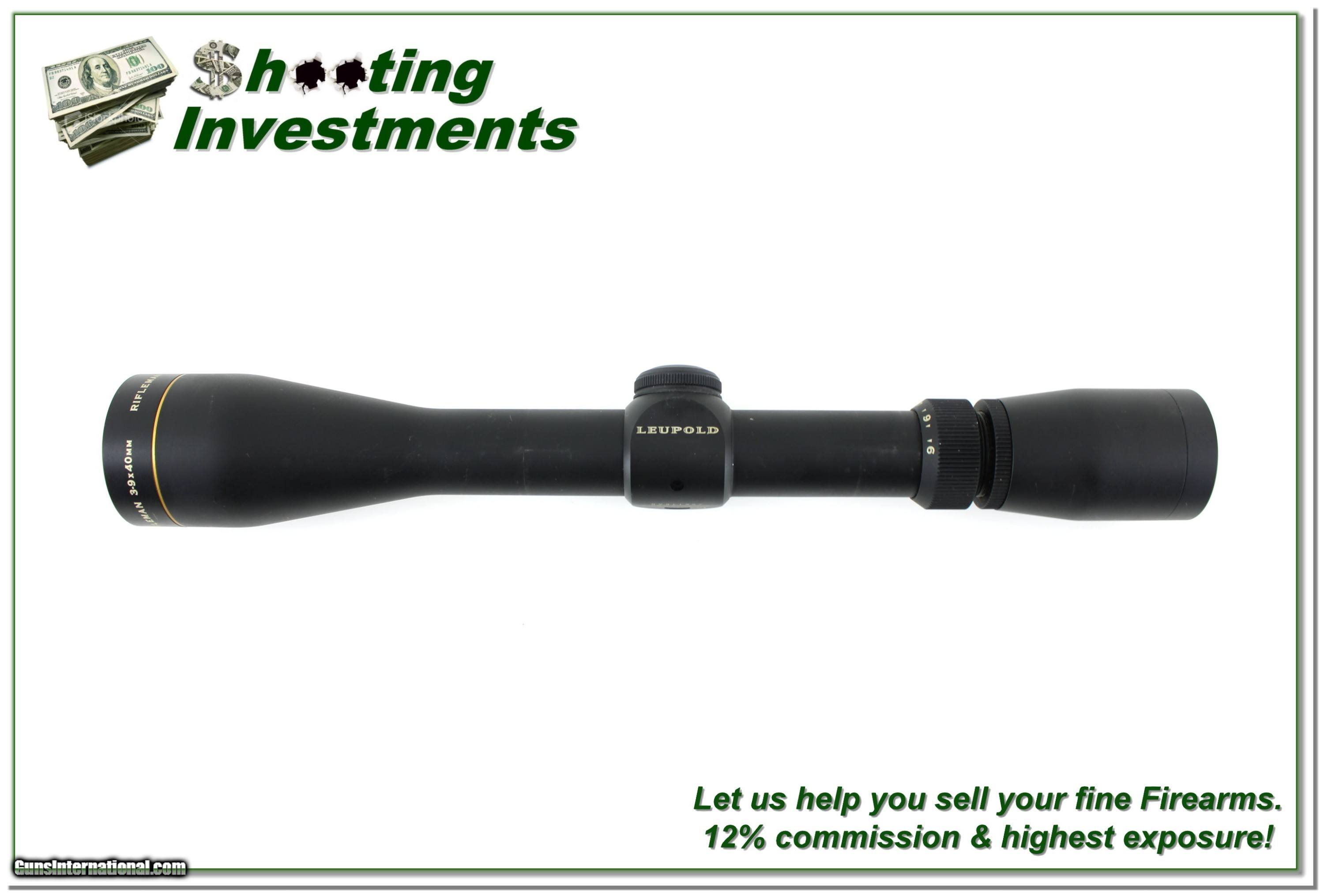 Description: Enhance your accuracy with the Leupold Rifleman 3-9x40mm Matte Rifle Scope. This scope is in excellent condition with only a few tiny marks from previous mounting. Featuring a versatile LR Duplex reticle and crystal-clear optics, it's perfect for hunters and marksmen alike. Durable, lightweight, and waterproof, this scope delivers reliable performance in all conditions—ideal for medium to long-range shooting. Made in the USA. Shipping is $14.95 and please email me with any questions or larger pictures. (Consign your quality firearms with Shooting Investments for only 12%! Let me know if you have any you would like to sell!) 24-0870s Payment: Payment is by Money Order, Cashier’s Check or Personal Check. I can now also accept Credit Cards (MasterCard, Visa, Discover & American Express) with a 3% convenience fee. Shipping: The shipping charge will be listed in each description. It is $49 for most firearms. Some heavy guns or those insured for over $2000 will be higher. Shipments to Alaska and Hawaii are higher because air shipment is required. Most firearms are shipped on Tuesday and Thursday and usually in 5 days of receipt of payment. We package all shipments carefully and insure them. Optics are shipped Priority Mail and most other non-firearm shipments are shipped First Class. Returns: Our return policy is simple. If for any reason you are not pleased with your purchase, you may return your item for a full refund of purchase price. Ammunition cannot be returned. It is important to us that you are happy. Guns cannot be fired or dissembled before returning them and they must be returned in the same condition as received. Notification of a return must occur within 3 days of receipt at your dealer. Shipping, convenience and dealer fees are not refundable and are the responsibility of the buyer. Lay-a-way: If needed, we offer a 60 day lay-a-way option on most firearms. It is 1/3 now, 1/3 in 30 days and 1/3 in 60 days. Lay-a-way firearm sales are final and cannot be returned. If a lay-a-way is not completed the first payment cannot be refunded. Consigning your firearms with Shooting Investments: We will help you get top dollar for your firearms. While most local guns shops charge 20% or more, our fee is only 12% with a minimum of $100. At your local gun shop it might take months to sell. Selling on-line provides instant access to thousands of interested buyers. You won’t find any other on-line dealer willing to sell your firearms for only 12% or listing every gun on 3 separate s. Selling through an House typically costs the seller 15% and the buyer an addition 15% (so 30%) and you have to wait several months to sell and longer to receive funds. If properly priced, we will sell your firearms within a few weeks. Send us an email or give us a call and we’ll explain how easy it is for you to get top dollar. Trading: Trading for us is really just buying your gun to re-sell. If you have a gun you want to trade, please email a picture and we will let you know what we can give for it. You will always get more if we sell it for you on consignment. SOLD |