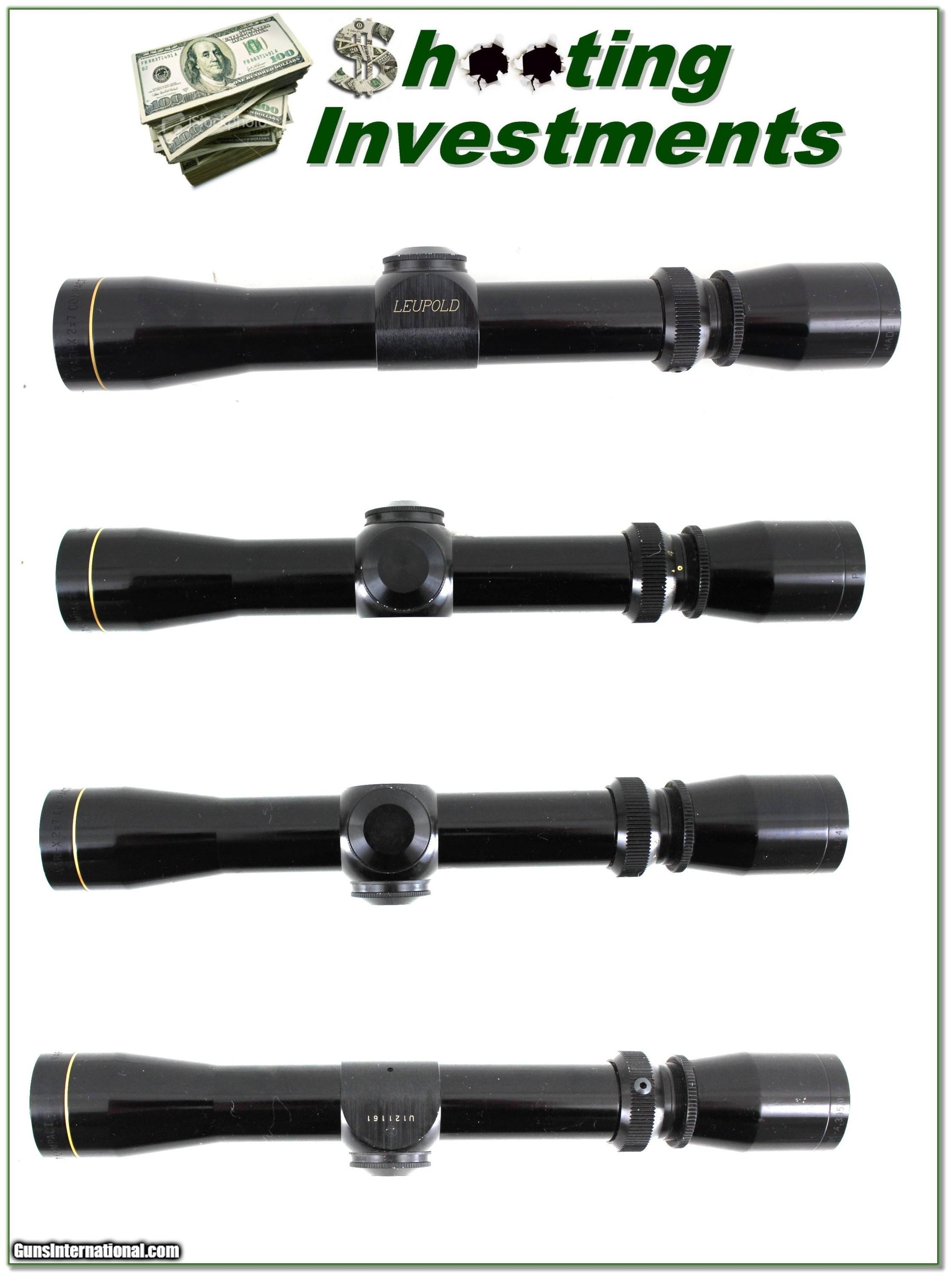 Description: This is a very hard-to-find Leupold GLOSS 2-7 Compact. The optics are crystal clear with Duplex cross hairs. I don’t find any marks. It will make a perfect lightweight scope for any hunting rifle. And with Leupold forever warrantee it will always be in perfect condition. Shipping is $14.95. Please email me with any questions or larger pictures. (Consign your quality firearms with Shooting Investments for only 12%! Let me know if you have any you would like to sell!) 23-1340s Payment: Payment is by Money Order, Cashier’s Check or Personal Check. I can now also accept Credit Cards (MasterCard, Visa, Discover & American Express) with a 3% convenience fee. Shipping: The shipping charge will be listed in each description. It is $49 for most firearms. Some heavy guns or those insured for over $2000 will be higher. Shipments to Alaska and Hawaii are higher because air shipment is required. Most firearms are shipped on Tuesday and Thursday and usually in 5 days of receipt of payment. We package all shipments carefully and insure them. Optics are shipped Priority Mail and most other non-firearm shipments are shipped First Class. Returns: Our return policy is simple. If for any reason you are not pleased with your purchase, you may return your item for a full refund of purchase price. Ammunition cannot be returned. It is important to us that you are happy. Guns cannot be fired or dissembled before returning them and they must be returned in the same condition as received. Notification of a return must occur within 3 days of receipt at your dealer. Shipping, convenience and dealer fees are not refundable and are the responsibility of the buyer. Lay-a-way: If needed, we offer a 60 day lay-a-way option on most firearms. It is 1/3 now, 1/3 in 30 days and 1/3 in 60 days. Lay-a-way firearm sales are final and cannot be returned. If a lay-a-way is not completed the first payment cannot be refunded. Consigning your firearms with Shooting Investments: We will help you get top dollar for your firearms. While most local guns shops charge 20% or more, our fee is only 12% with a minimum of $75. At your local gun shop it might take months to sell. Selling on-line provides instant access to thousands of interested buyers. You won’t find any other on-line dealer willing to sell your firearms for only 12% or listing every gun on 3 separate s. Selling through an House typically costs the seller 15% and the buyer an addition 15% (so 30%) and you have to wait several months to sell and longer to receive funds. If properly priced, we will sell your firearms within a few weeks. Send us an email or give us a call and we’ll explain how easy it is for you to get top dollar. Trading: Trading for us is really just buying your gun to re-sell. If you have a gun you want to trade, please email a picture and we will let you know what we can give for it. You will always get more if we sell it for you on consignment. SOLD |