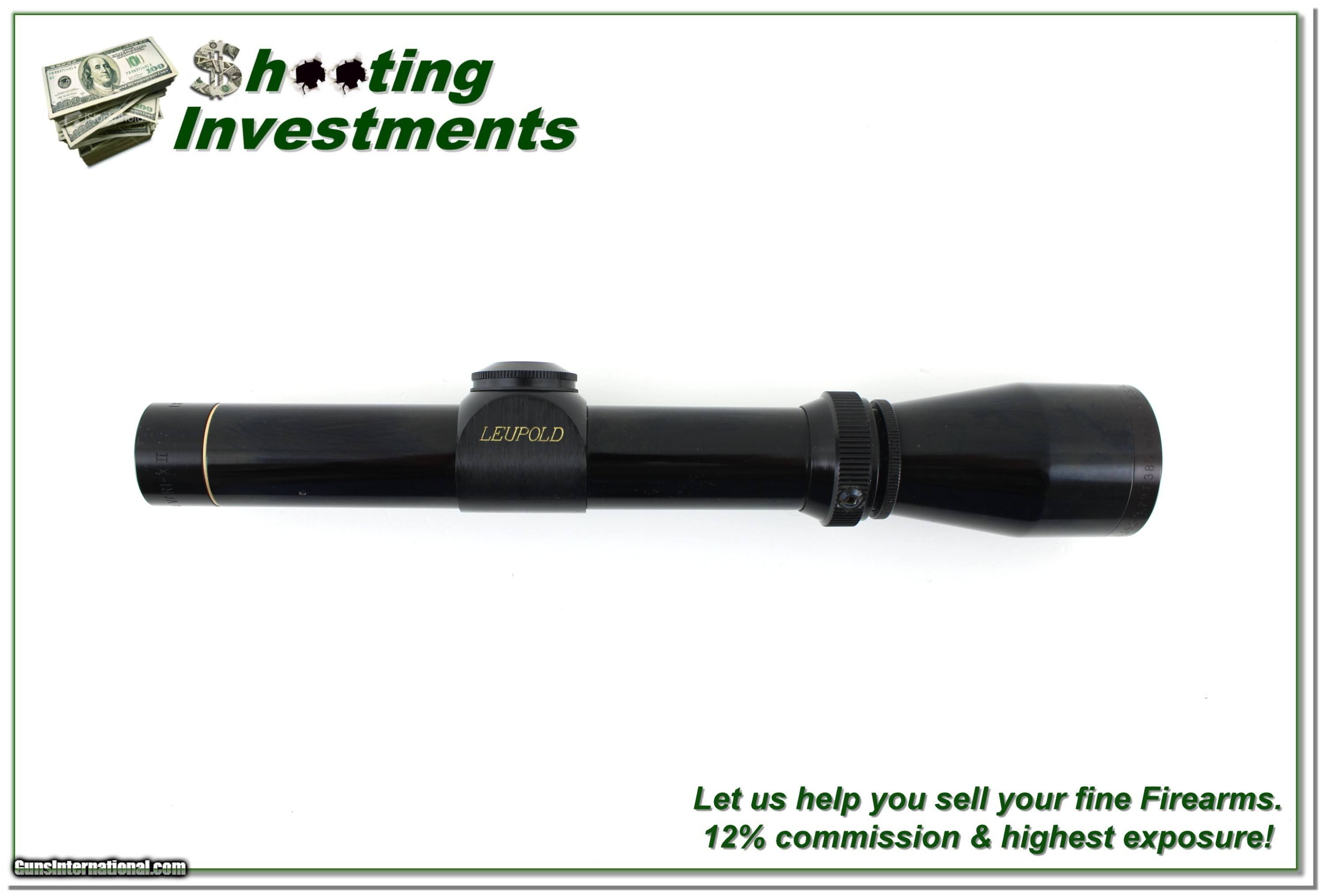 Description: This is a Leupold Vari-X II 1-4x rifle scope with no longer made GLOSS finish. This scope has a duplex crosshair with crystal clear optics. I find no mark. It will make a fine scope for anything from a big bore to rimfire! Shipping is $14.95 and please email me with any questions or larger pictures. (Consign your quality firearms with Shooting Investments for only 12%! Let me know if you have any you would like to sell!) 25-1228s