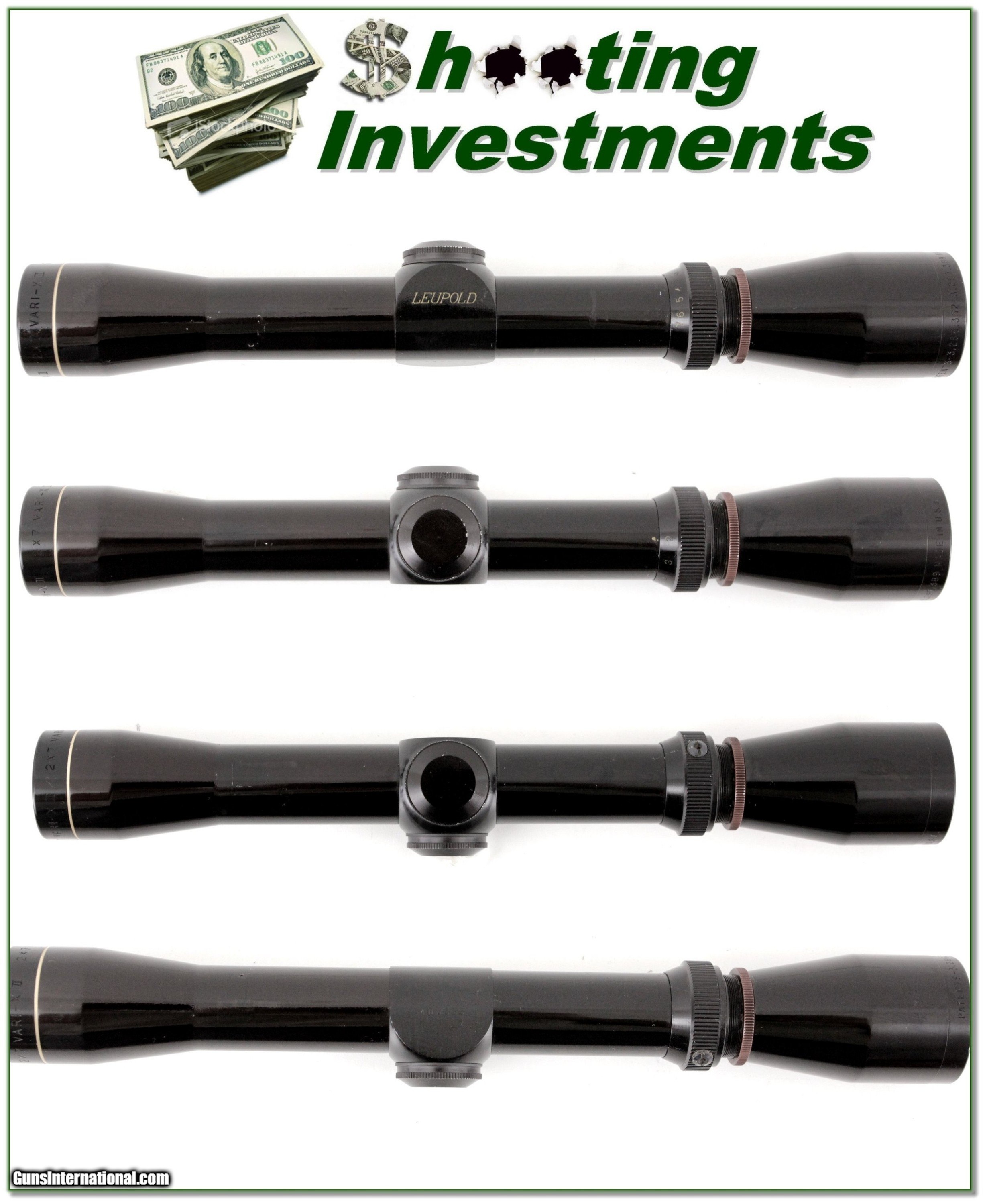 Description: This is a very nice Leupold Vari-X II in 2-7 Power with the smaller 28mm Objective. It will make a nice compact scope for any rifle. I only see a few insignificant marks. It has crystal clear optics and Duplex crosshairs. Shipping is $11.95. Please email me with any questions or larger pictures. (Consign your quality firearms with Shooting Investments for only 12%! Let me know if you have any you would like to sell!) 19-0338s Payment: Payment is by Money Order, Cashiers Check or Personal Check. I can now also accept Credit Cards (MasterCard, Visa, Discover & American Express) with a 3% convenience fee. PayPal can be used for some items but never for firearms. Shipping: The shipping charge will be listed in each description. It is $39 for most firearms. Some heavy guns or those insured for over $2000 will be higher. Shipments to Alaska and Hawaii are higher because air shipment is required. Most firearms are shipped on Tuesday and Thursday and usually in 5 days of receipt of payment. We package all shipments carefully and insure them. Optics are shipped Priority Mail and most other non-firearm shipments are shipped First Class. Returns: Our return policy is simple. If for any reason you are not pleased with your purchase, you may return your item for a full refund of purchase price. Ammunition cannot be returned. It is important to us that you are happy. Guns cannot be fired or dissembled before returning them and they must be returned in the same condition as received. Notification of a return must occur with-in 3 days of receipt at your dealer. Shipping, convenience and dealer fees are not refundable and are the responsibility of the buyer. Lay-a-way: If needed, we offer a 60 day lay-a-way option on most firearms. It is 1/3 now, 1/3 in 30 days and 1/3 in 60 days. Lay-a-way firearm sales are final and if not completed the first payment cannot be returned. Consigning your firearms with Shooting Investments: We will help you get top dollar for your firearms. While most local guns shops charge 20% or more, our fee is only 12% with a minimum of $75. At your local gun shop it might take months to sell. Selling on-line provides instant access to thousands of interested buyers. You won’t find any other on-line dealer willing to sell your firearms for only 12% or listing every gun on 3 separate s. Selling through an House typically costs the seller 15% and the buyer an addition 15% (so 30%) and you have to wait several months to sell and longer to receive funds. If properly priced, we will sell your firearms in a few weeks. Send us an email or give us a call and we’ll explain how easy it is for you to get top dollar. Trading: Trading for use is really just buying your gun to re-sell. If you have a gun you want to trade, please email a picture and we will let you know what we can give or it. You will always get more if we sell it for you on consignment. Help for California Buyers: We are happy to ship to California. It is the buyer’s responsibility to make sure any item you buy is legal in your state. We are also happy to help with your purchase of a firearm from someone other than us. If you see a gun you would like to buy but the seller can’t or won’t ship to California they can ship to use and we’ll then ship it to your California dealer. The cost for this service is only $30 + shipping. Let us know if we can help! SOLD |