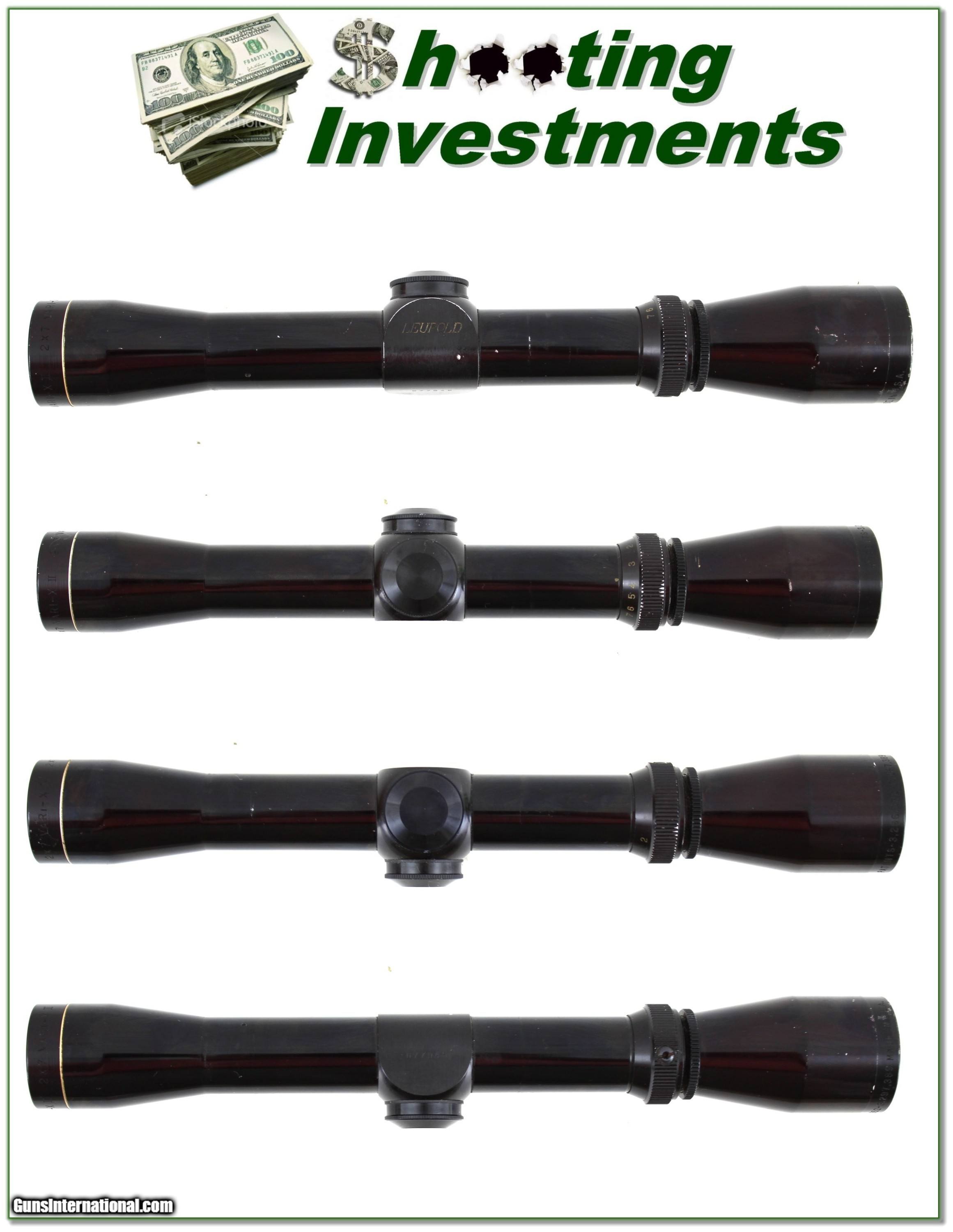 Description: This is a Leupold in 2-7 power. It has the no longer made gloss finish. It has crystal clear optics with duplex crosshairs. I find just a few marks as seen. And remember Leupold is warranted forever! Shipping is $14.95 and please email me with any questions or larger pictures. (Consign your quality firearms with Shooting Investments for only 12%! Let me know if you have any you would like to sell!) 21-0603s Payment: Payment is by Money Order, Cashier’s Check or Personal Check. I can now also accept Credit Cards (MasterCard, Visa, Discover & American Express) with a 3% convenience fee. Shipping: The shipping charge will be listed in each description. It is $39 for most firearms. Some heavy guns or those insured for over $2000 will be higher. Shipments to Alaska and Hawaii are higher because air shipment is required. Most firearms are shipped on Tuesday and Thursday and usually in 5 days of receipt of payment. We package all shipments carefully and insure them. Optics are shipped Priority Mail and most other non-firearm shipments are shipped First Class. Returns: Our return policy is simple. If for any reason you are not pleased with your purchase, you may return your item for a full refund of purchase price. Ammunition cannot be returned. It is important to us that you are happy. Guns cannot be fired or dissembled before returning them and they must be returned in the same condition as received. Notification of a return must occur within 3 days of receipt at your dealer. Shipping, convenience and dealer fees are not refundable and are the responsibility of the buyer. Lay-a-way: If needed, we offer a 60 day lay-a-way option on most firearms. It is 1/3 now, 1/3 in 30 days and 1/3 in 60 days. Lay-a-way firearm sales are final and cannot be returned. If a lay-a-way is not completed the first payment cannot be refunded. Consigning your firearms with Shooting Investments: We will help you get top dollar for your firearms. While most local guns shops charge 20% or more, our fee is only 12% with a minimum of $75. At your local gun shop it might take months to sell. Selling on-line provides instant access to thousands of interested buyers. You won’t find any other on-line dealer willing to sell your firearms for only 12% or listing every gun on 3 separate s. Selling through an House typically costs the seller 15% and the buyer an addition 15% (so 30%) and you have to wait several months to sell and longer to receive funds. If properly priced, we will sell your firearms within a few weeks. Send us an email or give us a call and we’ll explain how easy it is for you to get top dollar. Trading: Trading for us is really just buying your gun to re-sell. If you have a gun you want to trade, please email a picture and we will let you know what we can give for it. You will always get more if we sell it for you on consignment. Help for California Buyers: We are happy to ship to California. It is the buyer’s responsibility to make sure any item you buy is legal in your state. We are also happy to help with your purchase of a firearm from someone other than us. If you see a gun you would like to buy but the seller can’t or won’t ship to California they can ship to use and we’ll then ship it to your California dealer. The cost for this service is only $30 + shipping. Let us know if we can help! SOLD |