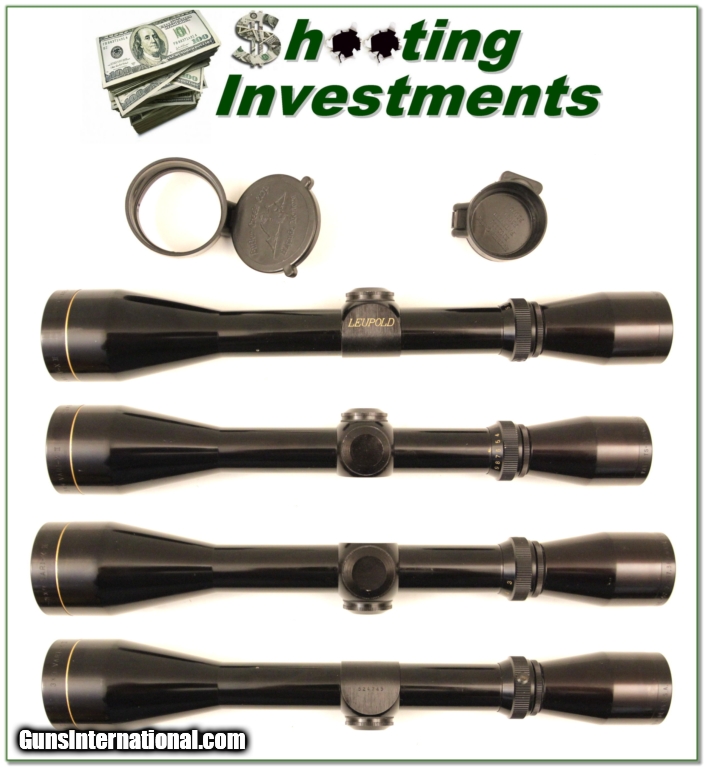 Description: This is a Leupold Vari-X II in 3-9 power. It has crystal clear optics with duplex crosshairs. It is in excellent condition and comes with flip open Butler Creek covers as shown. This will make a very nice light weight scope for your collector or hunting rifle. The current Cabela’s price for the cost reduced VX-II is $299 + tax and shipping. This one will be as nice for a more than $100 less. And remember Leupold is warranted forever! Shipping is $9.95 and please email me with any questions or larger pictures. (I now consign quality firearms only 10%! Let me know if you have any you would like to sell!) [14-1073s] Payment: Payment is by Money Order, Cashiers Check or Personal Check. I can now also accept MasterCard and Visa with a 3% convenience fee. PayPal can be used for some items but never firearms. Please let us know if you would like to pay via PayPal. Shipping: The shipping charge will be listed in each description. It is $30 for most guns. Some heavy guns or those insured for over $2000 may be higher. Shipments to Alaska and Hawaii are higher because air shipment is required. Most firearms are shipped within 5 days of receipt of payment. We prefer shipping at the beginning of the week to avoid firearms in transit over weekends. We package all shipments carefully and insure them for the full purchase price, rounded up to the next $100. In the unlikely event that damage occurs, it is important that you save all packaging material for the claims process. Optics are shipped Priority Mail and most other non-firearm shipments are shipped First Class. Returns: Our return policy is simple. If for any reason you are not pleased with your purchase, you may return your item for a refund. The only exception is ammunition, it cannot be returned. It is important to us that you are happy. Guns cannot be fired or dissembled before returning them and must be returned in the same condition as received. Notification of a return must occur with-in 3 days of receipt at your dealer. Shipping, convenience and dealer fees are not refundable and are the responsibility of the buyer. Lay-a-way: If needed, we offer a 60 day lay-a-way option on most firearms. It is 1/3 now, 1/3 in 30 days and 1/3 in 60 days. Lay-a-way firearm sales are final. Consigning your firearms with Shooting Investments: We will help you get top dollar for your firearms. While most local guns shops charge 20% or more, our fee is only 10% with a minimum of $50. At your local gun shop it might take months to sell. Selling on-line provides instant access to thousands of interested buyers. You won’t find any other on-line dealer willing to sell your firearms for only 10% or listing every gun on 4 separate s. Selling through an House typically costs the seller 15% and the buyer an addition 15% (so 30%) and you have to wait several months to sell and longer to receive funds. If properly priced, we will sell your firearms in a week or two. Send us an email or give us a call and we’ll explain how easy it is for you to get top dollar. Trading: We collect guns and usually just trade for guns we want to add to our collections. We often sell guns for others wanting to purchase one of ours. We find this the most fair to both of us. Our Commission is only 10% and we hold the gun you want until yours sells. Please contact us if you want to sell one of yours to buy one of ours. Help for California Buyers: We are happy to ship to California. It is the buyer’s responsibility to make sure any item you buy is legal in your state. We are also happy to help with your purchase of a firearm from someone other than us. If you see a gun you would like to buy but the seller can’t or won’t ship to California we can help. You buy the gun and have it shipped to us. We’ll then ship it to your California dealer. The cost for this service is only $30 + shipping. Let me know if we can help! SOLD |
