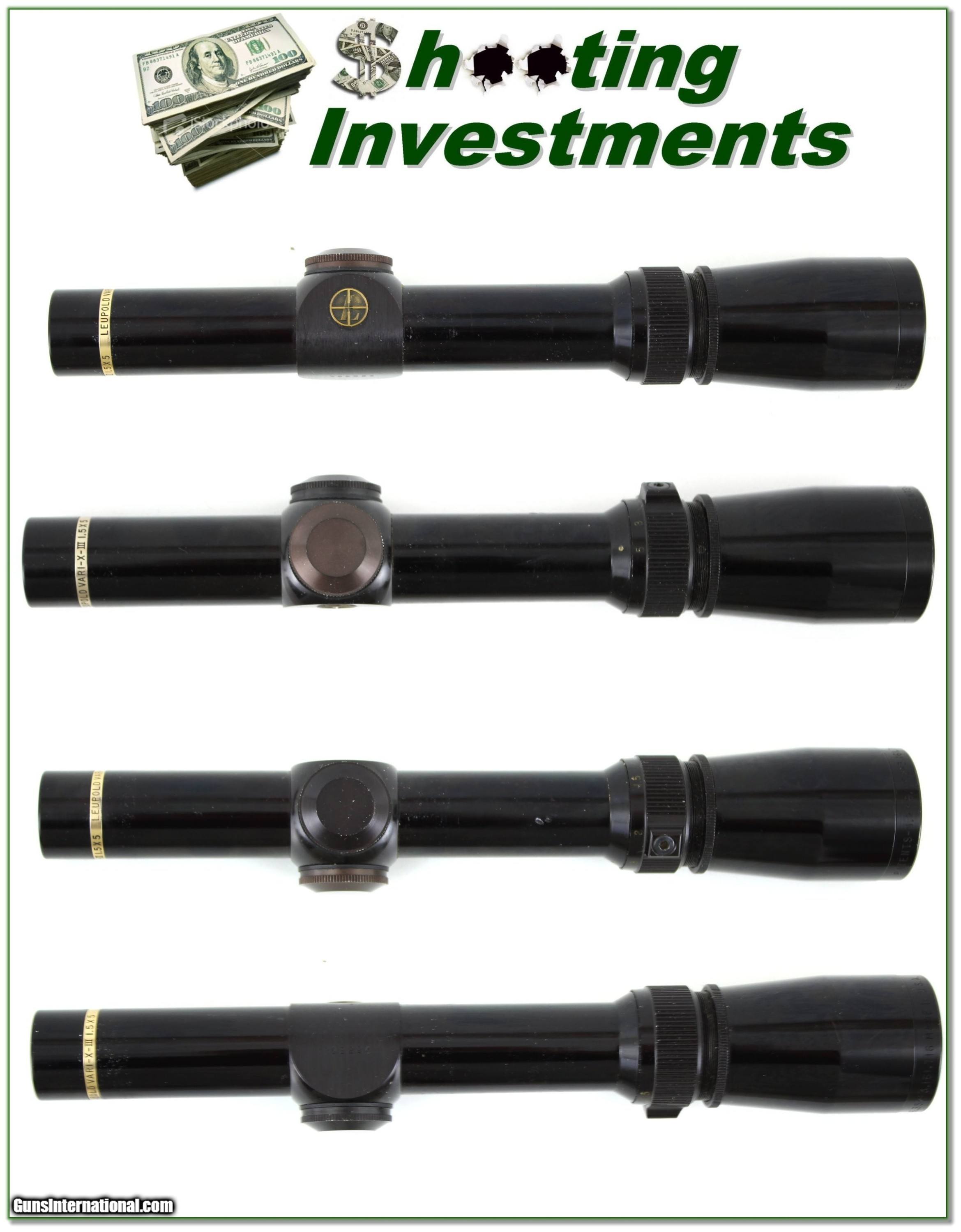 Description: This is a top of the line Leupold Vari-X III in 1.5 X 5 power. It is the harder to find GLOSS and is in excellent condition. The optics are crystal clear with duplex crosshair. I find just a couple ring scuffs that should be covered when mounted. Shipping is $14.95. Please email me with any questions or larger pictures. (Consign your quality firearms with Shooting Investments for only 12%! Let me know if you have any you would like to sell!) 20-0662s Payment: Payment is by Money Order, Cashiers Check or Personal Check. I can now also accept Credit Cards (MasterCard, Visa, Discover & American Express) with a 3% convenience fee. Shipping: The shipping charge will be listed in each description. It is $39 for most firearms. Some heavy guns or those insured for over $2000 will be higher. Shipments to Alaska and Hawaii are higher because air shipment is required. Most firearms are shipped on Tuesday and Thursday and usually in 5 days of receipt of payment. We package all shipments carefully and insure them. Optics are shipped Priority Mail and most other non-firearm shipments are shipped First Class. Returns: Our return policy is simple. If for any reason you are not pleased with your purchase, you may return your item for a full refund of purchase price. Ammunition cannot be returned. It is important to us that you are happy. Guns cannot be fired or dissembled before returning them and they must be returned in the same condition as received. Notification of a return must occur with-in 3 days of receipt at your dealer. Shipping, convenience and dealer fees are not refundable and are the responsibility of the buyer. Lay-a-way: If needed, we offer a 60 day lay-a-way option on most firearms. It is 1/3 now, 1/3 in 30 days and 1/3 in 60 days. Lay-a-way firearm sales are final and if not completed the first payment cannot be returned. Consigning your firearms with Shooting Investments: We will help you get top dollar for your firearms. While most local guns shops charge 20% or more, our fee is only 12% with a minimum of $75. At your local gun shop it might take months to sell. Selling on-line provides instant access to thousands of interested buyers. You won’t find any other on-line dealer willing to sell your firearms for only 12% or listing every gun on 3 separate s. Selling through an House typically costs the seller 15% and the buyer an addition 15% (so 30%) and you have to wait several months to sell and longer to receive funds. If properly priced, we will sell your firearms in a few weeks. Send us an email or give us a call and we’ll explain how easy it is for you to get top dollar. Trading: Trading for use is really just buying your gun to re-sell. If you have a gun you want to trade, please email a picture and we will let you know what we can give or it. You will always get more if we sell it for you on consignment. Help for California Buyers: We are happy to ship to California. It is the buyer’s responsibility to make sure any item you buy is legal in your state. We are also happy to help with your purchase of a firearm from someone other than us. If you see a gun you would like to buy but the seller can’t or won’t ship to California they can ship to use and we’ll then ship it to your California dealer. The cost for this service is only $30 + shipping. Let us know if we can help! SOLD |