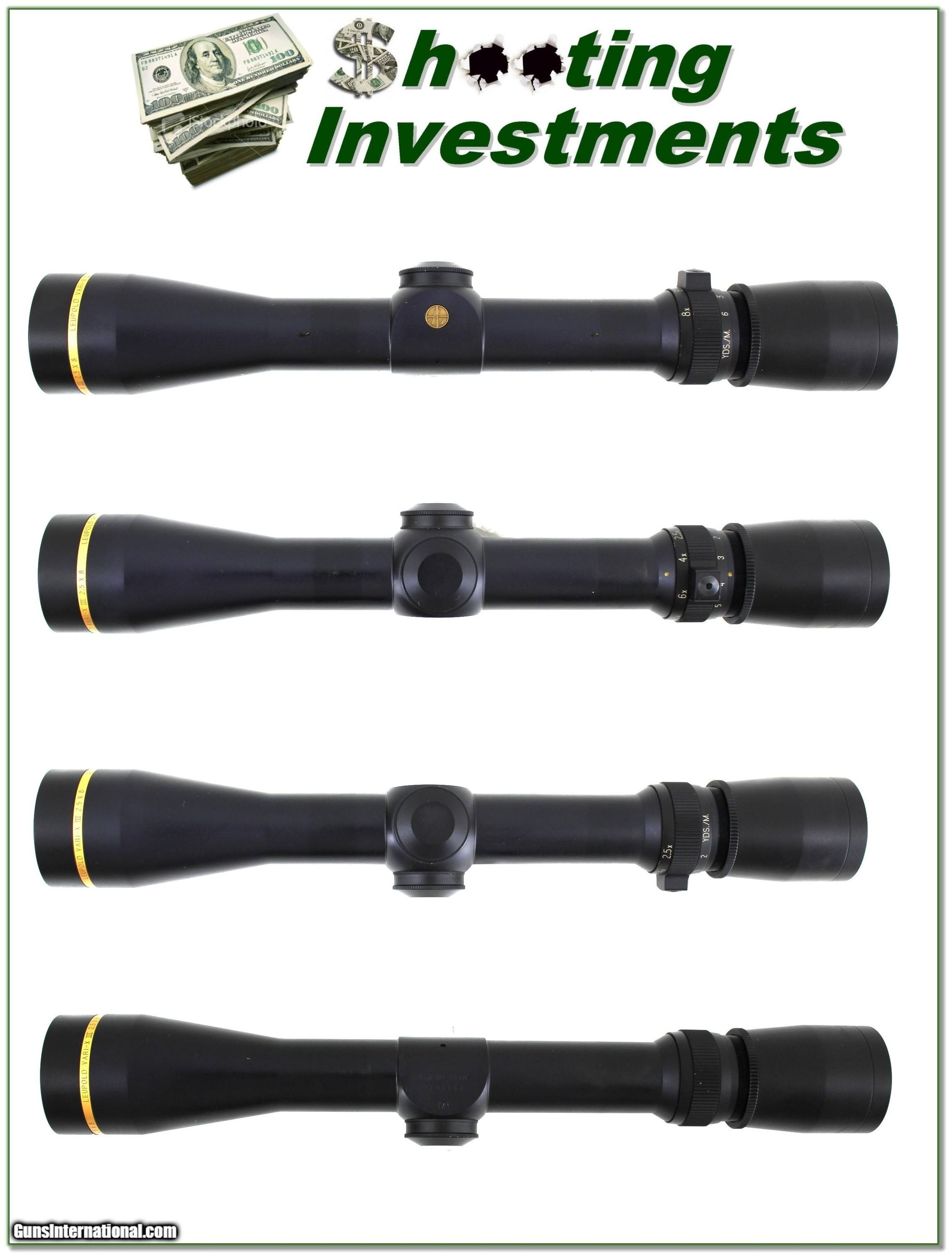 Description: This scope is excellent condition. Aside from a couple insignificant marks that will be covered when mounted it looks new! It is a top of the line Leupold in 2.5-8 X 36mm. It has duplex crosshairs and crystal-clear optics. And remember Leopold’s forever warrantee. Shipping is $14.95 and please email me with any questions or larger pictures. (Consign your quality firearms with Shooting Investments for only 12%! Let me know if you have any you would like to sell!) 23-0764s Payment: Payment is by Money Order, Cashier’s Check or Personal Check. I can now also accept Credit Cards (MasterCard, Visa, Discover & American Express) with a 3% convenience fee. Shipping: The shipping charge will be listed in each description. It is $49 for most firearms. Some heavy guns or those insured for over $2000 will be higher. Shipments to Alaska and Hawaii are higher because air shipment is required. Most firearms are shipped on Tuesday and Thursday and usually in 5 days of receipt of payment. We package all shipments carefully and insure them. Optics are shipped Priority Mail and most other non-firearm shipments are shipped First Class. Returns: Our return policy is simple. If for any reason you are not pleased with your purchase, you may return your item for a full refund of purchase price. Ammunition cannot be returned. It is important to us that you are happy. Guns cannot be fired or dissembled before returning them and they must be returned in the same condition as received. Notification of a return must occur within 3 days of receipt at your dealer. Shipping, convenience and dealer fees are not refundable and are the responsibility of the buyer. Lay-a-way: If needed, we offer a 60 day lay-a-way option on most firearms. It is 1/3 now, 1/3 in 30 days and 1/3 in 60 days. Lay-a-way firearm sales are final and cannot be returned. If a lay-a-way is not completed the first payment cannot be refunded. Consigning your firearms with Shooting Investments: We will help you get top dollar for your firearms. While most local guns shops charge 20% or more, our fee is only 12% with a minimum of $75. At your local gun shop it might take months to sell. Selling on-line provides instant access to thousands of interested buyers. You won’t find any other on-line dealer willing to sell your firearms for only 12% or listing every gun on 3 separate s. Selling through an House typically costs the seller 15% and the buyer an addition 15% (so 30%) and you have to wait several months to sell and longer to receive funds. If properly priced, we will sell your firearms within a few weeks. Send us an email or give us a call and we’ll explain how easy it is for you to get top dollar. Trading: Trading for us is really just buying your gun to re-sell. If you have a gun you want to trade, please email a picture and we will let you know what we can give for it. You will always get more if we sell it for you on consignment. SOLD |