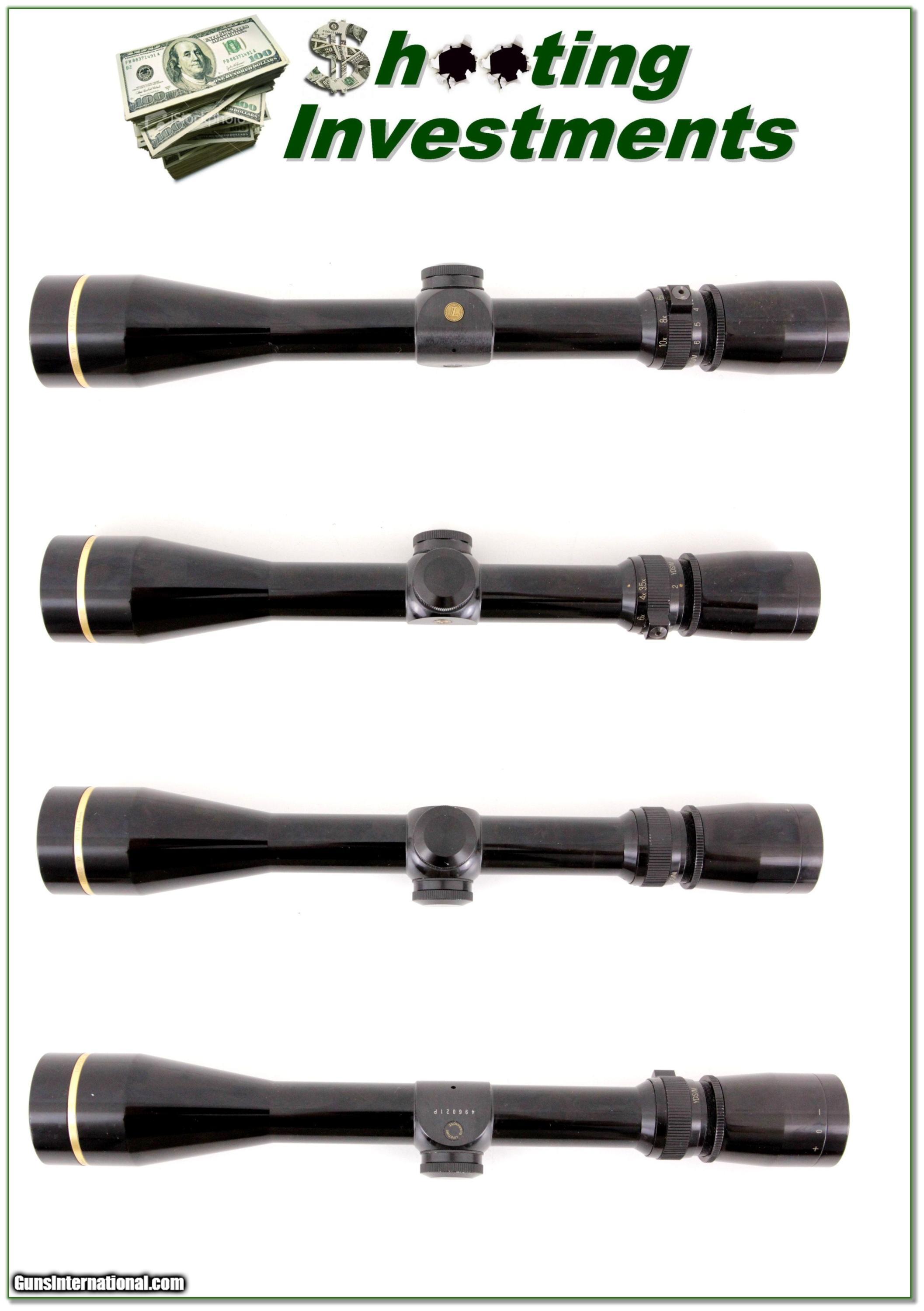 Description: This is a top of the line Leupold in 3.5-10 X 40mm. It has duplex crosshairs and crystal clear optics. It has the harder to find Glosss finish with no marks I see. And remember Leupolds forever warrantee. Shipping is $11.95 and please email me with any questions or larger pictures. (Consign your quality firearms with Shooting Investments for only 12%! Let me know if you have any you would like to sell!) 18-0437s Payment: Payment is by Money Order, Cashiers Check or Personal Check. I can now also accept MasterCard and Visa with a 3% convenience fee. PayPal can be used for some items but never firearms. Please let us know if you would like to pay via PayPal. Shipping: The shipping charge will be listed in each description. It is $39 for most long guns and $29 for most handguns. Some heavy guns or those insured for over $2000 will be higher. Shipments to Alaska and Hawaii are higher because air shipment is required. Most firearms are shipped on Tuesday and Thursday and usually in 5 days of receipt of payment. We package all shipments carefully and insure them. For long guns you can purchase a new Plano case for $19. They now cost us $22 when buying 100 at a time. Optics are shipped Priority Mail and most other non-firearm shipments are shipped First Class. Returns: Our return policy is simple. If for any reason you are not pleased with your purchase, you may return your item for a full refund of purchase price. Ammunition cannot be returned. It is important to us that you are happy. Guns cannot be fired or dissembled before returning them and they must be returned in the same condition as received. Notification of a return must occur with-in 3 days of receipt at your dealer. Shipping, convenience and dealer fees are not refundable and are the responsibility of the buyer. Lay-a-way: If needed, we offer a 60 day lay-a-way option on most firearms. It is 1/3 now, 1/3 in 30 days and 1/3 in 60 days. Lay-a-way firearm sales are final and if not completed the first payment cannot be returned. Consigning your firearms with Shooting Investments: We will help you get top dollar for your firearms. While most local guns shops charge 20% or more, our fee is only 12% with a minimum of $75. At your local gun shop it might take months to sell. Selling on-line provides instant access to thousands of interested buyers. You won’t find any other on-line dealer willing to sell your firearms for only 12% or listing every gun on 3 separate s. Selling through an House typically costs the seller 15% and the buyer an addition 15% (so 30%) and you have to wait several months to sell and longer to receive funds. If properly priced, we will sell your firearms in a few weeks. Send us an email or give us a call and we’ll explain how easy it is for you to get top dollar. Trading: Trading for use is really just buying your gun to re-sell. If you have a gun you want to trade, please email a picture and we will let you know what we can give or it. You will always get more if we sell it for you on consignment. Help for California Buyers: We are happy to ship to California. It is the buyer’s responsibility to make sure any item you buy is legal in your state. We are also happy to help with your purchase of a firearm from someone other than us. If you see a gun you would like to buy but the seller can’t or won’t ship to California they can ship to use and we’ll then ship it to your California dealer. The cost for this service is only $30 + shipping. Let us know if we can help! SOLD