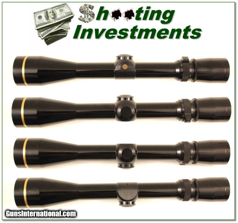 Description: This scope is in excellent as new condition. It is a top of the line Leupold in 3.5-10 X 40mm. It has duplex crosshairs and crystal clear optics. It has the harder to find gloss finish. The cables price for a 3.5-10 is now $499 + tax, + shipping. This one is about $200 less. And remember Leupolds forever warrantee. Shipping is $9.95 and please email me with any questions or larger pictures. (I now consign quality firearms only 10%! Let me know if you have any you would like to sell!) [14-0970s] Terms & Conditions Payment: Payment is by Money Order, Cashiers Check or Personal Check. I can now also accept MasterCard and Visa with a 3% convenience fee. PayPal can be used for some items but never firearms. Please let us know if you would like to pay via PayPal. Shipping: The shipping charge will be listed in each description. It is $30 for most guns. Some heavy guns or those insured for over $2000 may be higher. Shipments to Alaska and Hawaii are higher because air shipment is required. Most firearms are shipped within 5 days of receipt of payment. We prefer shipping at the beginning of the week to avoid firearms in transit over weekends. We package all shipments carefully and insure them for the full purchase price, rounded up to the next $100. In the unlikely event that damage occurs, it is important that you save all packaging material for the claims process. Optics are shipped Priority Mail and most other non-firearm shipments are shipped First Class. Returns: Our return policy is simple. If for any reason you are not pleased with your purchase, you may return your item for a refund. The only exception is ammunition, it cannot be returned. It is important to us that you are happy. Grading and describing used firearms is subjective and especially with collector quality guns, different people have different expectations. Any time you buy a gun without seeing it in person, you should have the option of returning it. You will always have that option at Shooting Investments. Guns cannot be fired or dissembled before returning them and must be returned in the same condition as received. Notification of a return must occur with-in 3 days of receipt at your dealer. Shipping, convenience and dealer fees are not refundable and are the responsibility of the buyer. Lay-a-way: If needed, we offer a 60 day lay-a-way option on most firearms. It is 1/3 now, 1/3 in 30 days and 1/3 in 60 days. Lay-a-way firearm sales are final. Consigning your firearms with Shooting Investments: We will help you get top dollar for your firearms. While most local guns shops charge 20% or more, our fee is only 10% with a minimum of $50. At your local gun shop it might take months to sell. Selling on-line provides instant access to thousands of interested buyers. You won’t find any other on-line dealer willing to sell your firearms for only 10% or listing every gun on 4 separate s. Selling through an House typically costs 15% and you have to wait several months to sell and longer to receive funds. If properly priced, we will sell your firearms in a week or two. Send us an email or give us a call and we’ll explain how easy it is for you to get top dollar. Trading: We collect guns and usually just trade for guns we want to add to our collections. We often sell guns for others wanting to purchase one of ours. We find this the most fair to both of us. Our Commission is only 10% and we hold the gun you want until yours sells. Please contact us if you want to sell one of yours to buy one of ours. Help for California Buyers: We are happy to ship to California. It is the buyer’s responsibility to make sure any item you buy is legal in your state. SOLD |