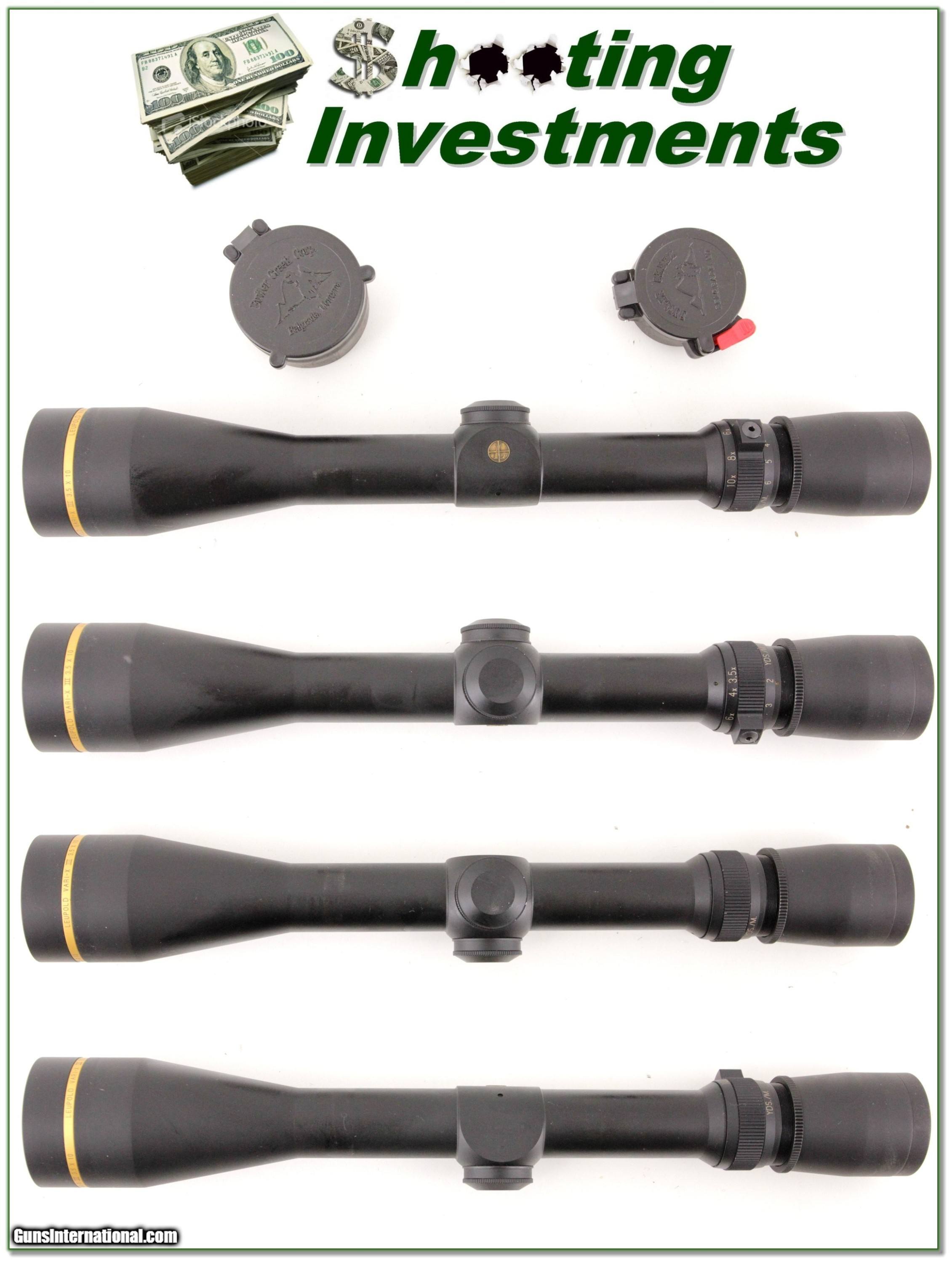Description: This scope is in excellent as new condition. It is a top of the line Leupold in 3.5-10 X 40mm. It has duplex crosshairs and crystal clear optics. It has a matt finish with no marks and comes with flip open covers as seen. Shipping is $11.95 and please email me with any questions or larger pictures. (Consign your quality firearms with Shooting Investments for only 12%! Let me know if you have any you would like to sell!) 19-1412s Payment: Payment is by Money Order, Cashiers Check or Personal Check. I can now also accept Credit Cards (MasterCard, Visa, Discover & American Express) with a 3% convenience fee. PayPal can be used for some items but never for firearms. Shipping: The shipping charge will be listed in each description. It is $39 for most firearms. Some heavy guns or those insured for over $2000 will be higher. Shipments to Alaska and Hawaii are higher because air shipment is required. Most firearms are shipped on Tuesday and Thursday and usually in 5 days of receipt of payment. We package all shipments carefully and insure them. Optics are shipped Priority Mail and most other non-firearm shipments are shipped First Class. Returns: Our return policy is simple. If for any reason you are not pleased with your purchase, you may return your item for a full refund of purchase price. Ammunition cannot be returned. It is important to us that you are happy. Guns cannot be fired or dissembled before returning them and they must be returned in the same condition as received. Notification of a return must occur with-in 3 days of receipt at your dealer. Shipping, convenience and dealer fees are not refundable and are the responsibility of the buyer. Lay-a-way: If needed, we offer a 60 day lay-a-way option on most firearms. It is 1/3 now, 1/3 in 30 days and 1/3 in 60 days. Lay-a-way firearm sales are final and if not completed the first payment cannot be returned. Consigning your firearms with Shooting Investments: We will help you get top dollar for your firearms. While most local guns shops charge 20% or more, our fee is only 12% with a minimum of $75. At your local gun shop it might take months to sell. Selling on-line provides instant access to thousands of interested buyers. You won’t find any other on-line dealer willing to sell your firearms for only 12% or listing every gun on 3 separate s. Selling through an House typically costs the seller 15% and the buyer an addition 15% (so 30%) and you have to wait several months to sell and longer to receive funds. If properly priced, we will sell your firearms in a few weeks. Send us an email or give us a call and we’ll explain how easy it is for you to get top dollar. Trading: Trading for use is really just buying your gun to re-sell. If you have a gun you want to trade, please email a picture and we will let you know what we can give or it. You will always get more if we sell it for you on consignment. Help for California Buyers: We are happy to ship to California. It is the buyer’s responsibility to make sure any item you buy is legal in your state. We are also happy to help with your purchase of a firearm from someone other than us. If you see a gun you would like to buy but the seller can’t or won’t ship to California they can ship to use and we’ll then ship it to your California dealer. The cost for this service is only $30 + shipping. Let us know if we can help! SOLD |