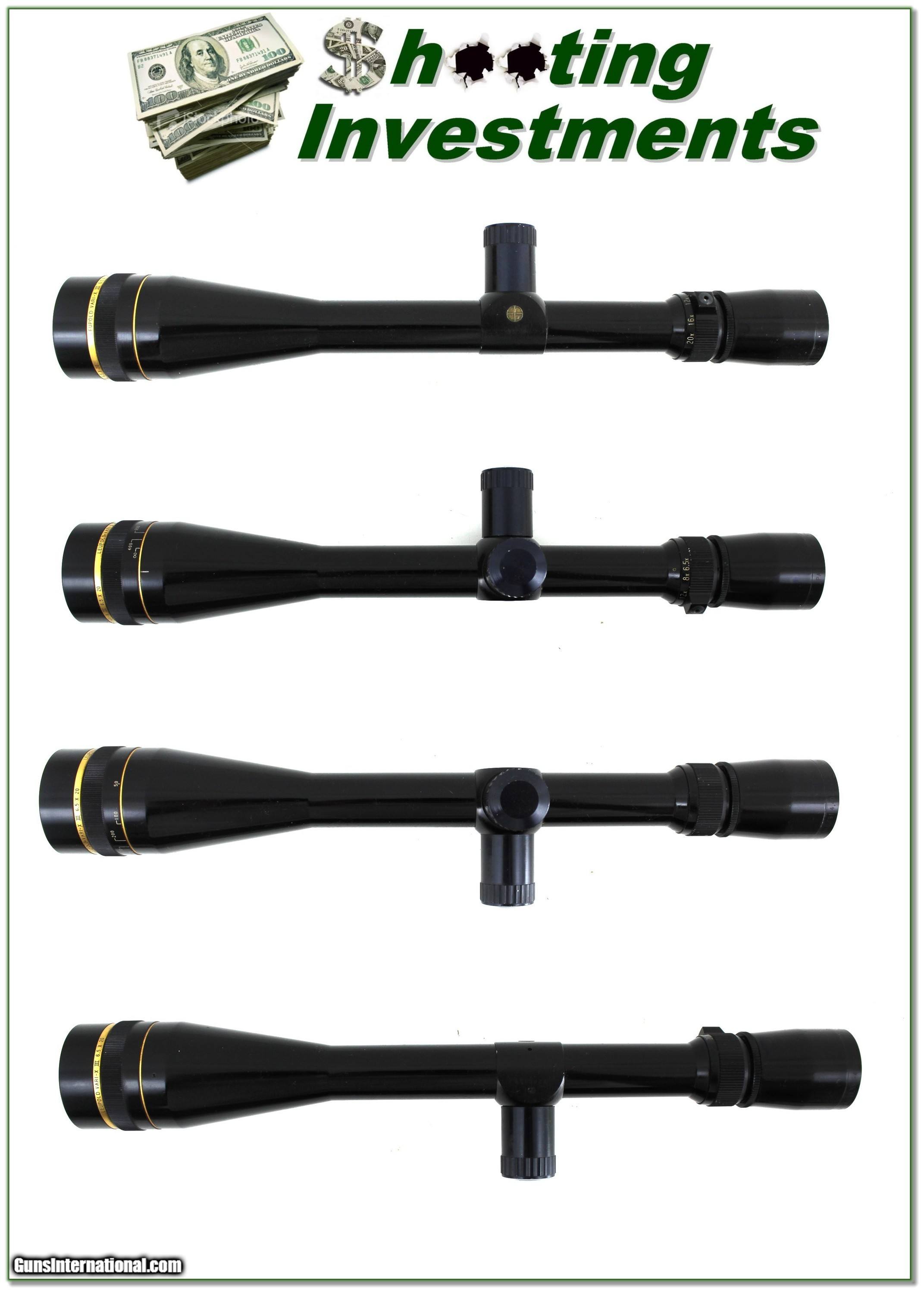 Description: This is an excellent condition Leupold Vari-X III in 6.5-20 X 40mm with Adjustable Objective and GLOSS finish. It has fine Target Dot crosshairs and crystal-clear optics. It has Elevation and Windage target turrets. And it has the famous Leupold forever warrantee so there are no worries there. Shipping is $19.95. Please email me with any questions or larger pictures. (Consign your quality firearms with Shooting Investments for only 12%! Let me know if you have any you would like to sell!) 24-0487s Payment: Payment is by Money Order, Cashier’s Check or Personal Check. I can now also accept Credit Cards (MasterCard, Visa, Discover & American Express) with a 3% convenience fee. Shipping: The shipping charge will be listed in each description. It is $49 for most firearms. Some heavy guns or those insured for over $2000 will be higher. Shipments to Alaska and Hawaii are higher because air shipment is required. Most firearms are shipped on Tuesday and Thursday and usually in 5 days of receipt of payment. We package all shipments carefully and insure them. Optics are shipped Priority Mail and most other non-firearm shipments are shipped First Class. Returns: Our return policy is simple. If for any reason you are not pleased with your purchase, you may return your item for a full refund of purchase price. Ammunition cannot be returned. It is important to us that you are happy. Guns cannot be fired or dissembled before returning them and they must be returned in the same condition as received. Notification of a return must occur within 3 days of receipt at your dealer. Shipping, convenience and dealer fees are not refundable and are the responsibility of the buyer. Lay-a-way: If needed, we offer a 60 day lay-a-way option on most firearms. It is 1/3 now, 1/3 in 30 days and 1/3 in 60 days. Lay-a-way firearm sales are final and cannot be returned. If a lay-a-way is not completed the first payment cannot be refunded. Consigning your firearms with Shooting Investments: We will help you get top dollar for your firearms. While most local guns shops charge 20% or more, our fee is only 12% with a minimum of $75. At your local gun shop it might take months to sell. Selling on-line provides instant access to thousands of interested buyers. You won’t find any other on-line dealer willing to sell your firearms for only 12% or listing every gun on 3 separate s. Selling through an House typically costs the seller 15% and the buyer an addition 15% (so 30%) and you have to wait several months to sell and longer to receive funds. If properly priced, we will sell your firearms within a few weeks. Send us an email or give us a call and we’ll explain how easy it is for you to get top dollar. Trading: Trading for us is really just buying your gun to re-sell. If you have a gun you want to trade, please email a picture and we will let you know what we can give for it. You will always get more if we sell it for you on consignment. SOLD |