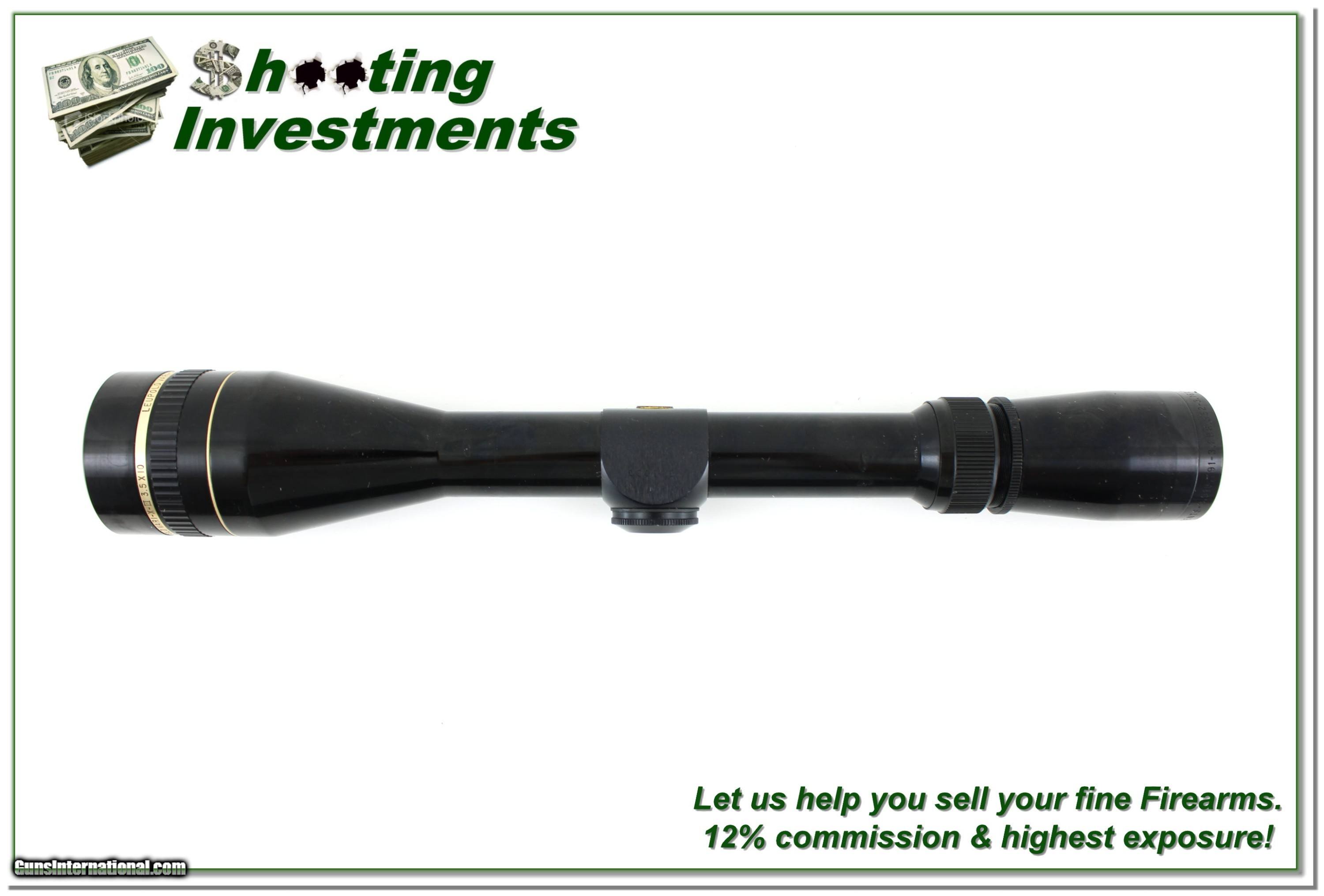 Description: The Leupold Vari-X III 3.5-10x40mm Gloss Rifle Scope features an adjustable objective (AO) for precise focus and parallax correction. This scope is in excellent condition with only a few small marks from previous mounting. Its Duplex reticle ensures fast target acquisition, while the crystal-clear optics deliver exceptional clarity. Classic gloss finish and rugged Leupold quality make it a top choice for serious hunters and shooters. Shipping is $14.95 and please email me with any questions or larger pictures. (Consign your quality firearms with Shooting Investments for only 12%! Let me know if you have any you would like to sell!) 24-1122s Payment: Payment is by Money Order, Cashier’s Check or Personal Check. I can now also accept Credit Cards (MasterCard, Visa, Discover & American Express) with a 3% convenience fee. Shipping: The shipping charge will be listed in each description. It is $49 for most firearms. Some heavy guns or those insured for over $2000 will be higher. Shipments to Alaska and Hawaii are higher because air shipment is required. Most firearms are shipped on Tuesday and Thursday and usually in 5 days of receipt of payment. We package all shipments carefully and insure them. Optics are shipped Priority Mail and most other non-firearm shipments are shipped First Class. Returns: Our return policy is simple. If for any reason you are not pleased with your purchase, you may return your item for a full refund of purchase price. Ammunition cannot be returned. It is important to us that you are happy. Guns cannot be fired or dissembled before returning them and they must be returned in the same condition as received. Notification of a return must occur within 3 days of receipt at your dealer. Shipping, convenience and dealer fees are not refundable and are the responsibility of the buyer. Lay-a-way: If needed, we offer a 60 day lay-a-way option on most firearms. It is 1/3 now, 1/3 in 30 days and 1/3 in 60 days. Lay-a-way firearm sales are final and cannot be returned. If a lay-a-way is not completed the first payment cannot be refunded. Consigning your firearms with Shooting Investments: We will help you get top dollar for your firearms. While most local guns shops charge 20% or more, our fee is only 12% with a minimum of $100. At your local gun shop it might take months to sell. Selling on-line provides instant access to thousands of interested buyers. You won’t find any other on-line dealer willing to sell your firearms for only 12% or listing every gun on 3 separate s. Selling through an House typically costs the seller 15% and the buyer an addition 15% (so 30%) and you have to wait several months to sell and longer to receive funds. If properly priced, we will sell your firearms within a few weeks. Send us an email or give us a call and we’ll explain how easy it is for you to get top dollar. Trading: Trading for us is really just buying your gun to re-sell. If you have a gun you want to trade, please email a picture and we will let you know what we can give for it. You will always get more if we sell it for you on consignment. SOLD |